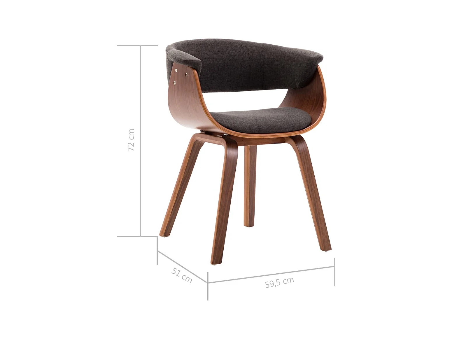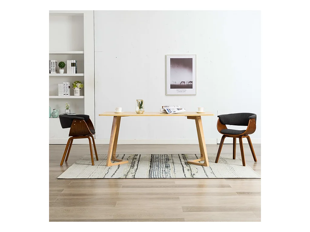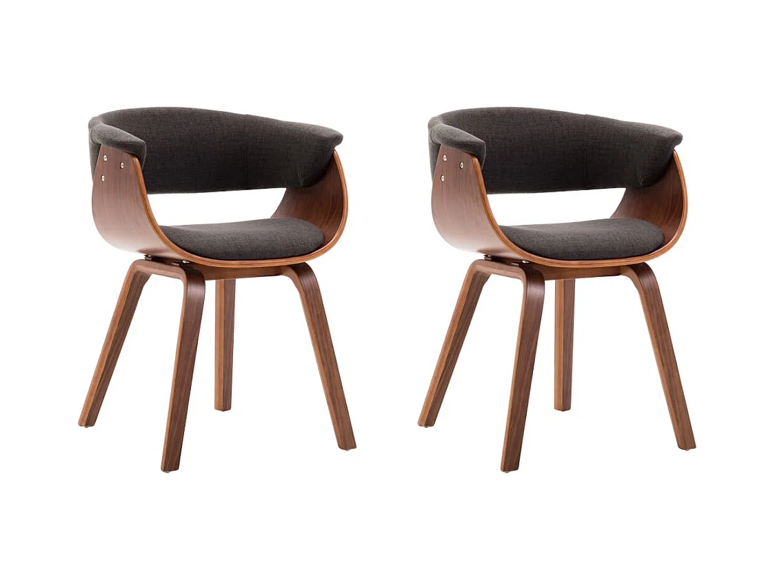 Set di 2 sedie da pranzo in tessuto grigio scuro e legno curvato