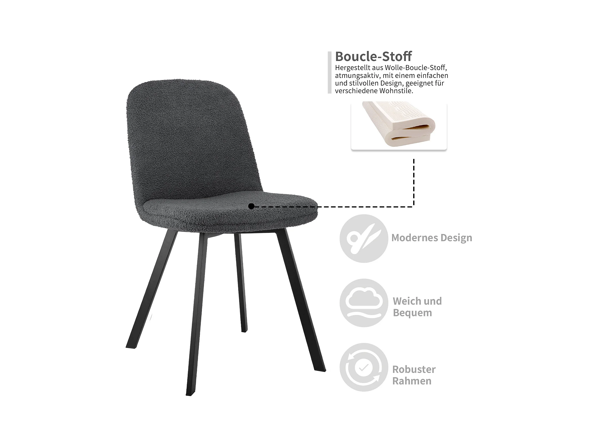 Set di 2 sedie da pranzo, tessuto in pile, struttura in metallo, grigio (44x41x89 cm)