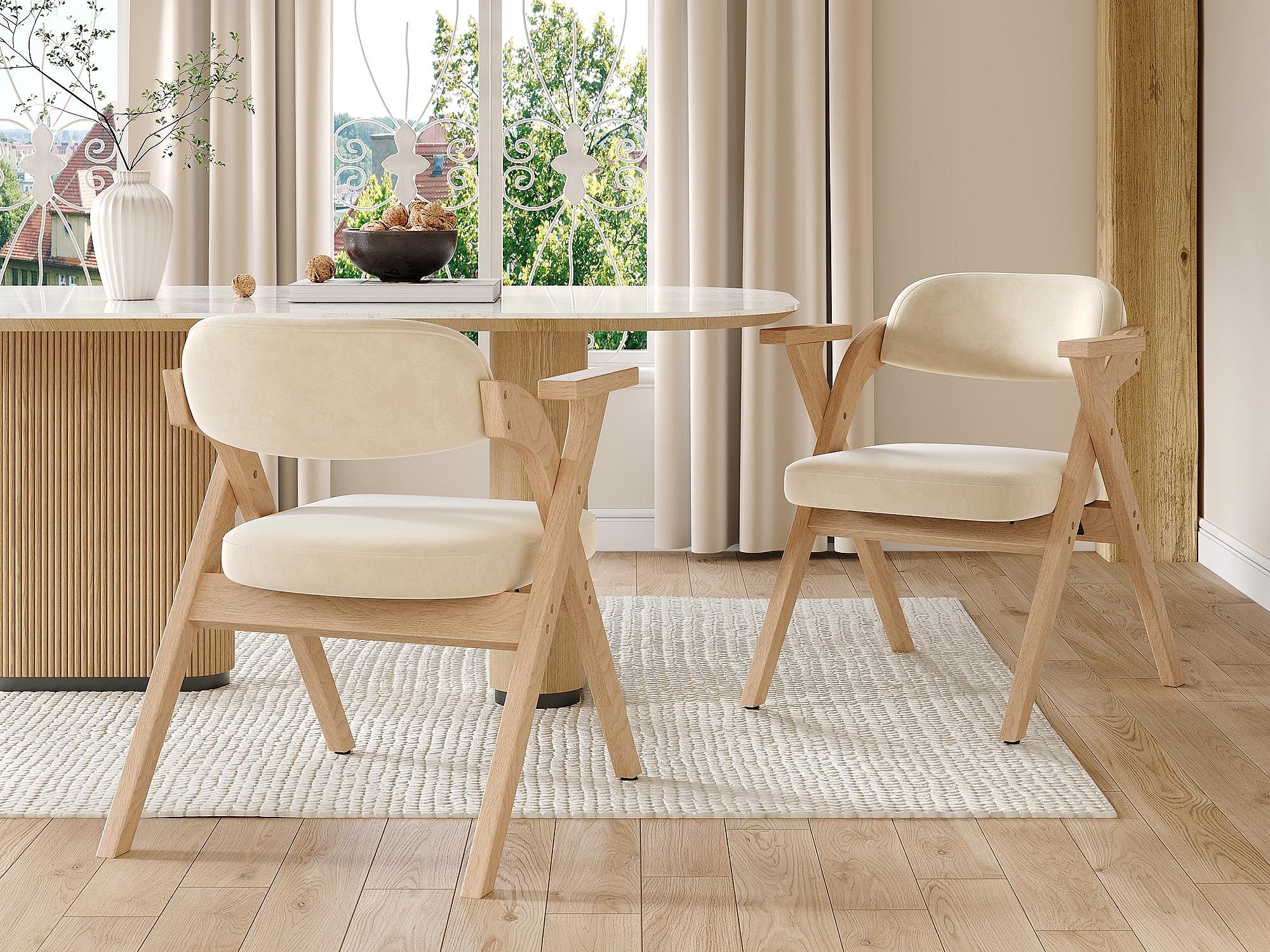 Set di 2 sedie da pranzo - Pieghevoli - seduta in velluto - Struttura in legno massello - Beige
