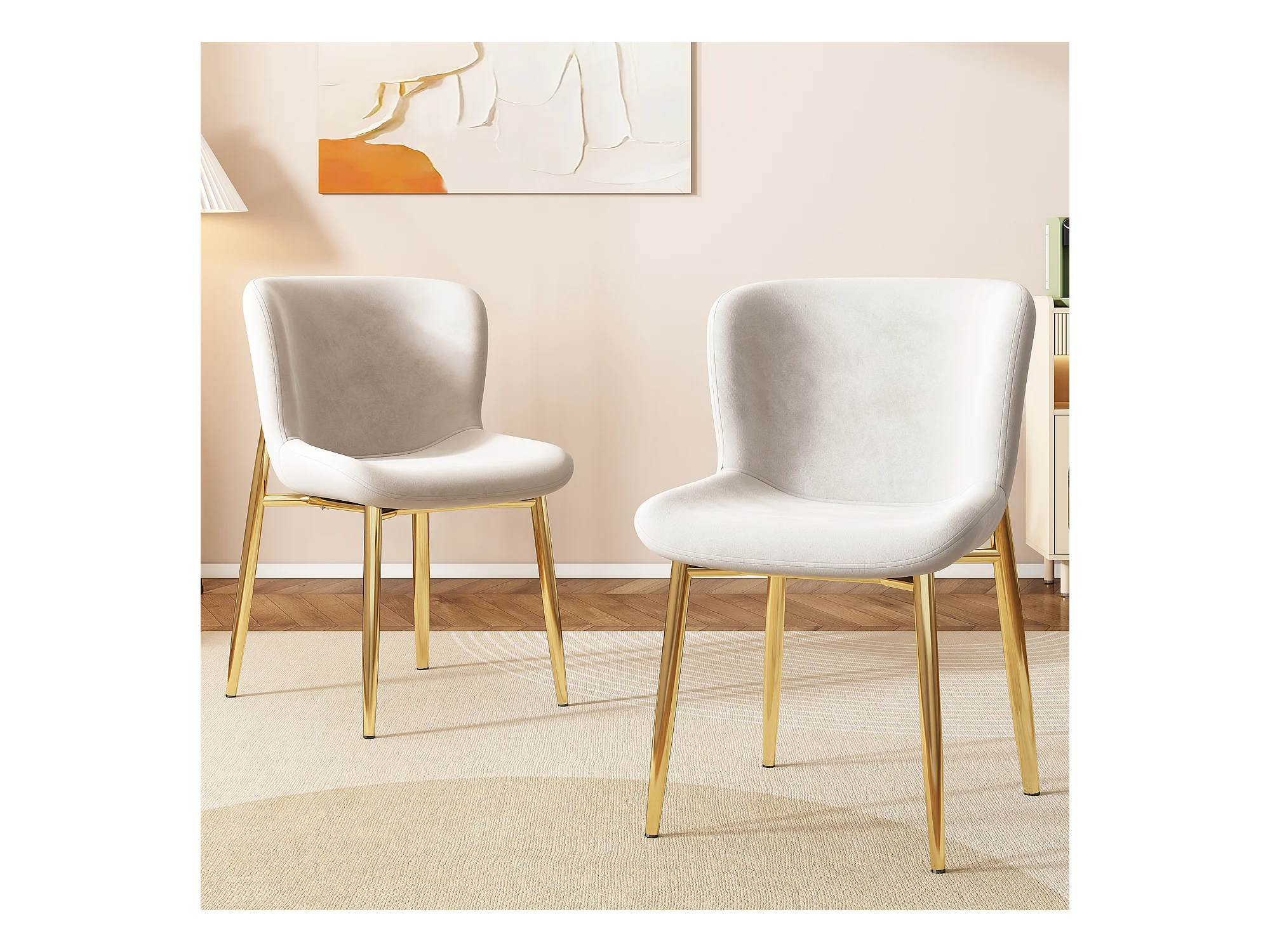 Set di 2 sedie da pranzo - Sedia con schienale e gambe regolabili - velluto beige