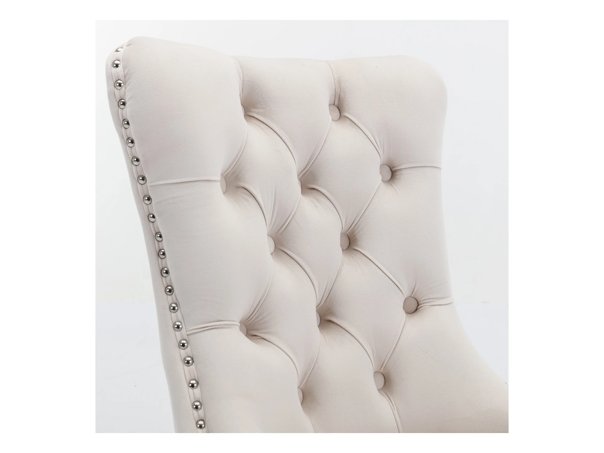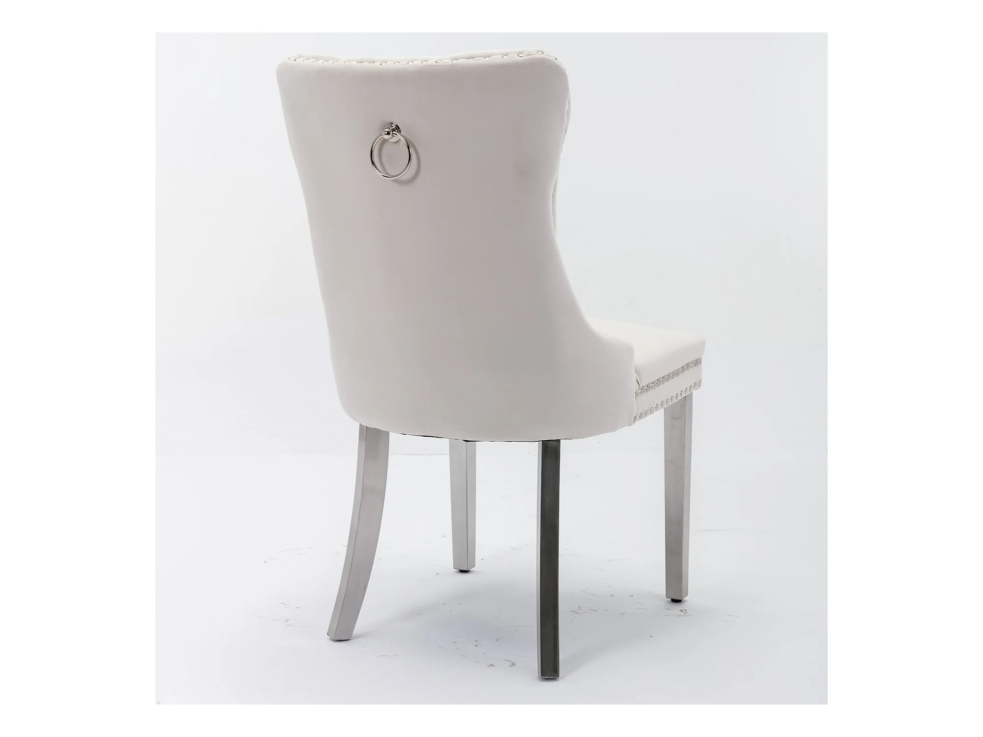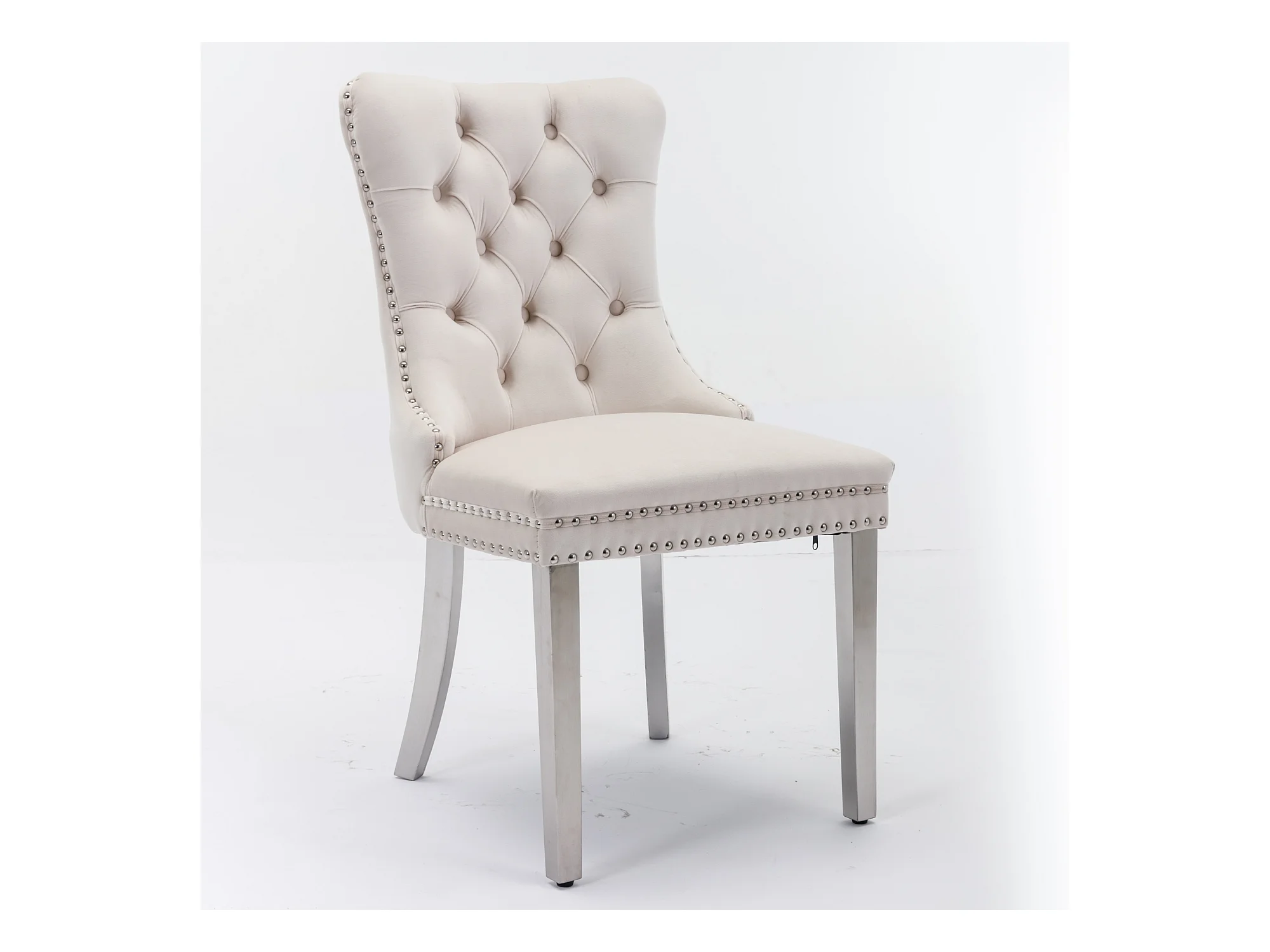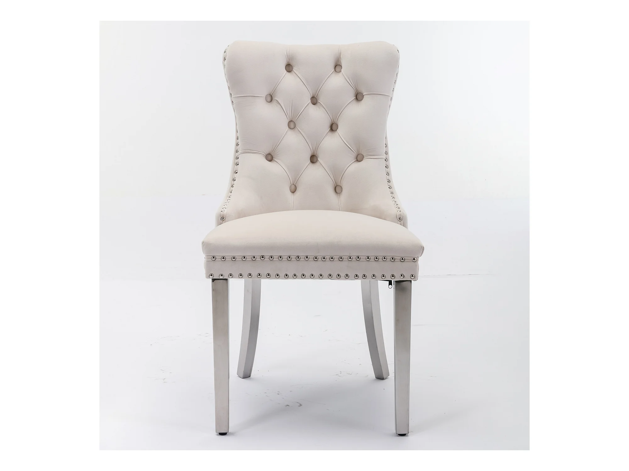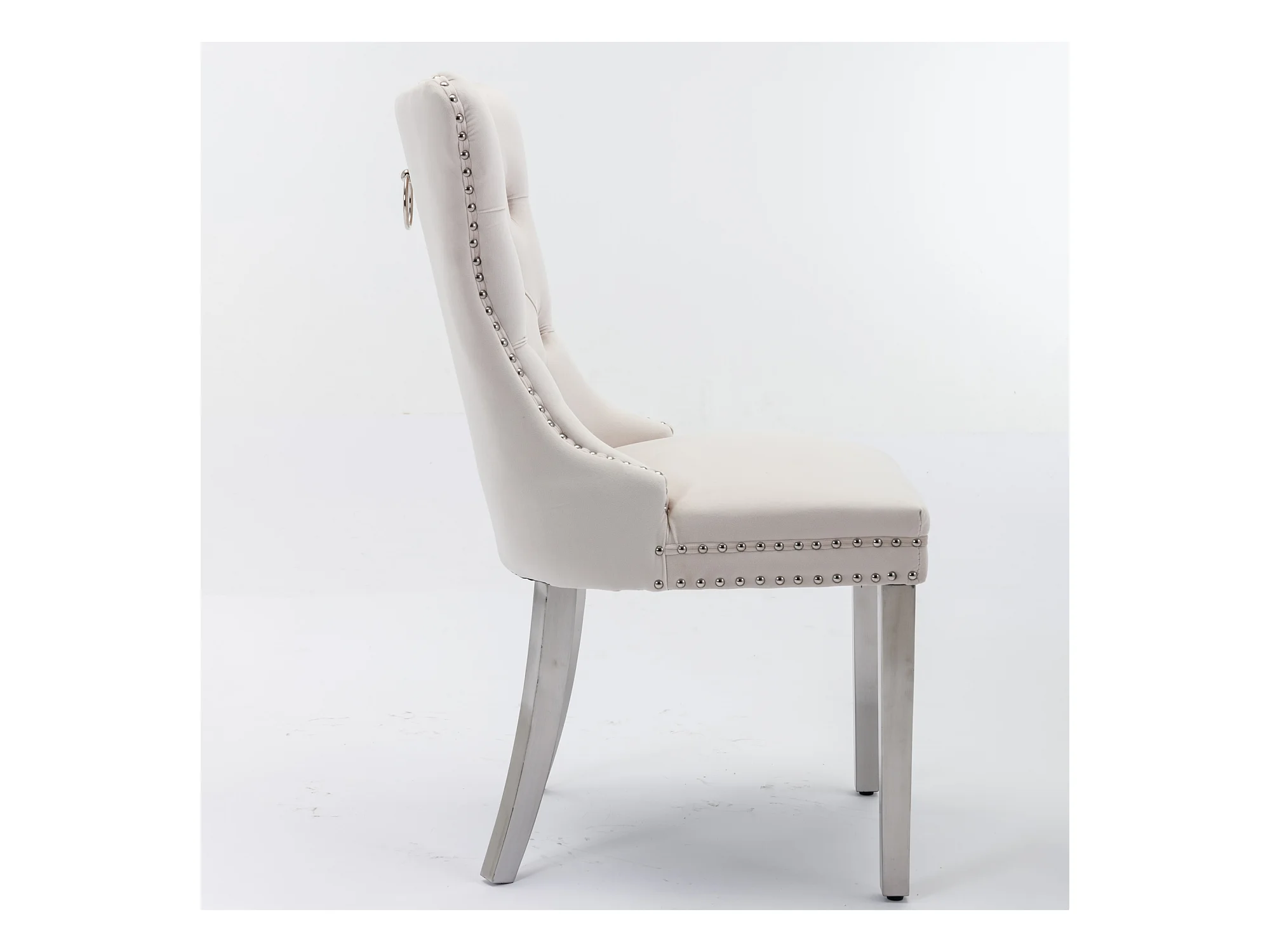 Set di 2 sedie da pranzo - Sedie con schienali imbottiti e gambe in acciaio inossidabile argentato - con finiture borchiate - velluto beige