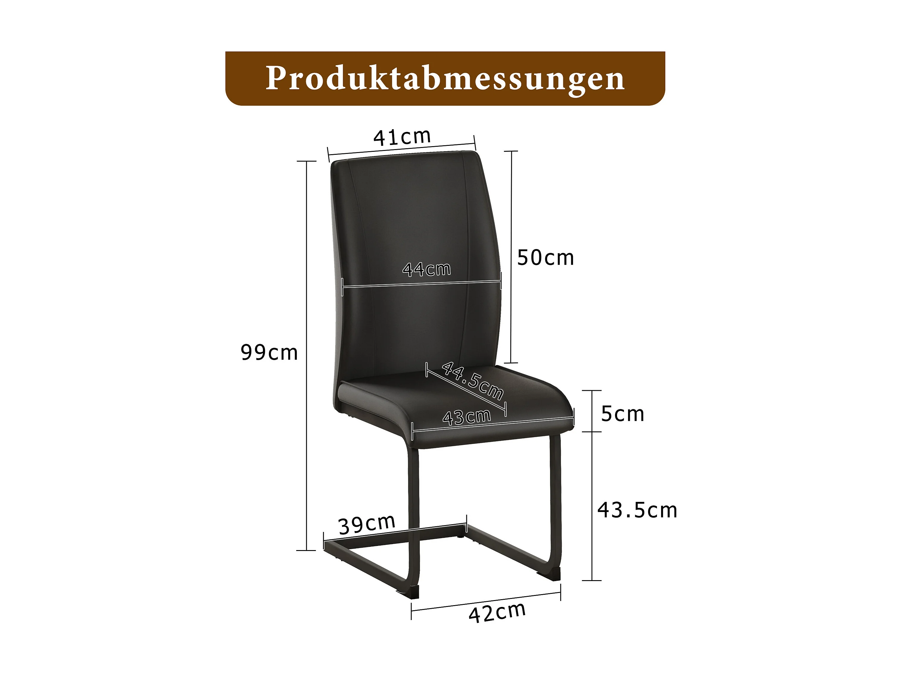 Set di 2 sedie da pranzo, similpelle nera, schienale imbottito, gambe in metallo