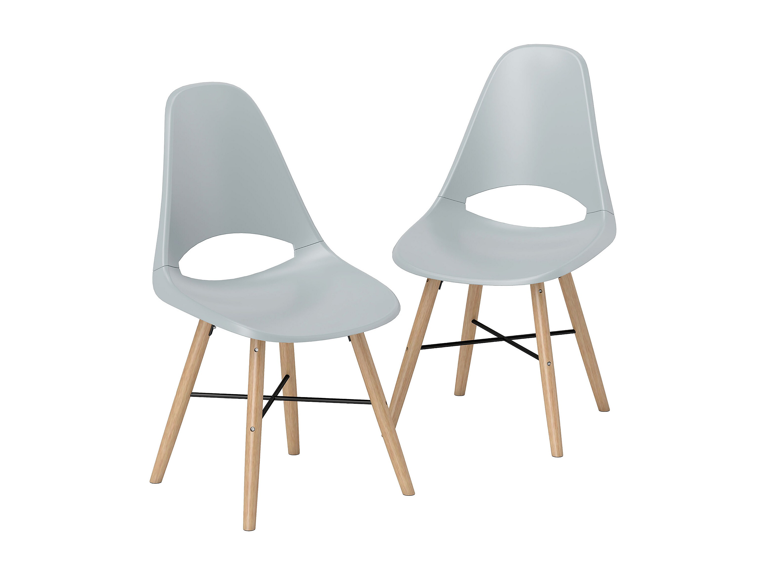 Set di 2 sedie da pranzo stile nordico in legno e plastica grigio