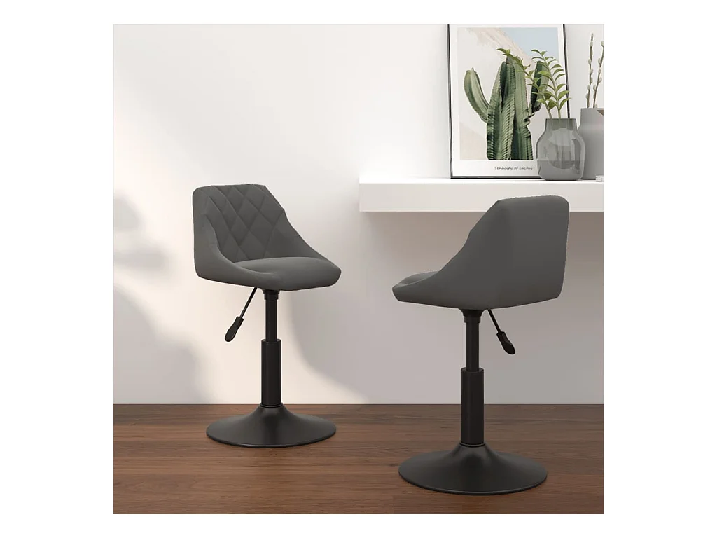 Set di 2 sedie girevoli da pranzo in velluto grigio scuro