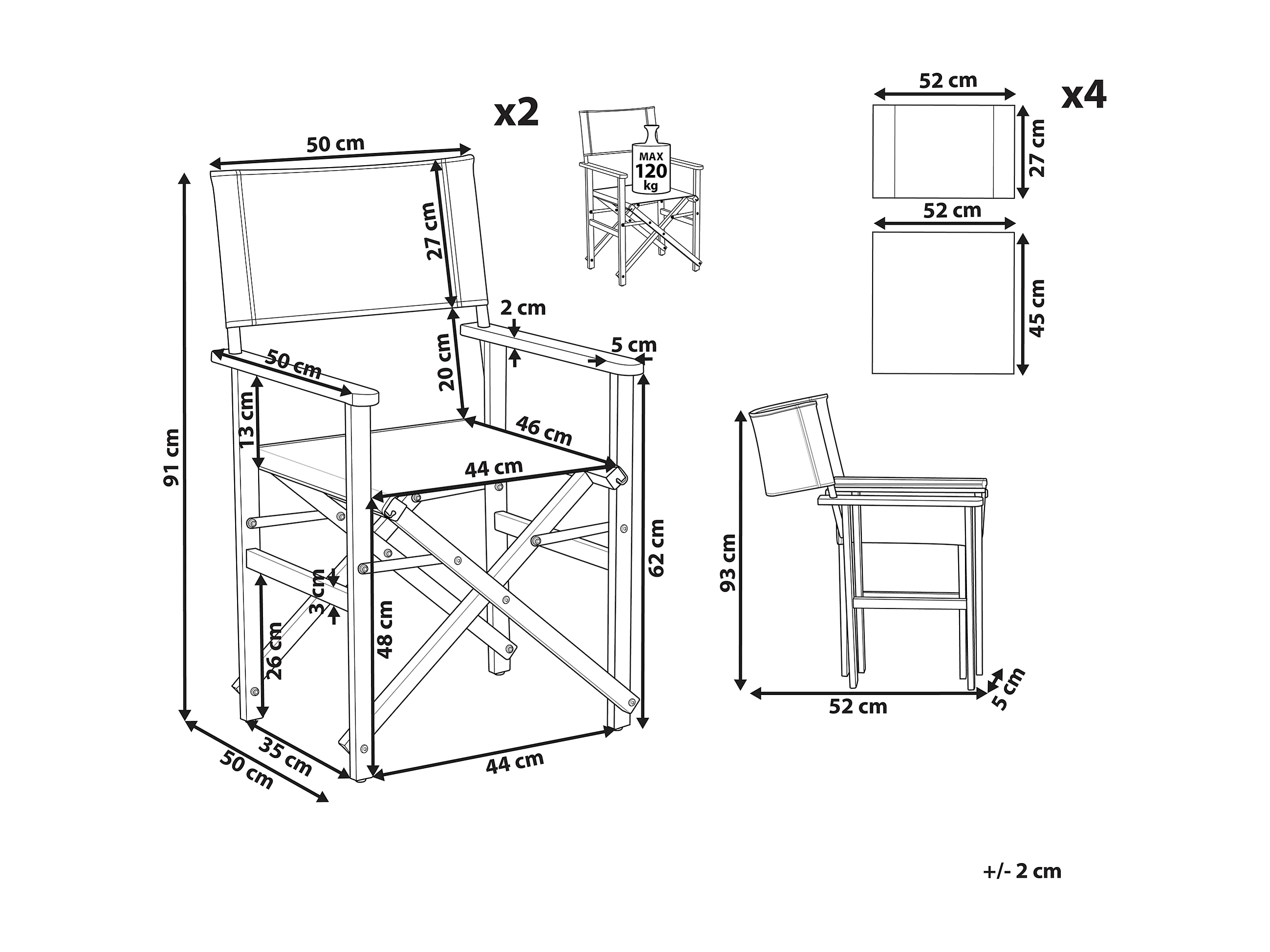 Sedia Regista Ketty alluminio seduta e schienale in textilene marrone chiaro x 2
