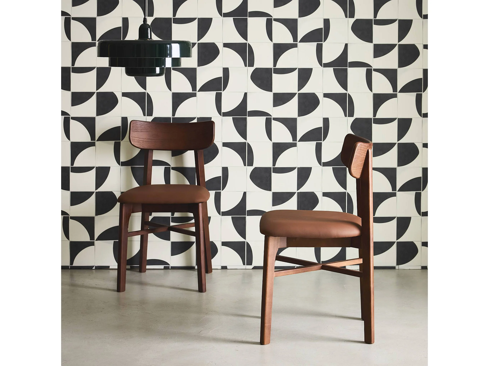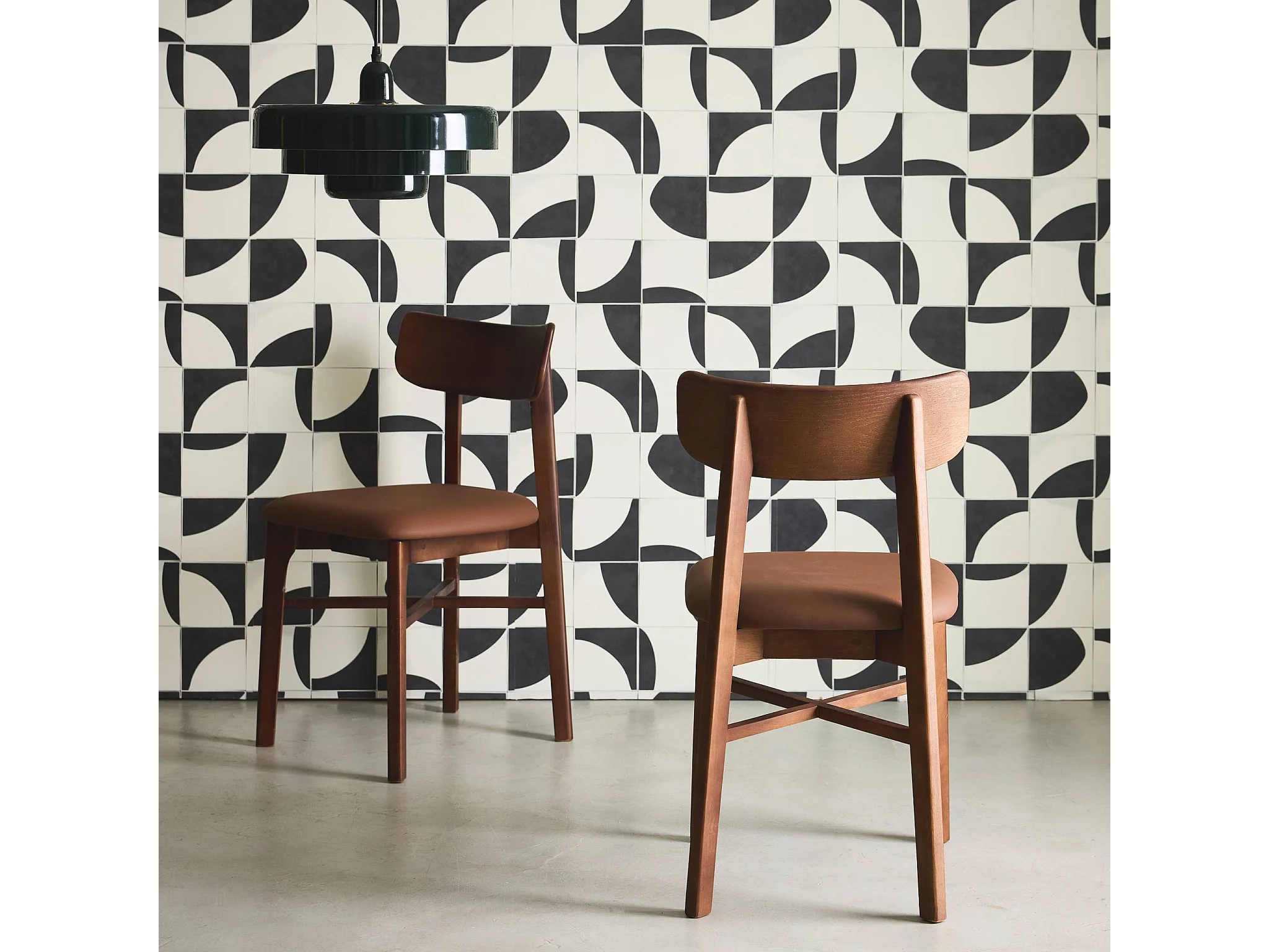 Set di 2 sedie in legno di hevea e similpelle, noce