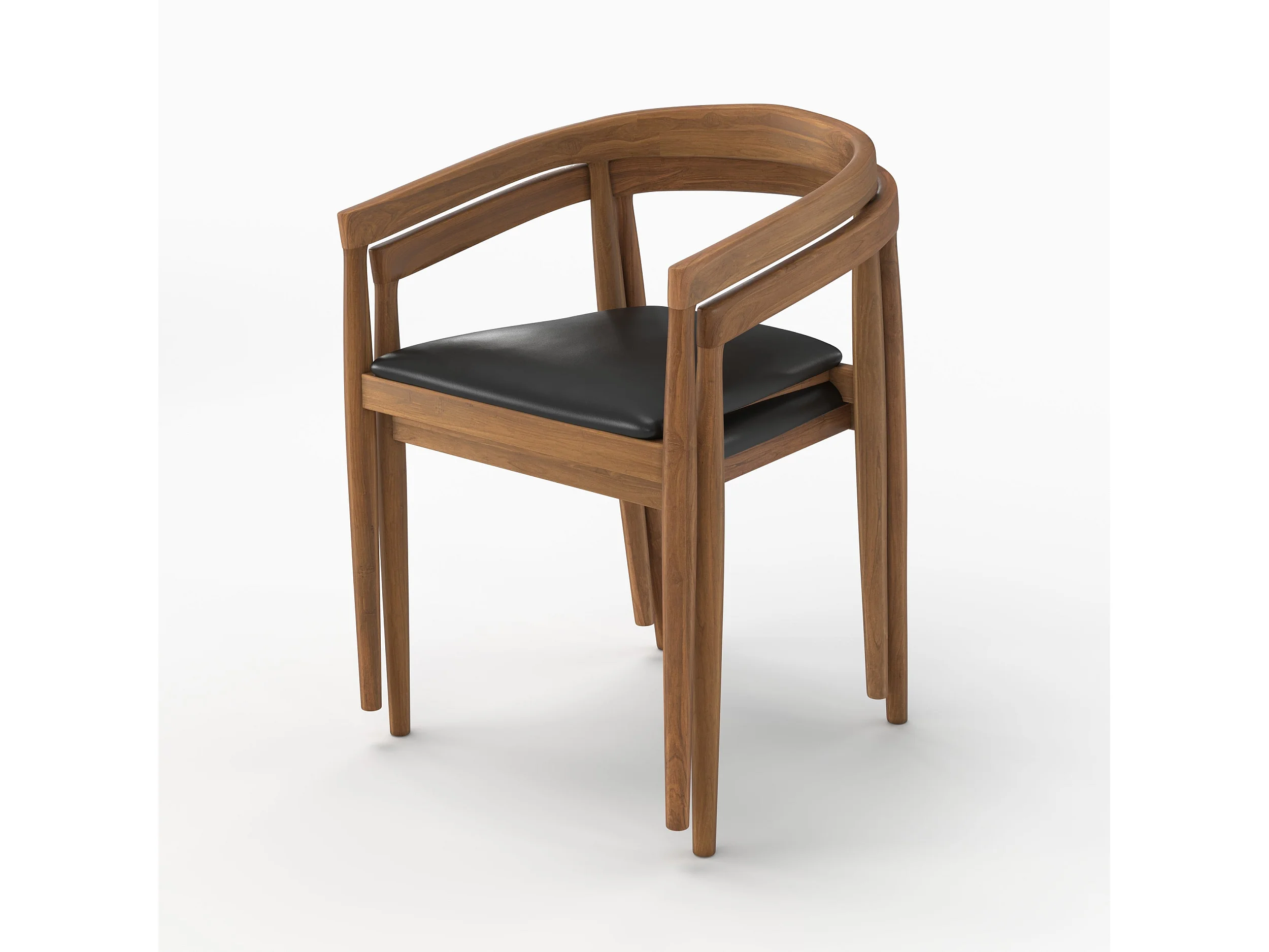 Set di 2 sedie in legno di teak verniciato e seduta in pelle nera - Bali