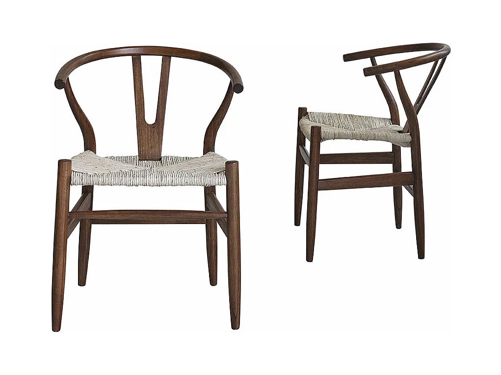Set di 2 sedie in mindi massello finitura noce e corda naturale