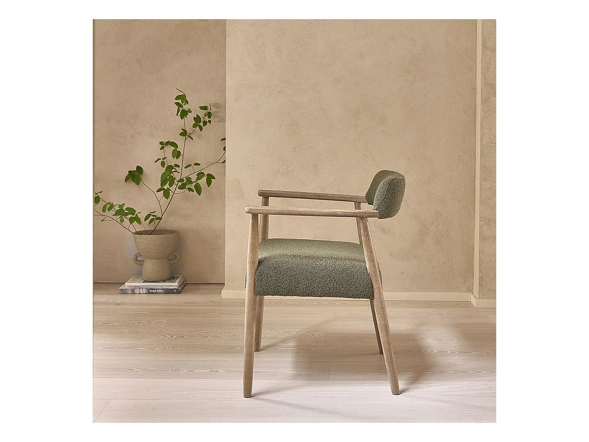 Set di 2 sedie in rovere e tessuto bouclé kaki