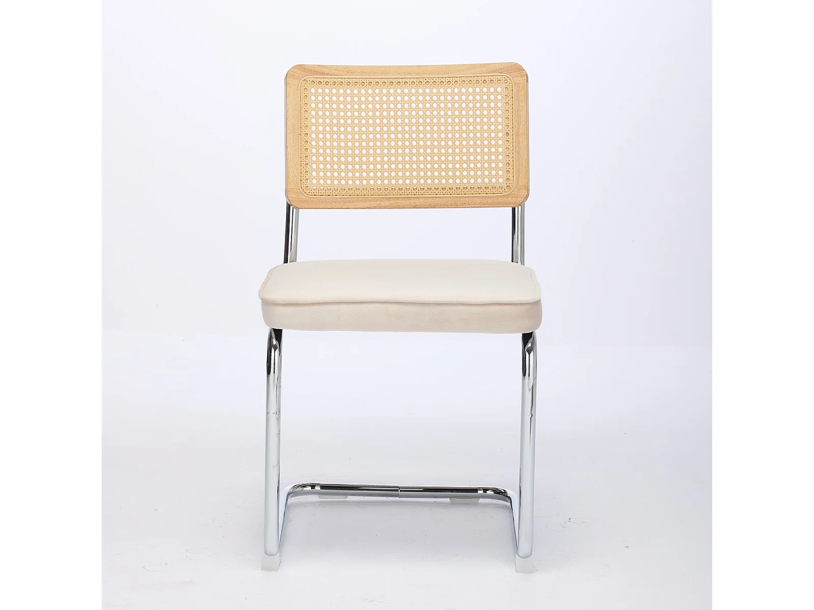 Set di 2 sedie in velluto beige - Struttura in metallo - Schienale in rattan