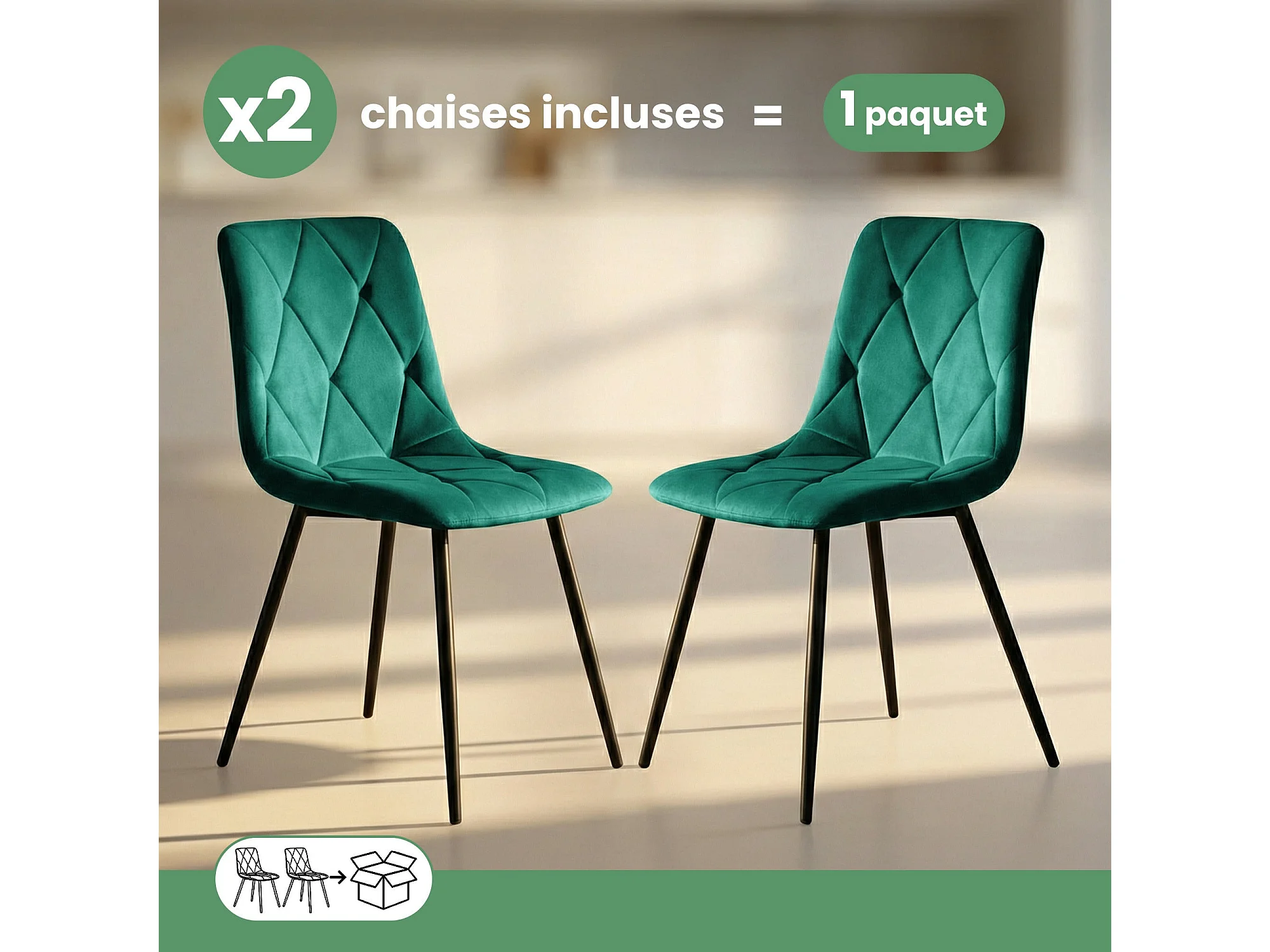 Set di 2 sedie da pranzo in velluto verde - con struttura in metallo e schienale imbottito