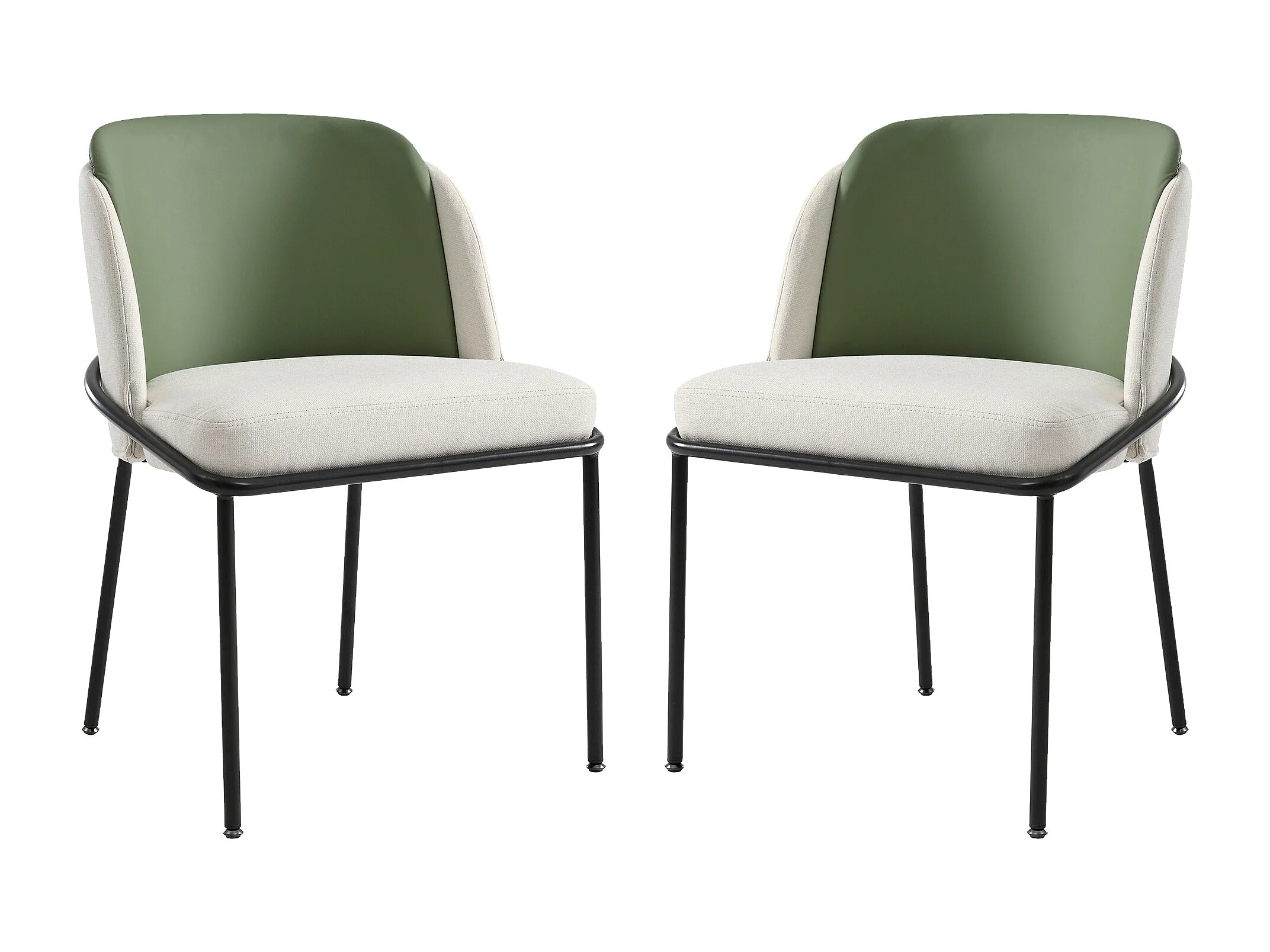 Set di 2 Sedie - Lino e similpelle - gambe in metallo - stile contemporaneo - Verde + Beige