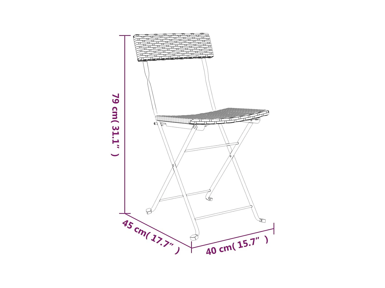 Set di 2 sedie pieghevoli da bistrot in resina intrecciata e acciaio