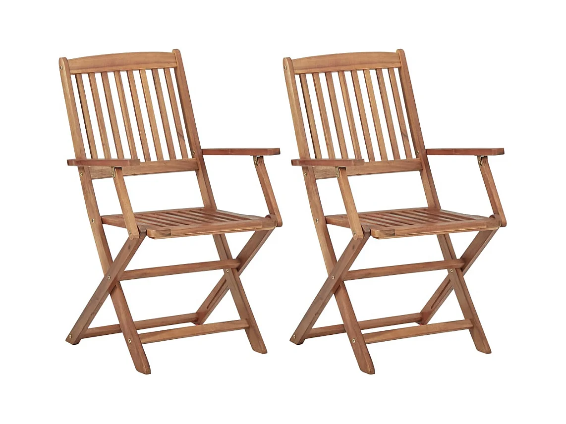 Set di 2 sedie pieghevoli da esterno in legno massello di acacia