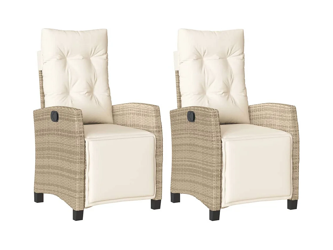 Set di 2 sedie reclinabili da giardino e cuscini in rattan beige