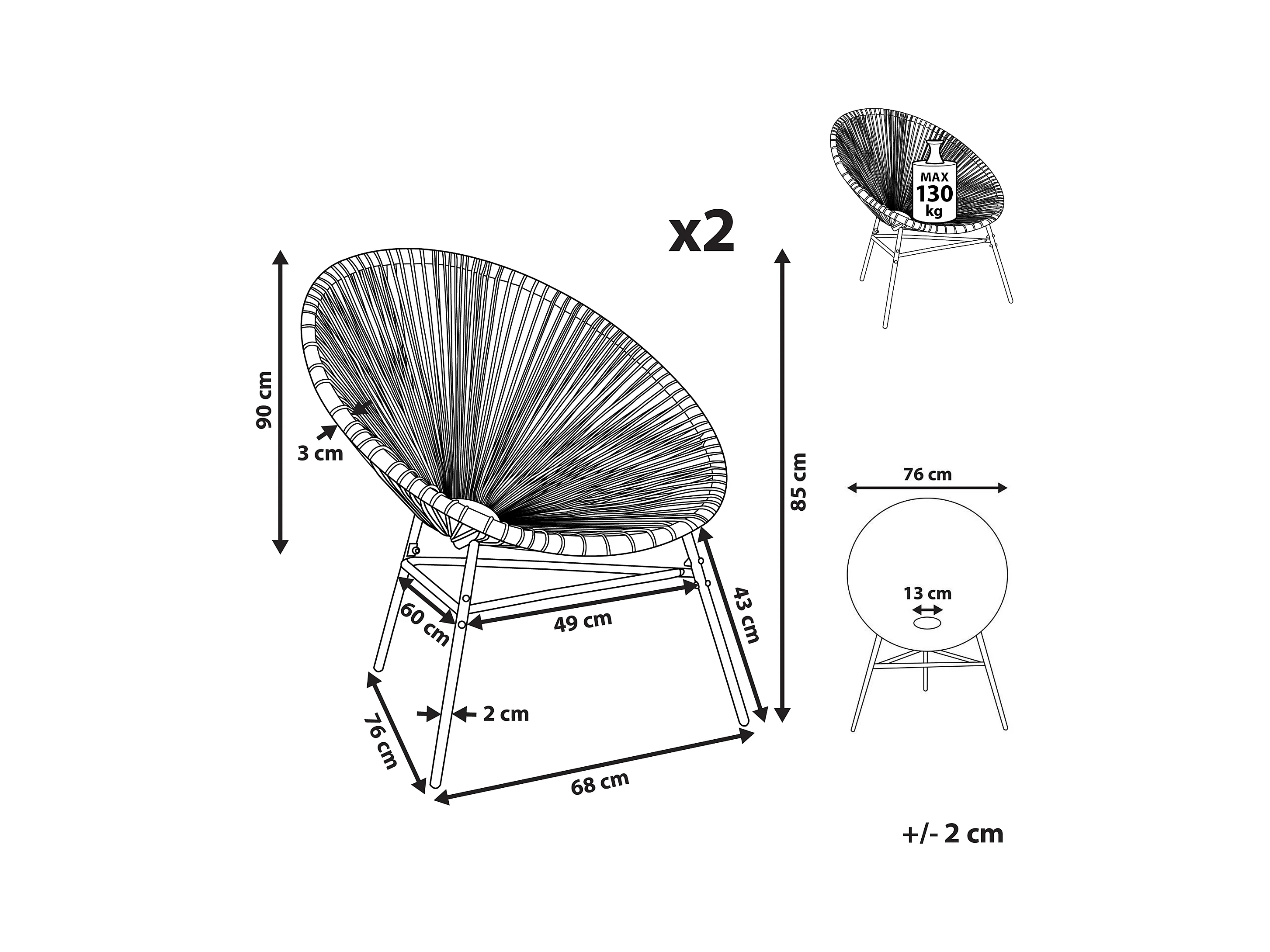 Set di 2 sedie da giardino ACAPULCO Bianco
