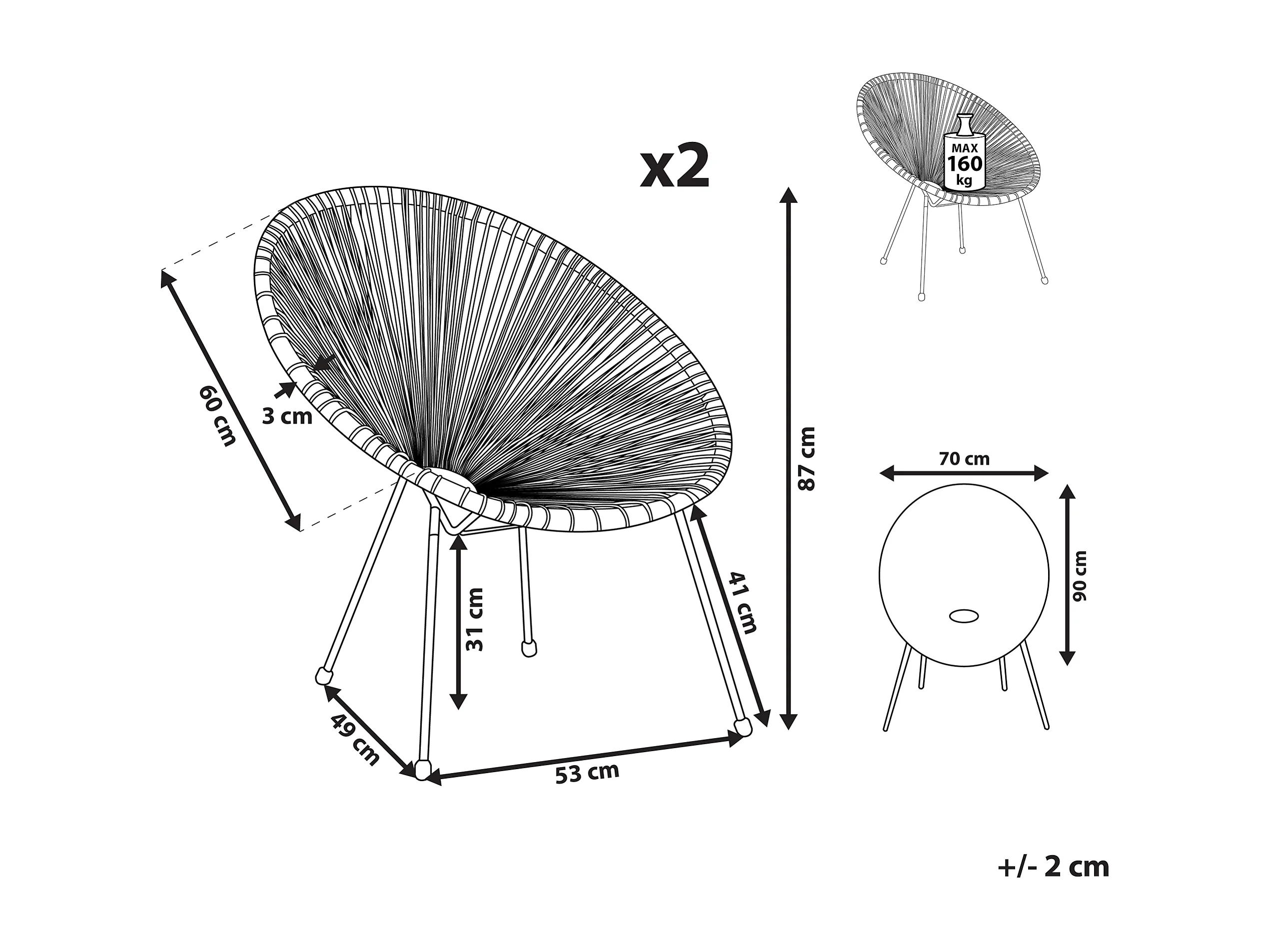 Set di 2 sedie da giardino ACAPULCO II Grigio scuro