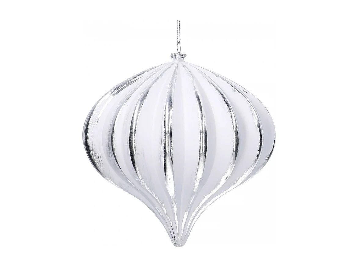 Set di 2 Sfera plastica cipolla a coste bianco eargento cm ø15