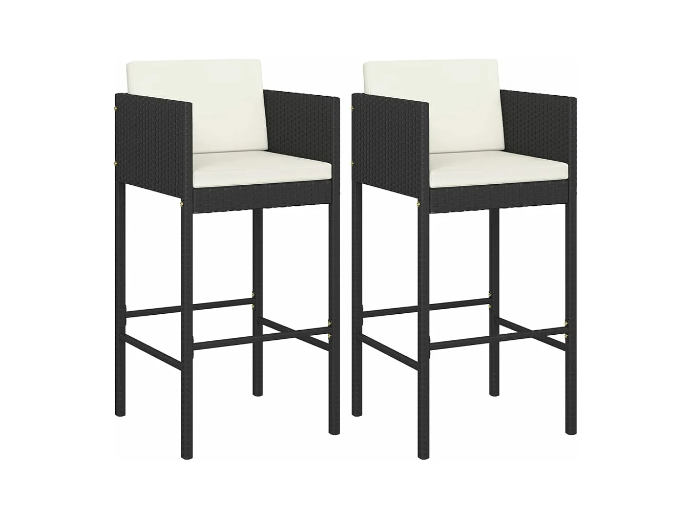 Set di 2 sgabelli da bar con cuscini in resina intrecciata nera