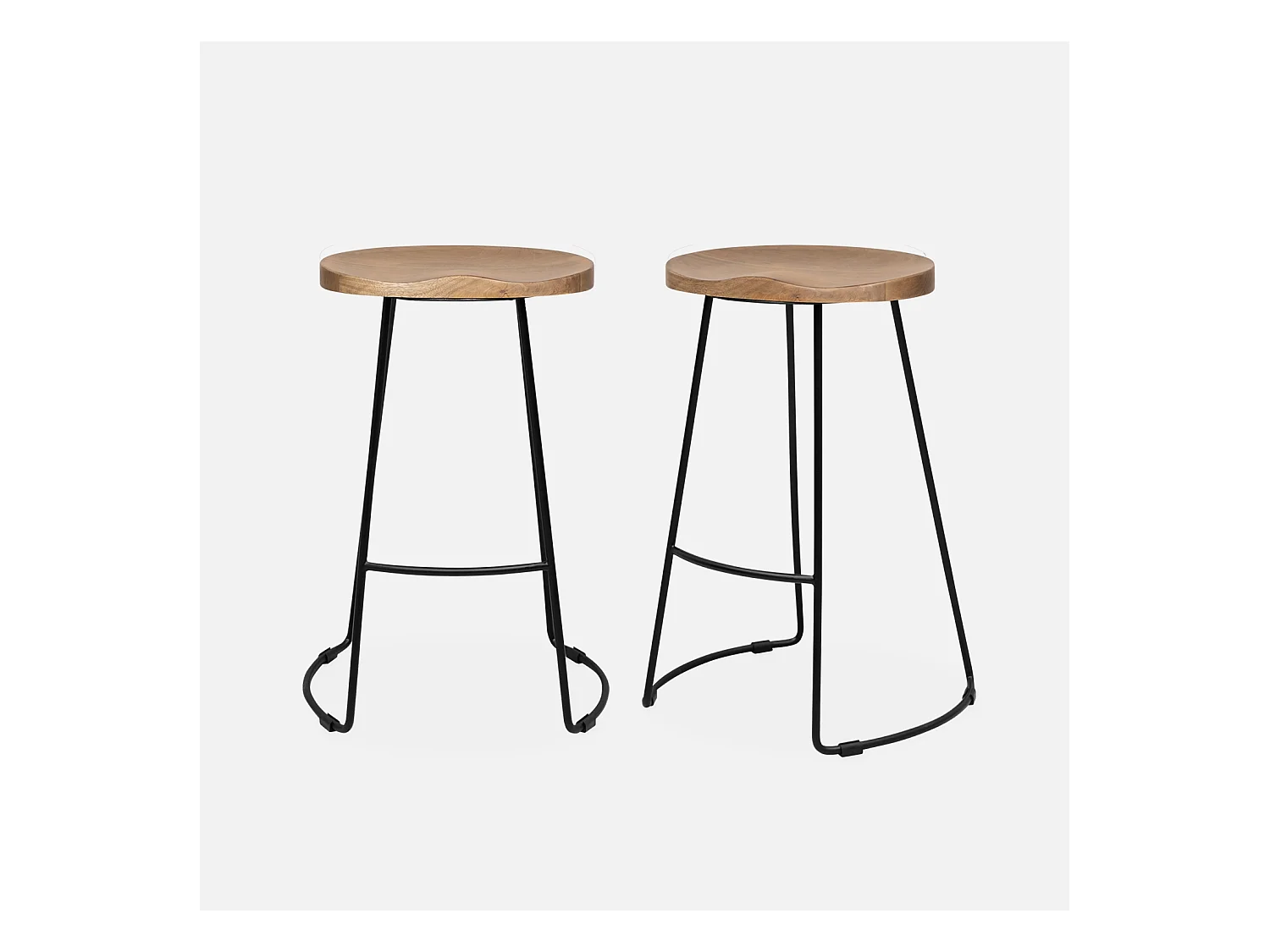 Set di 2 sgabelli da bar in legno di mango e acciaio, 65cm, marrone