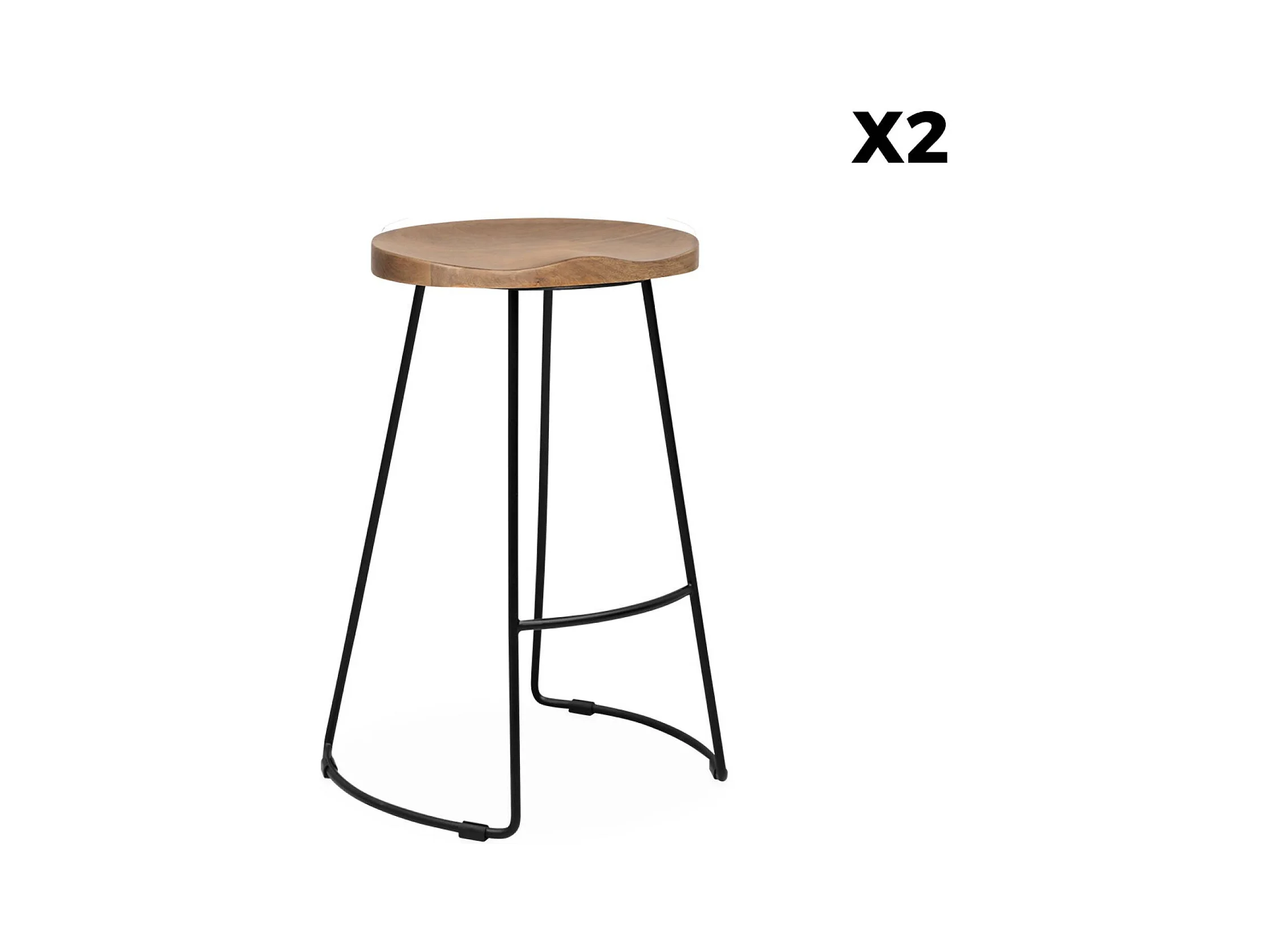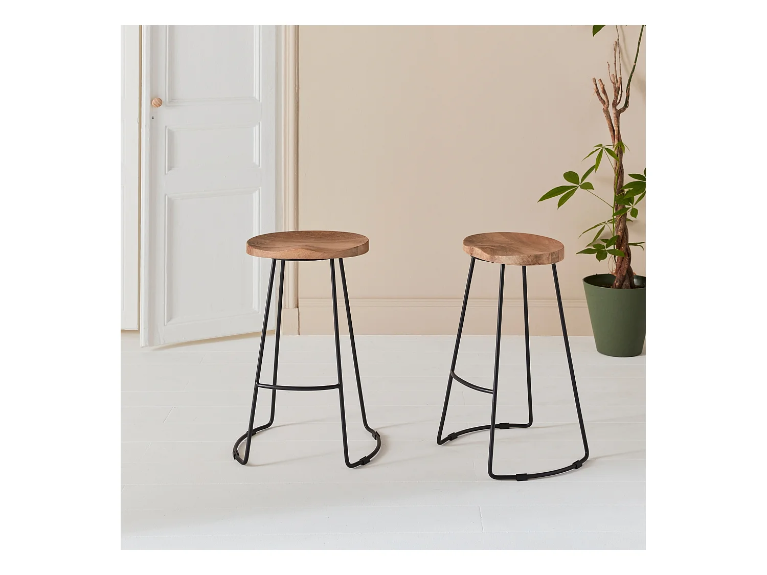 Set di 2 sgabelli da bar in legno di mango e acciaio, 75cm, marrone