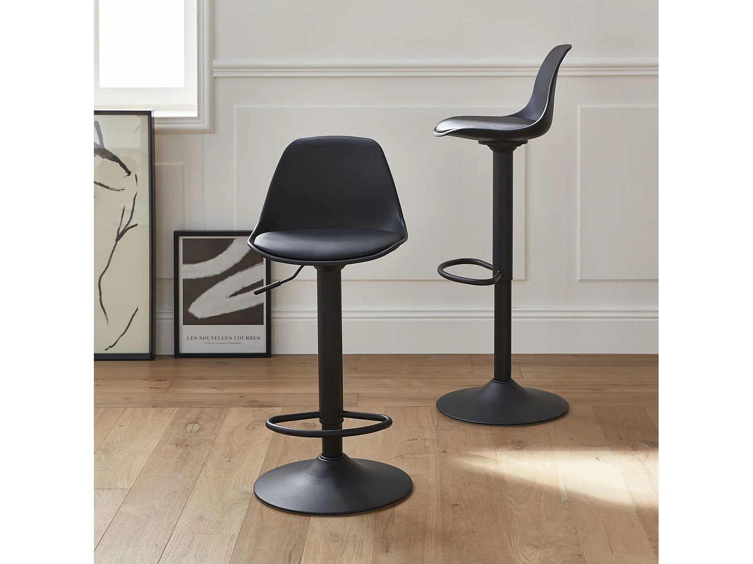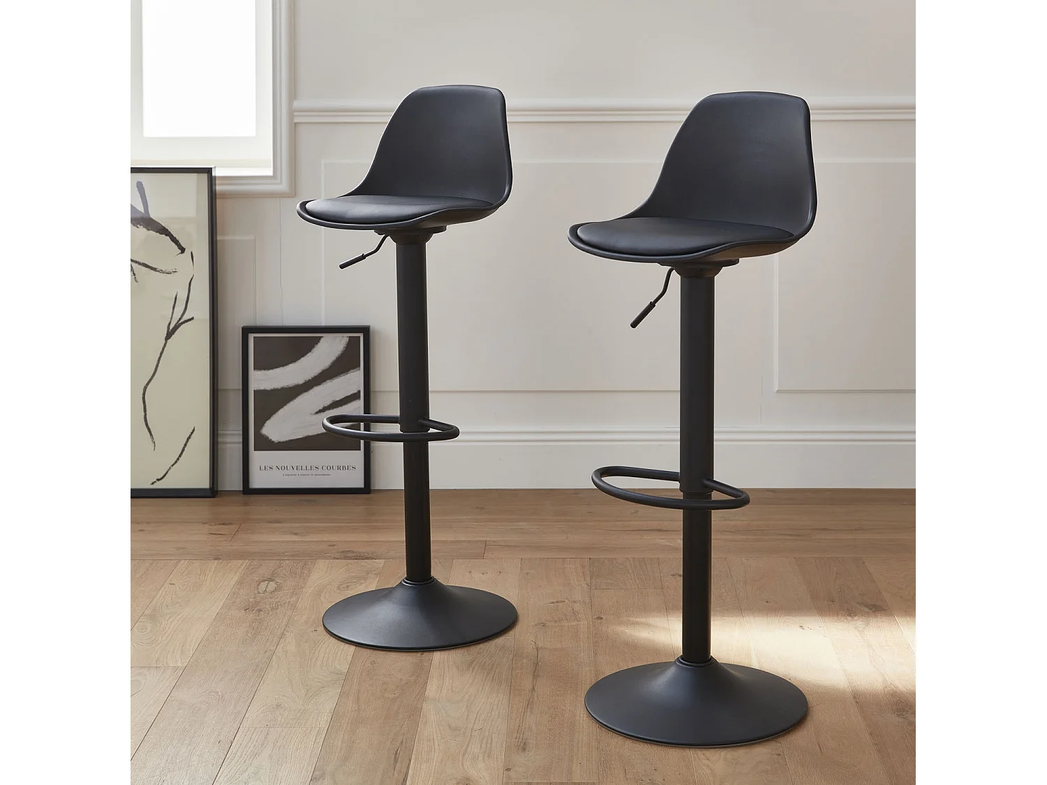 Set 2 sgabelli da bar in similpelle regolabili, nero