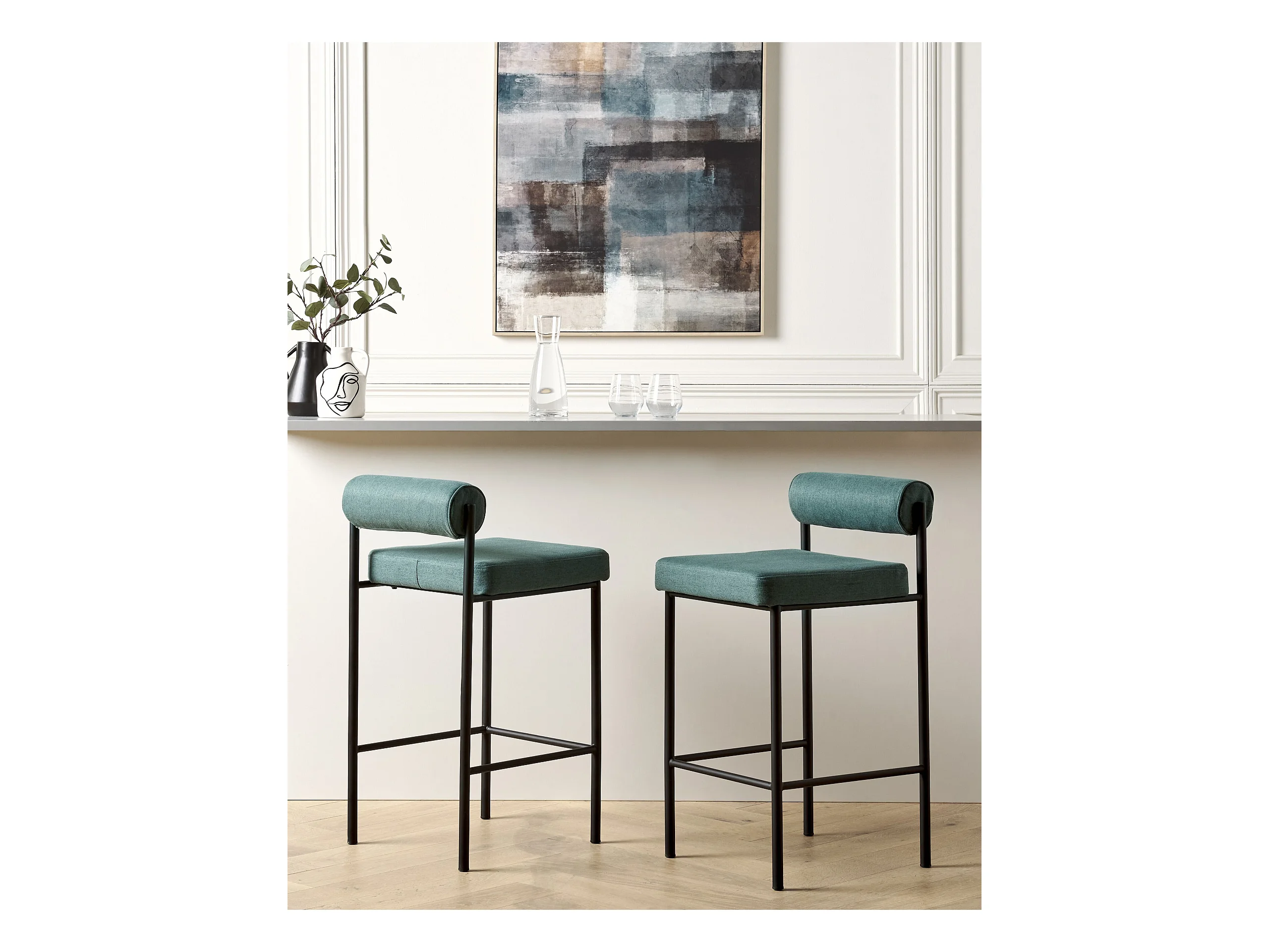 Set di 2 sedie da bar, tessuto verde kaki 65 cm - Henrik