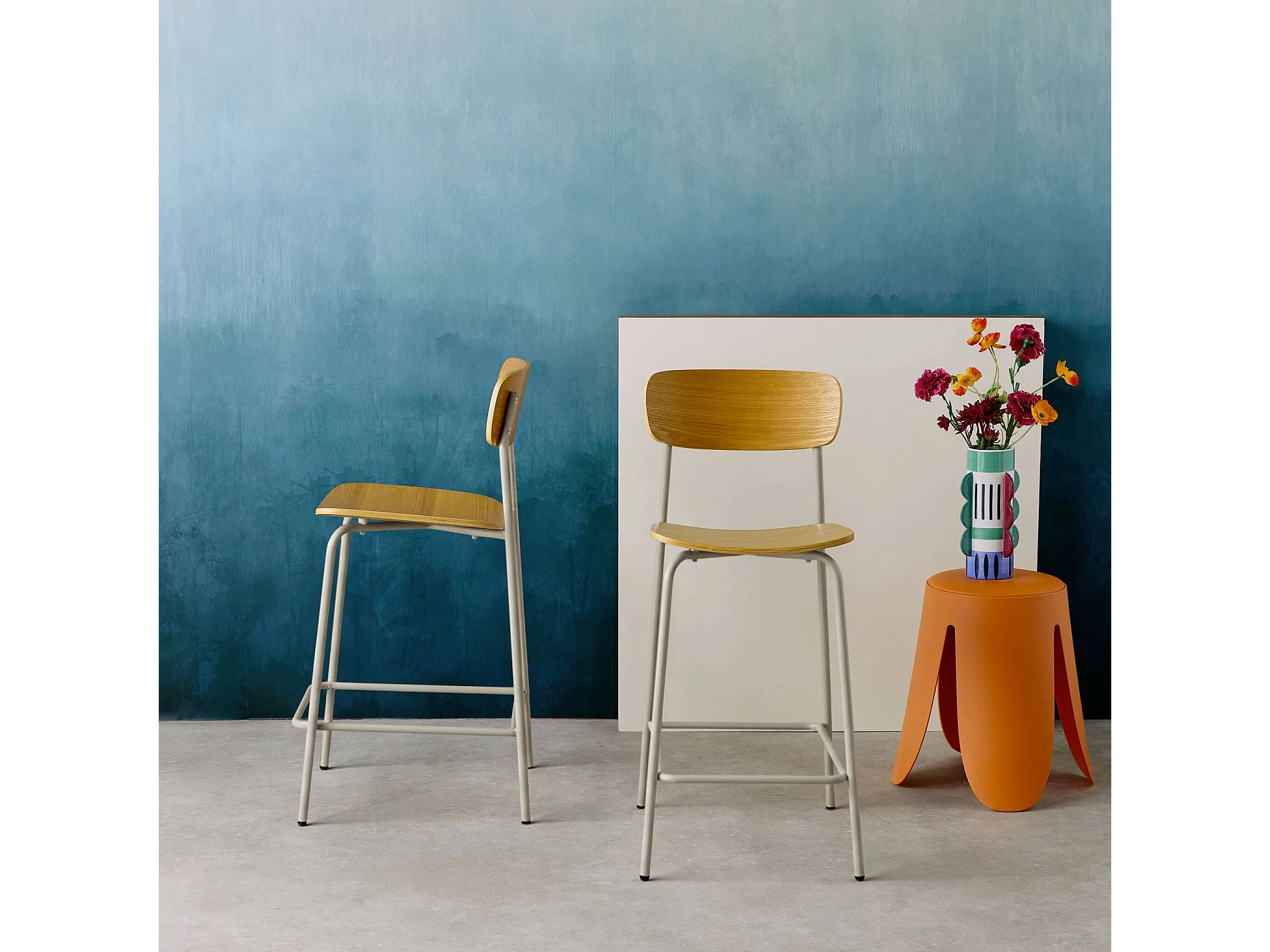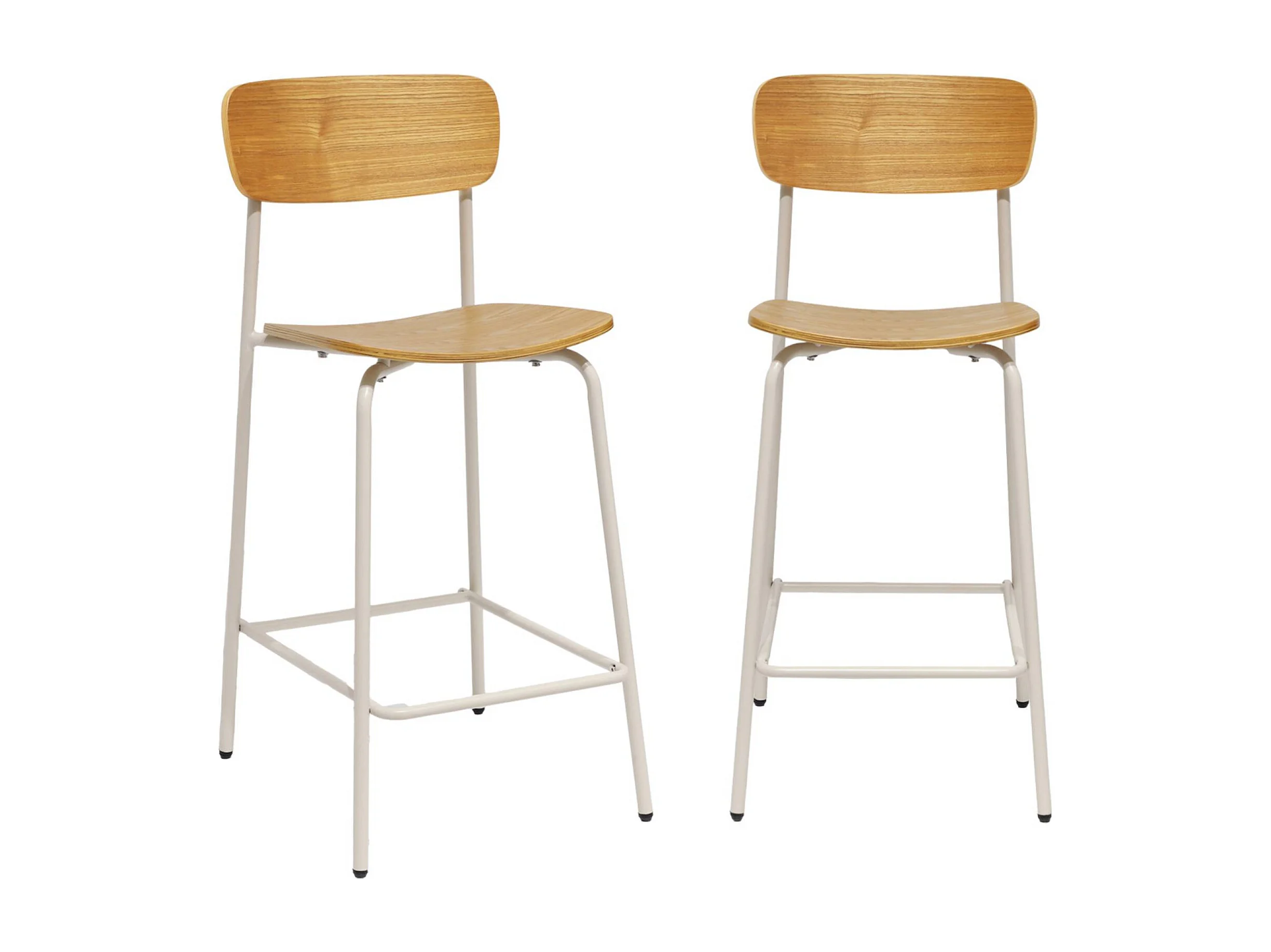 Set di 2 sgabelli da bar vintage metallo e compensato, beige