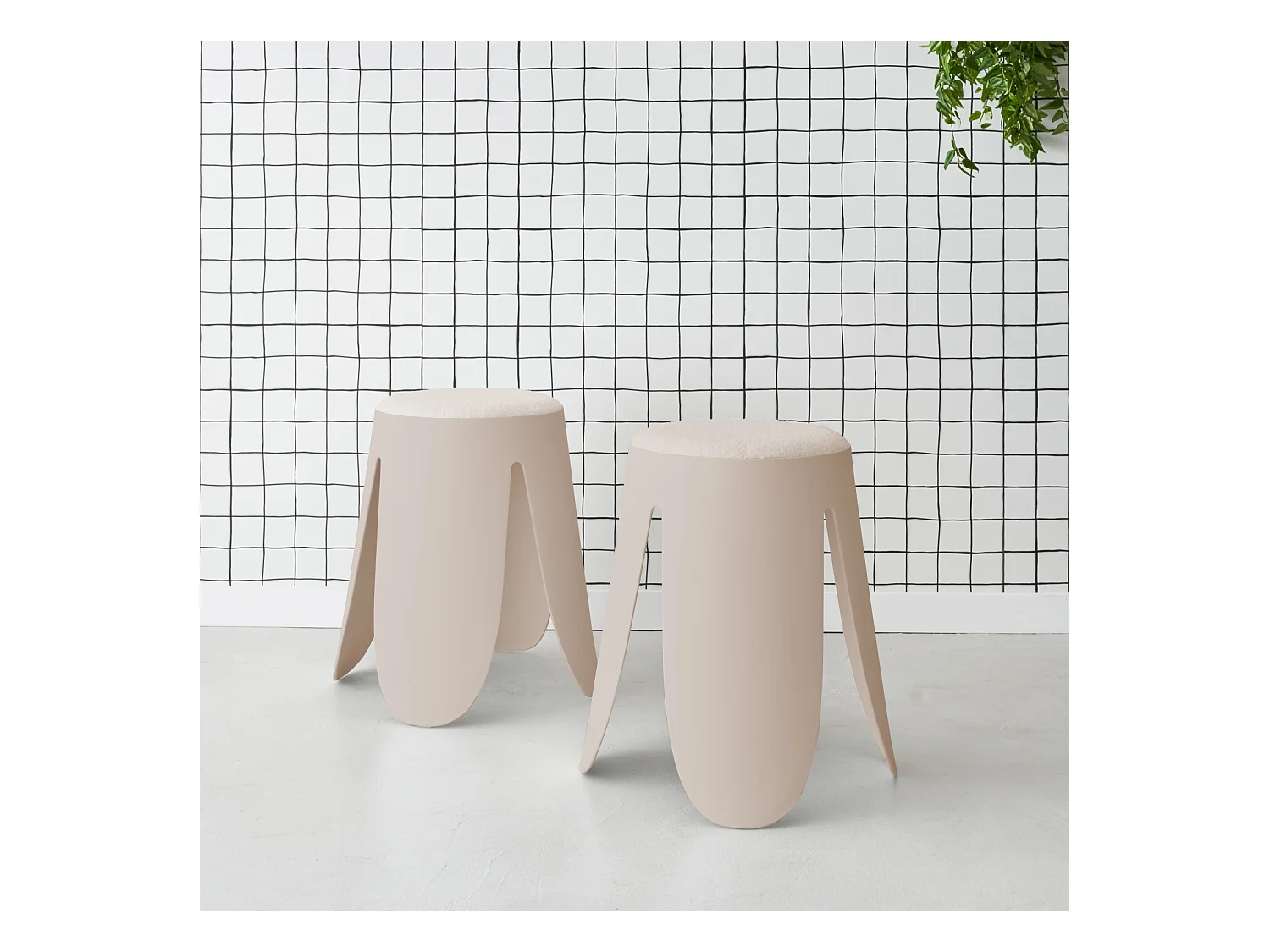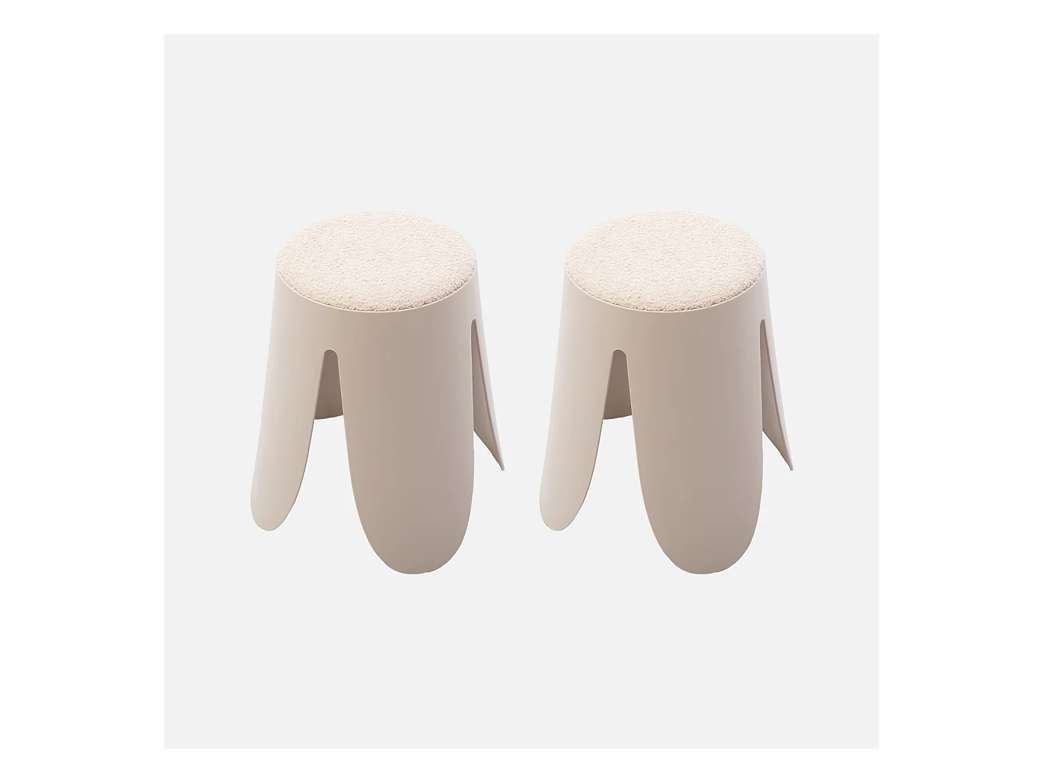 Set di 2 sgabelli impilabili in materiale bouclé, beige