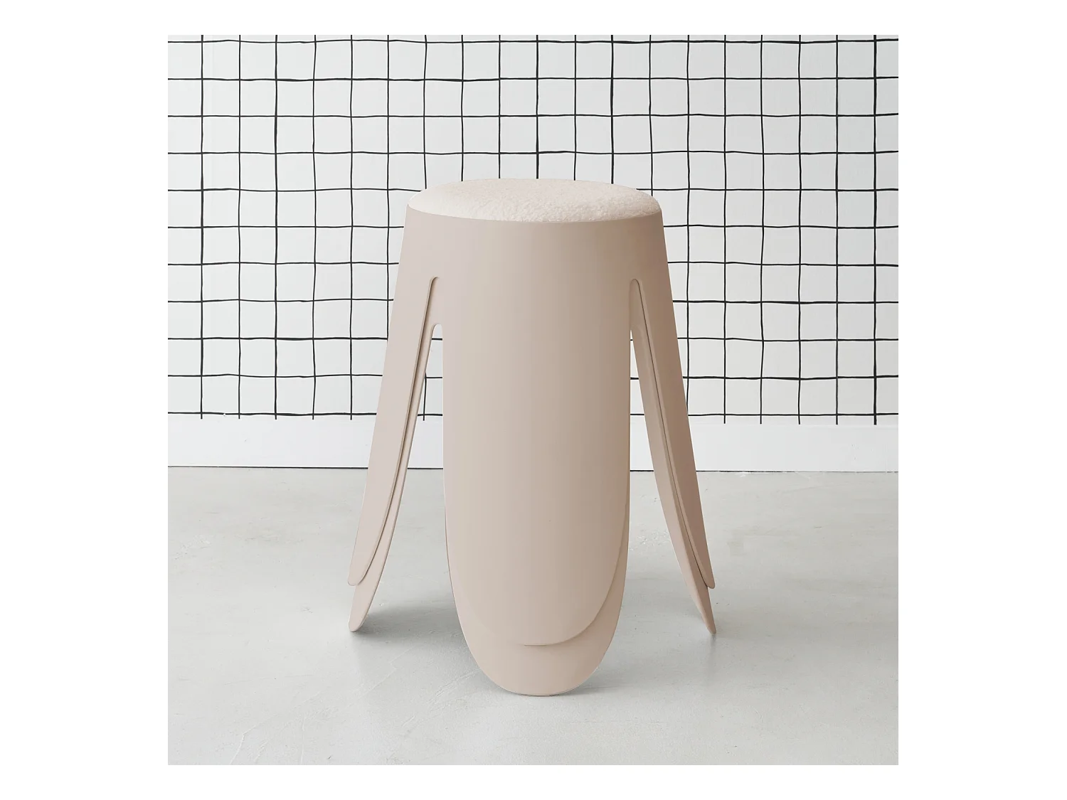 Set di 4 sgabelli impilabili in materiale bouclé, beige