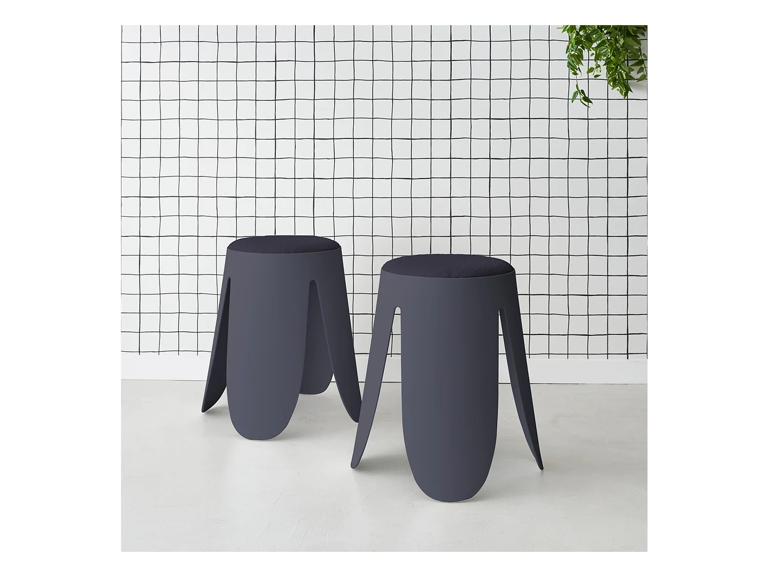 Set di 2 sgabelli impilabili in materiale bouclé, blu navy