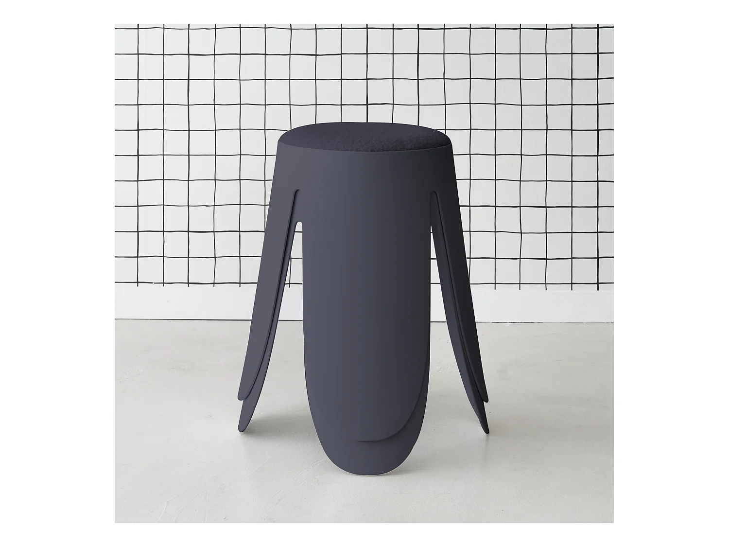 Set di 4 sgabelli impilabili in materiale bouclé, blu navy