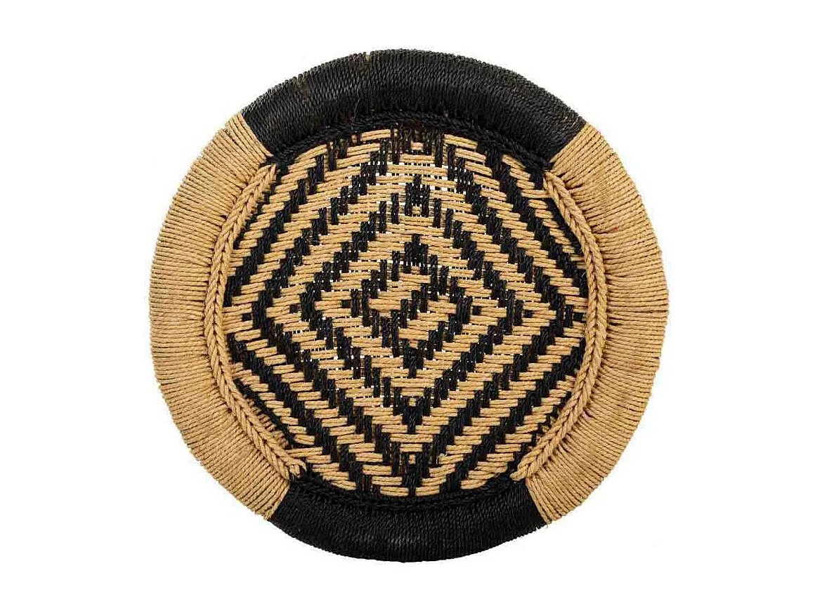 Sgabello in legno e cotone intrecciato