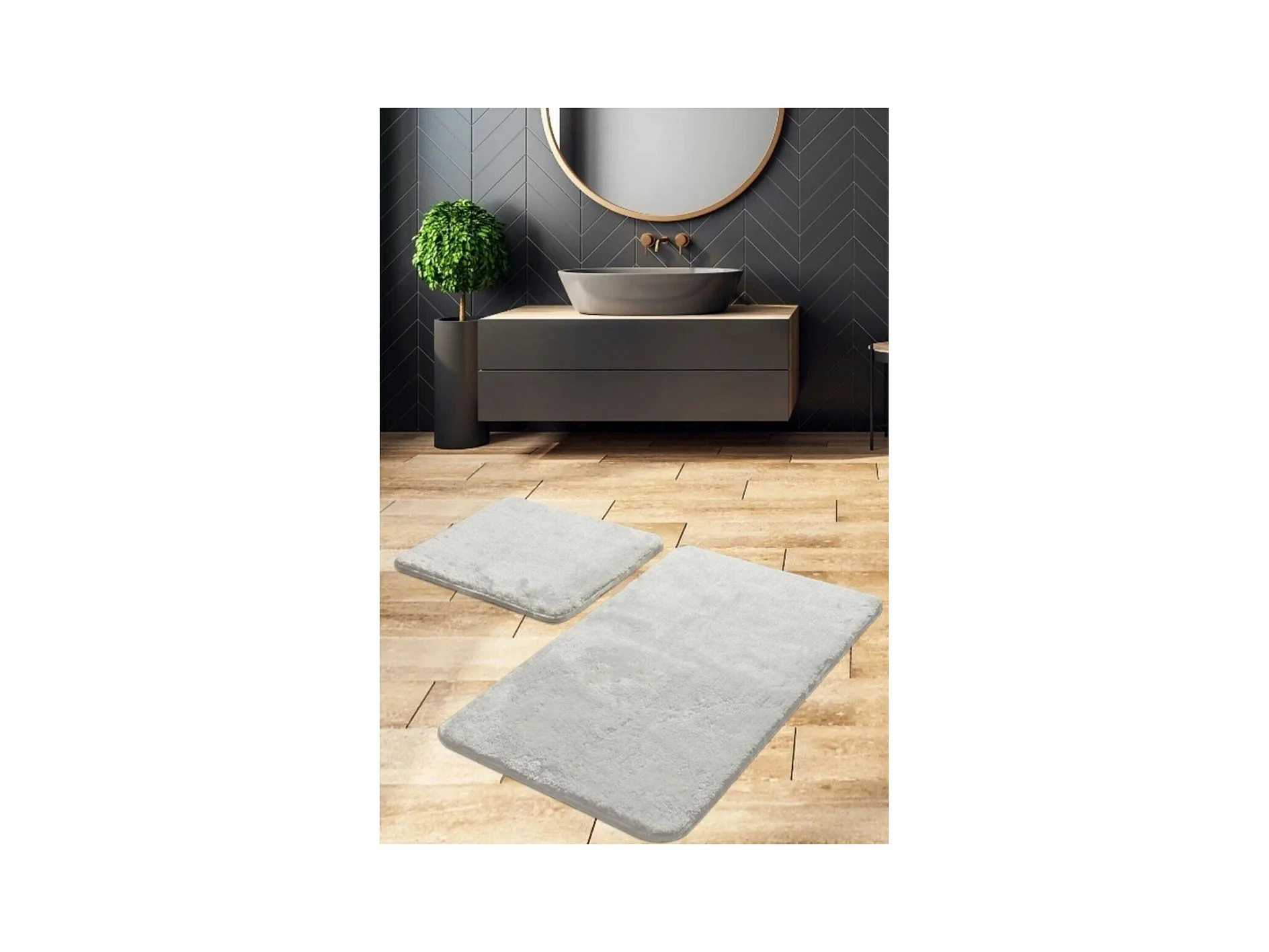Set di 2 Tappeti Bagno Plush, Grigio, 60x40x2 cm, EPIKASA
