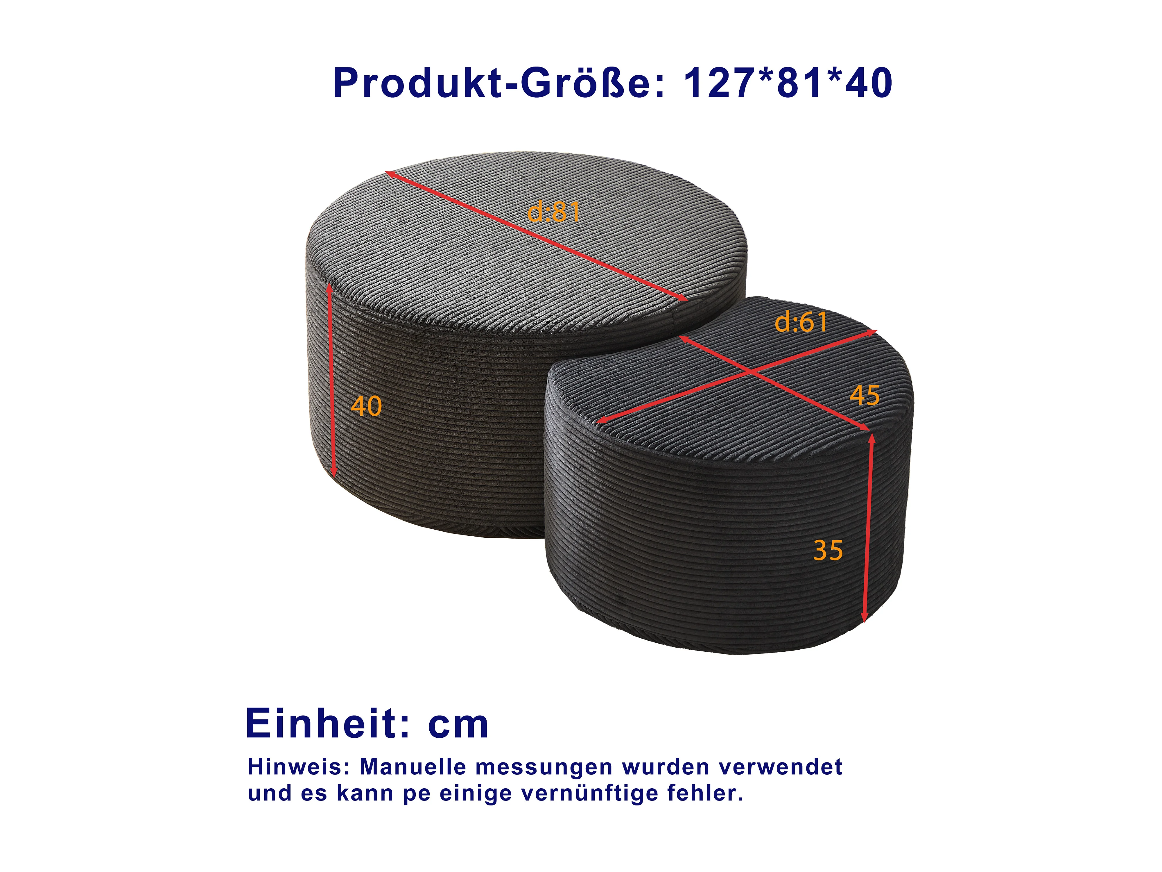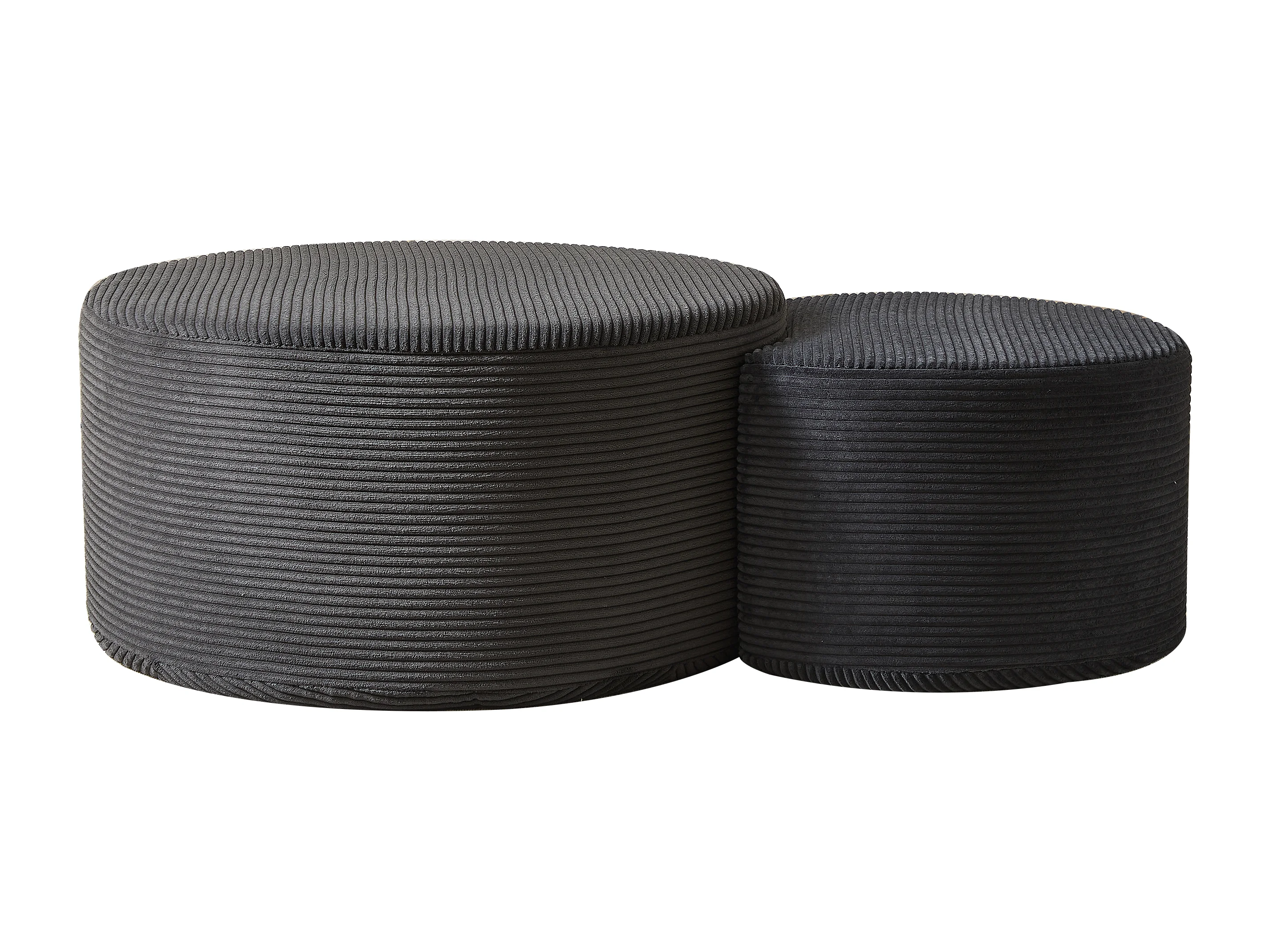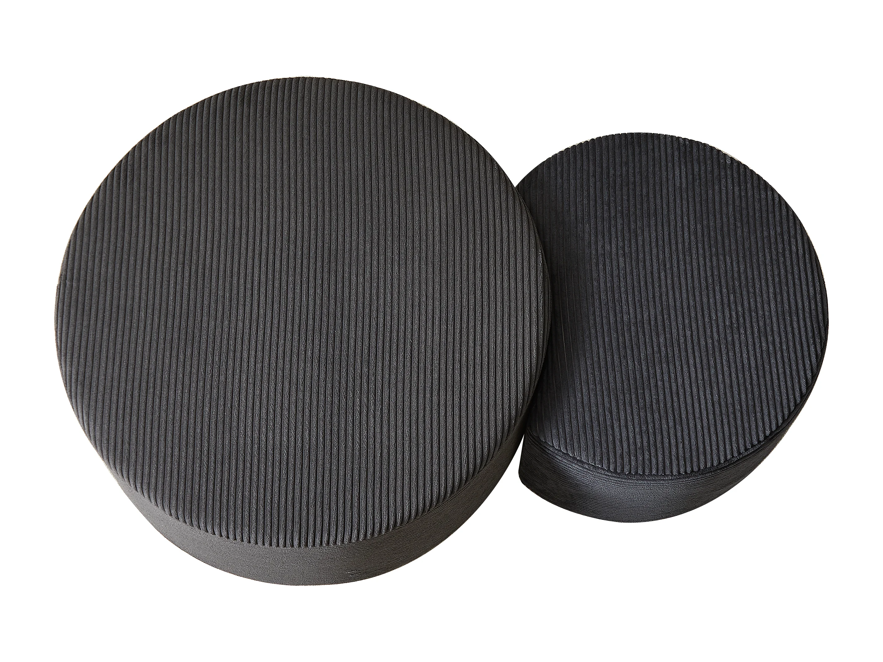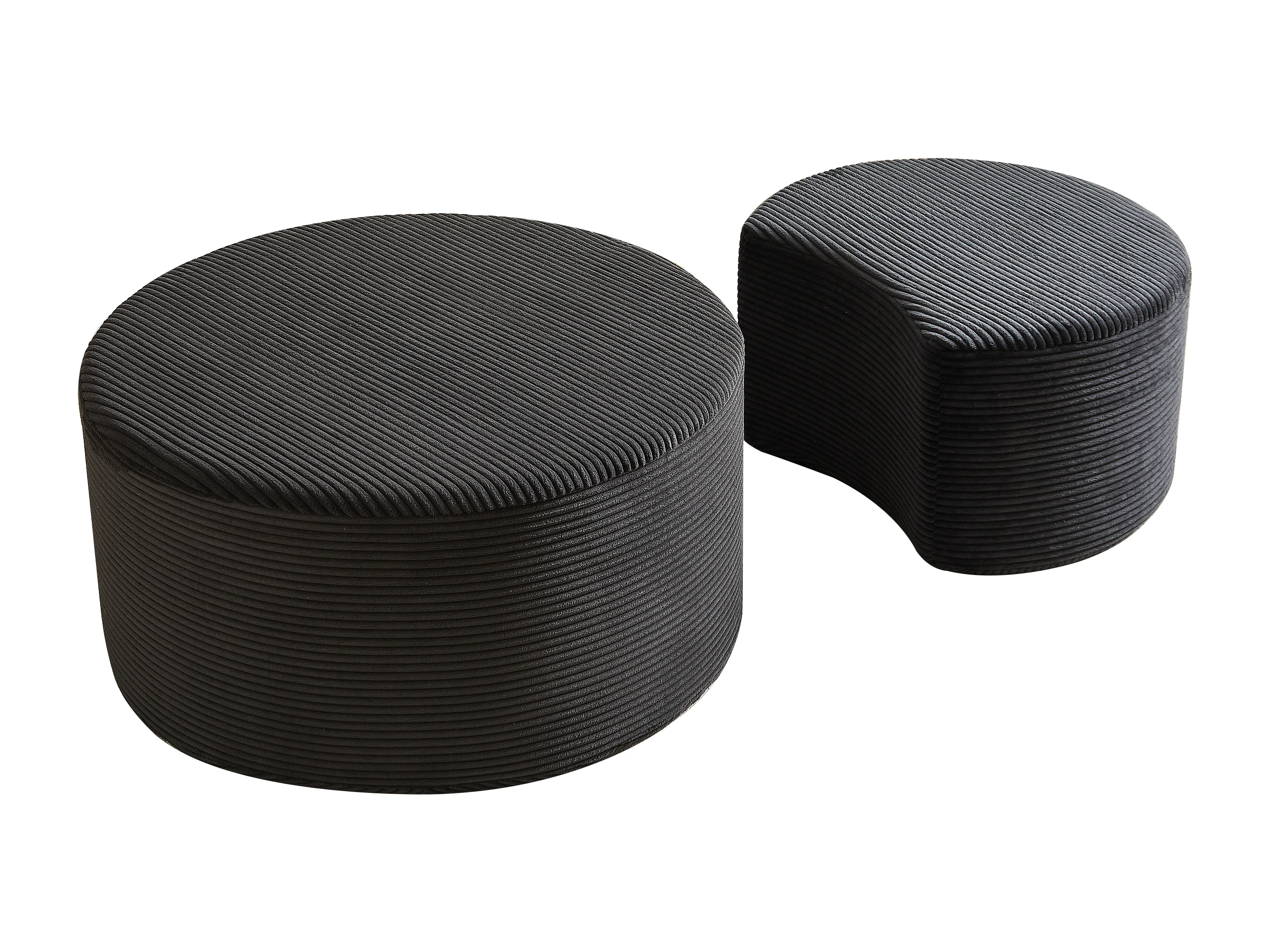 Set di 2 tavolini da caffè, cuscini rotondi, tessuto nero