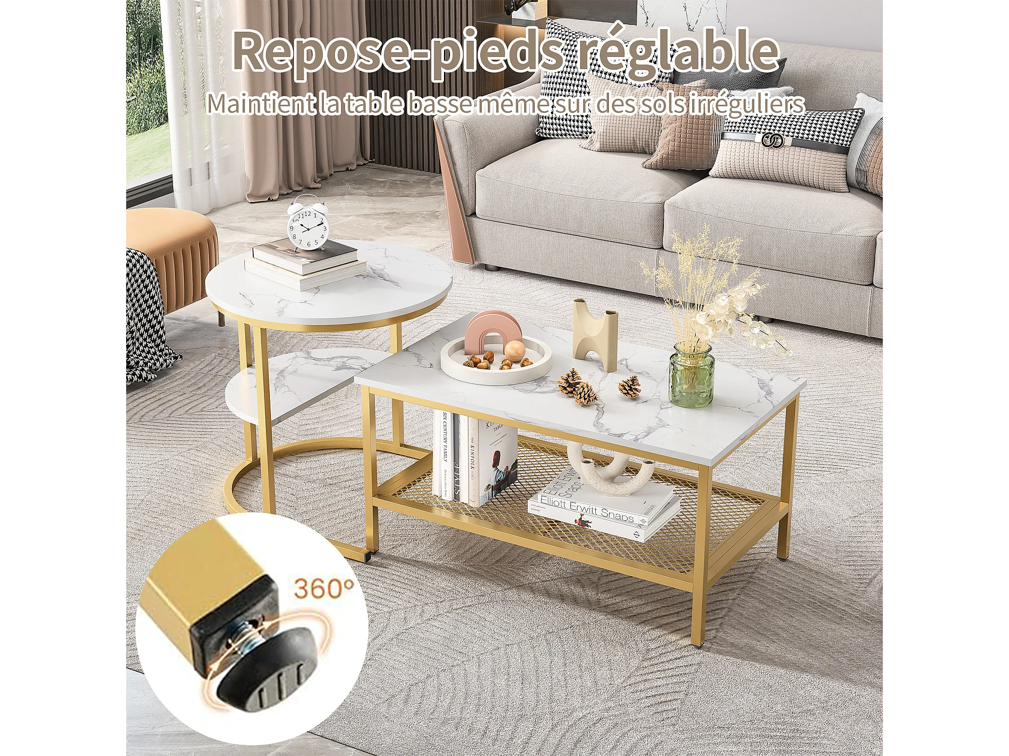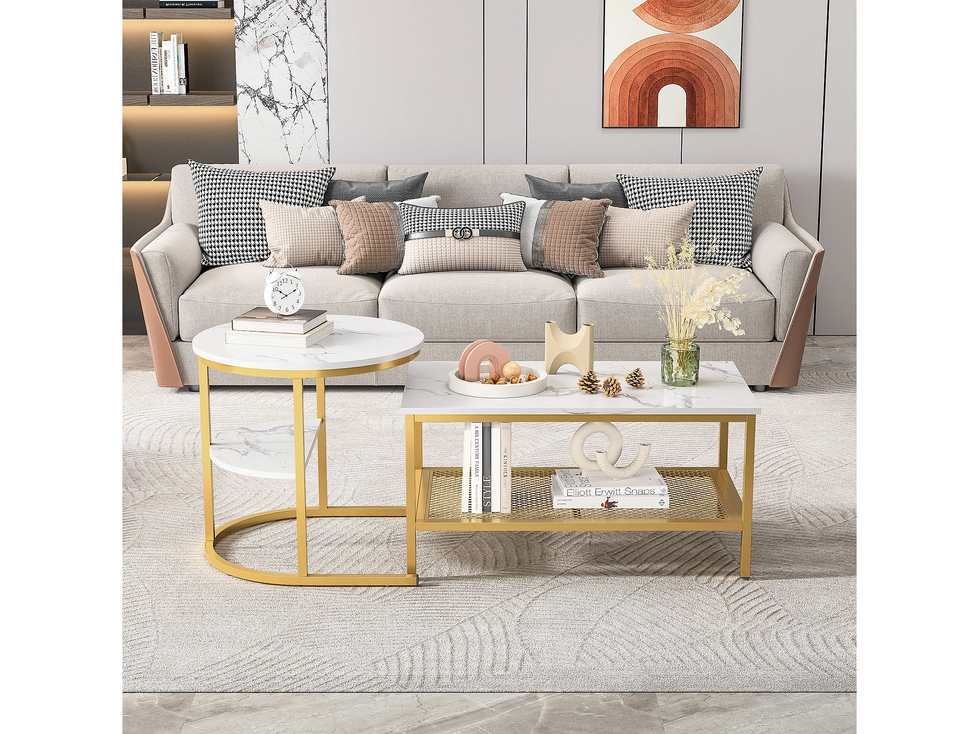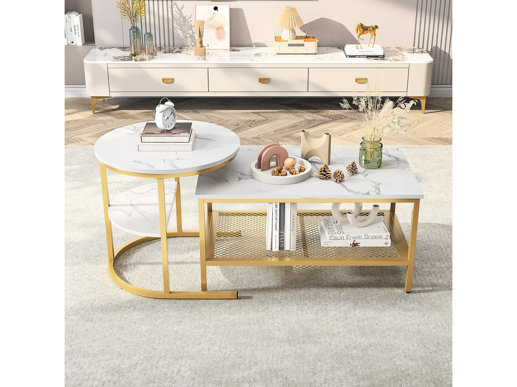 Set di 2 tavolini da caffè moderni impilabili, tavolini laterali rotondi per divano e camera da letto, oro