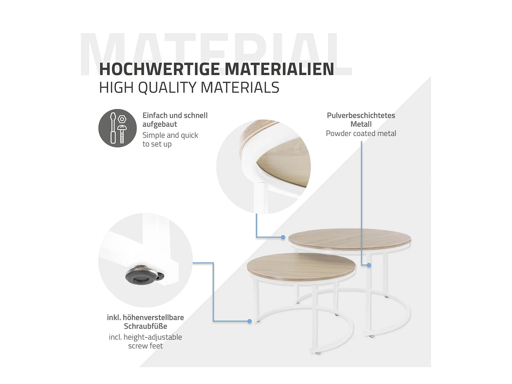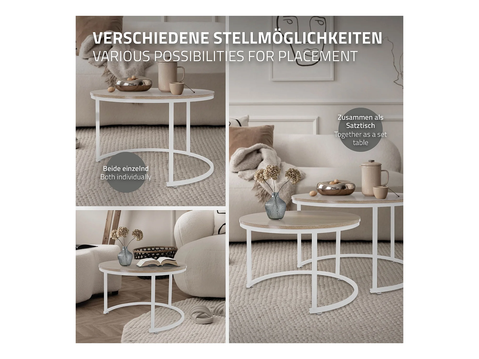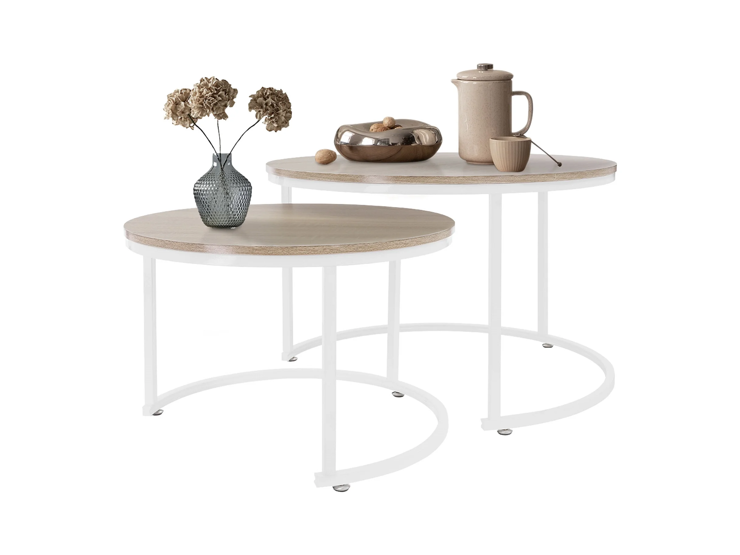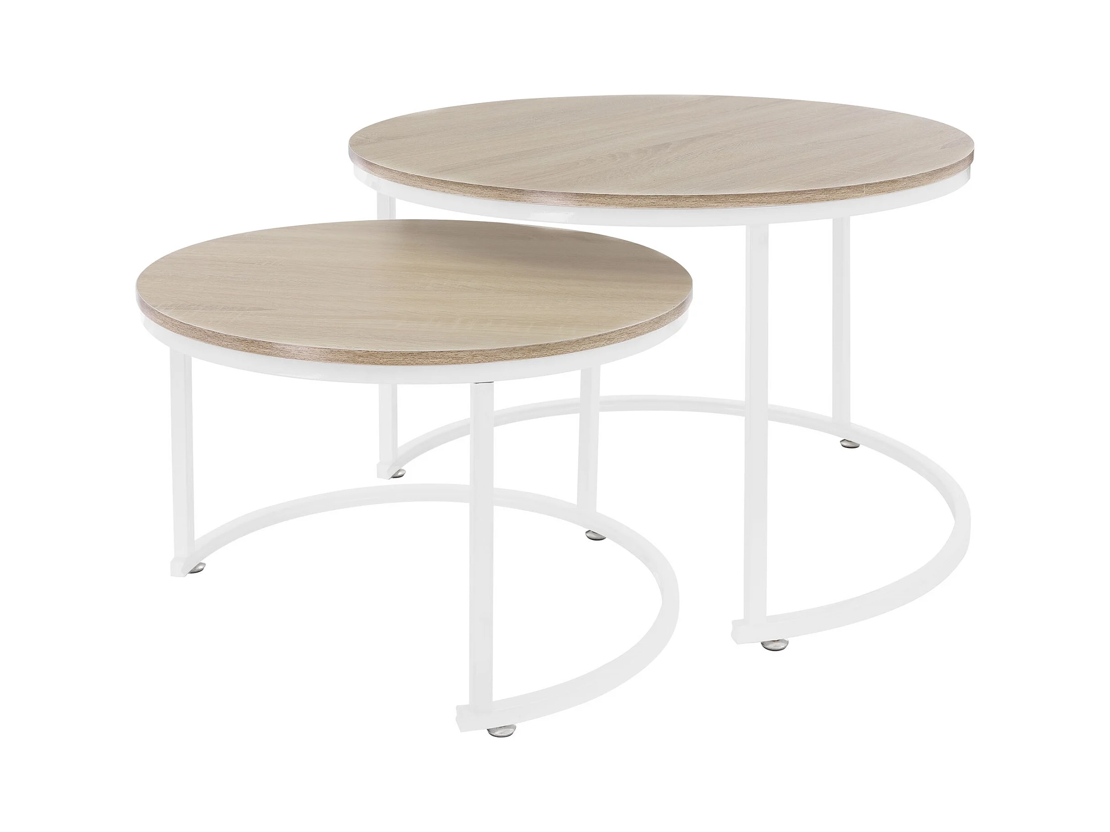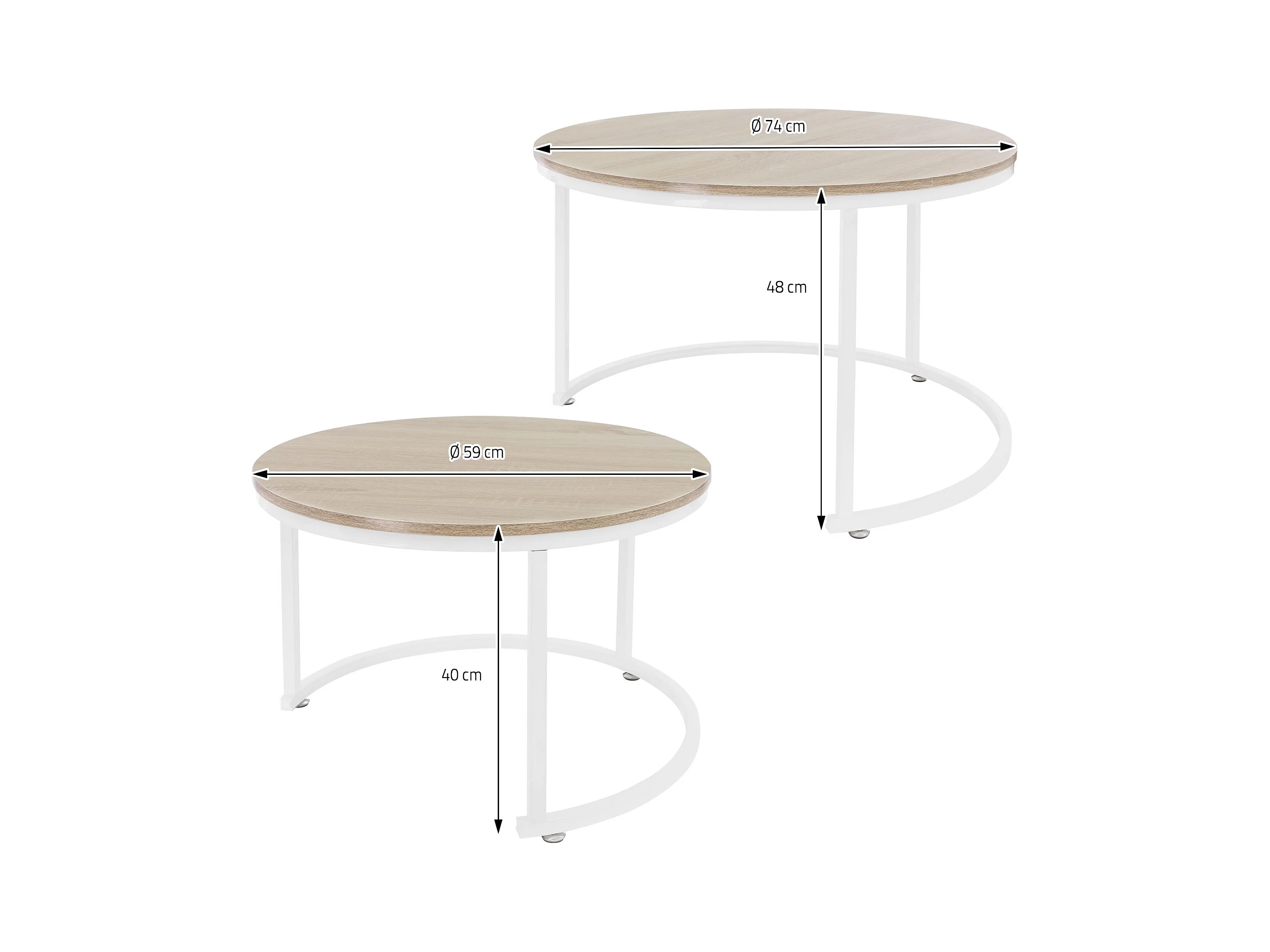 Set di 2 Tavolini da caffè salotto impilabili in MDF bianco Ø 74x48 / Ø 59x40 cm