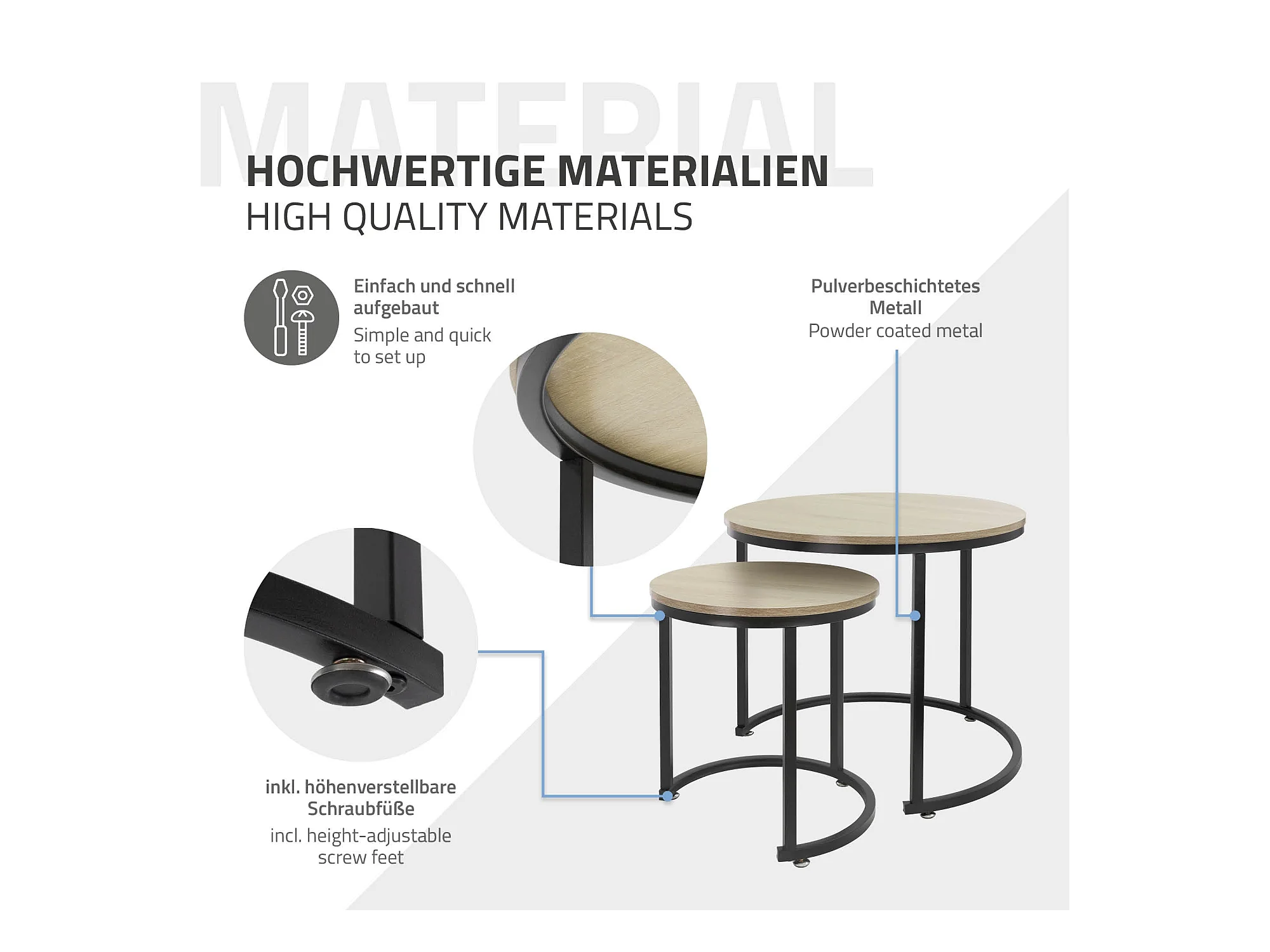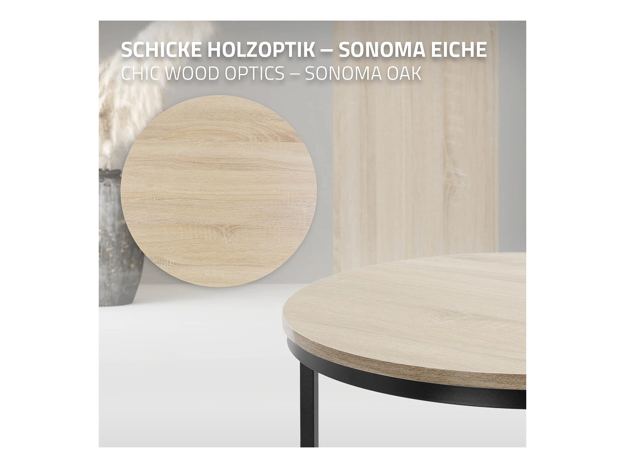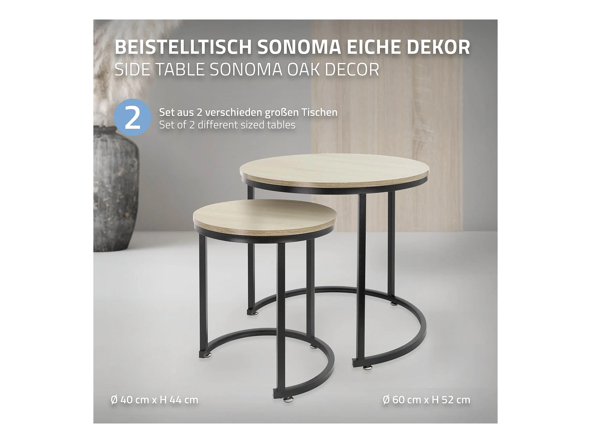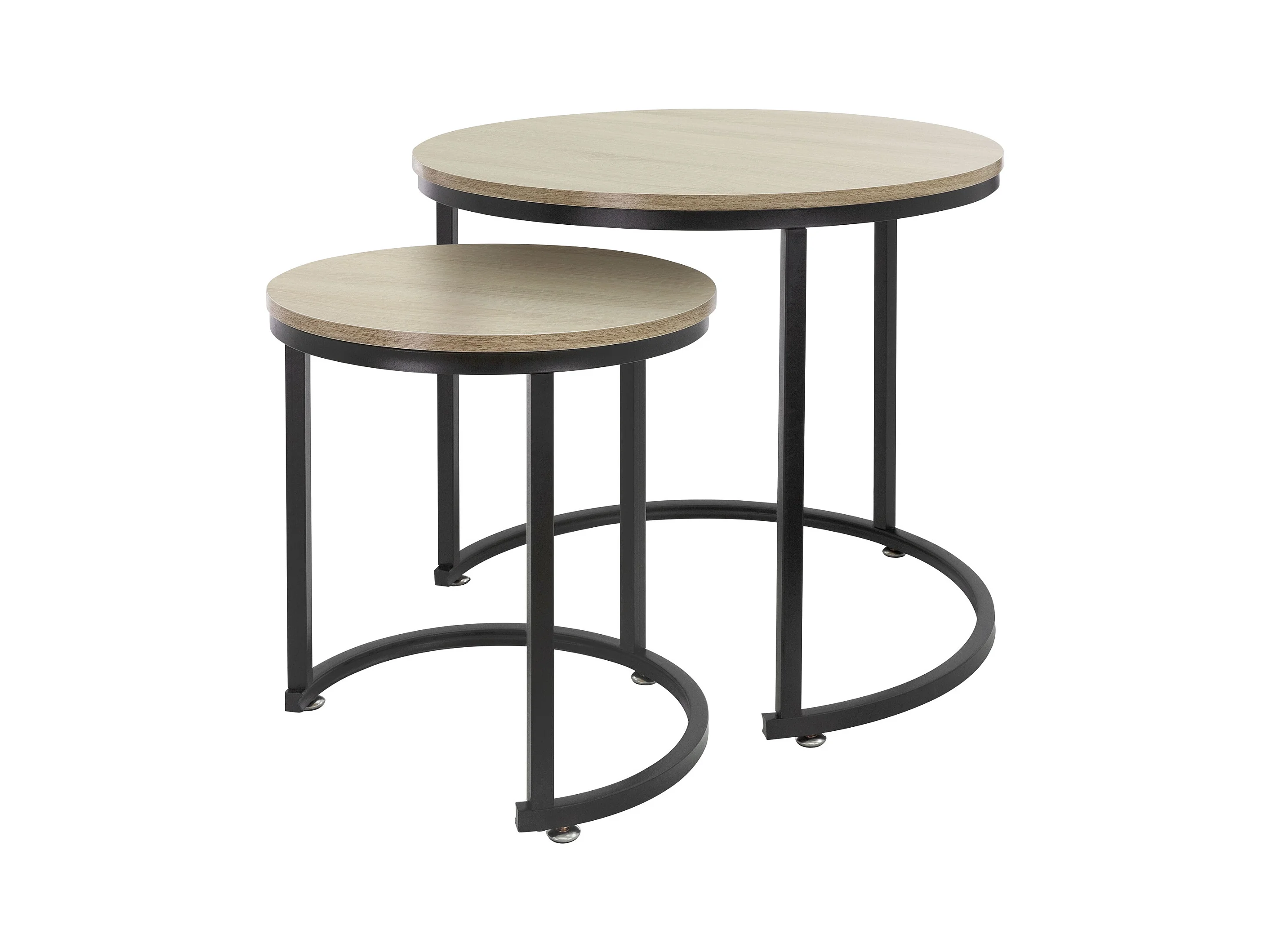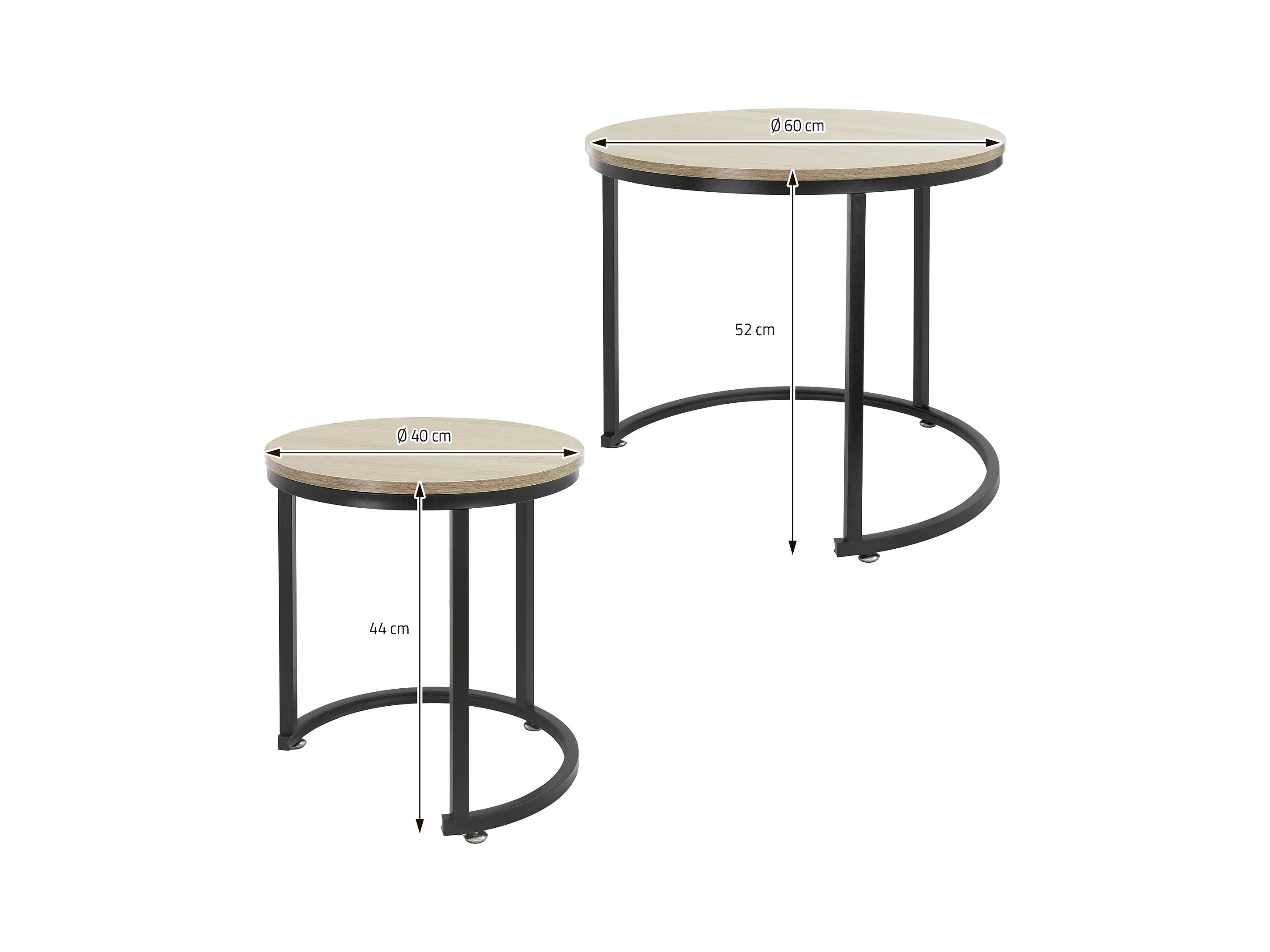 Set di 2 Tavolini da caffè salotto impilabili MDF sonoma/nero Ø 40x44/Ø 60x52 cm