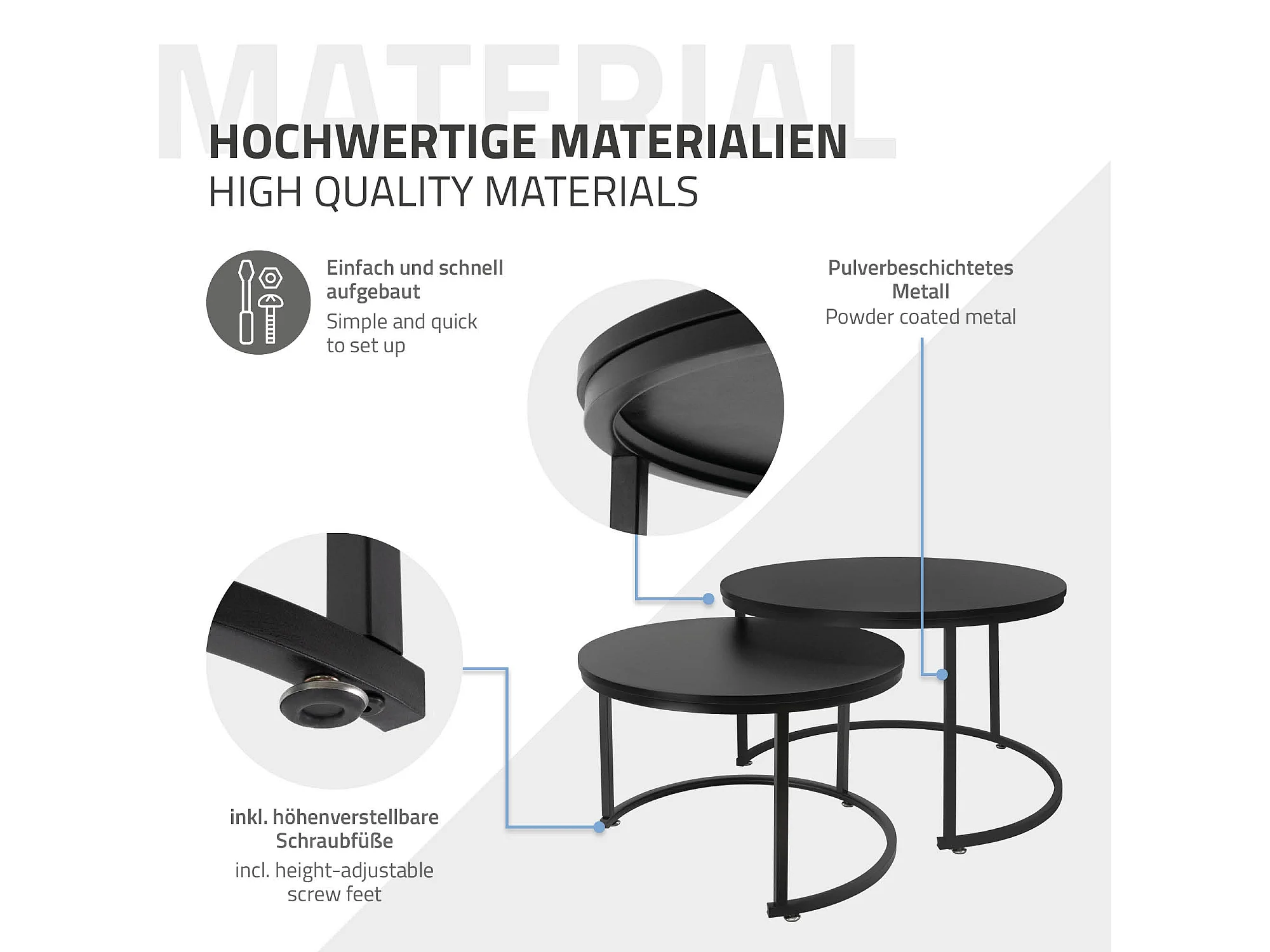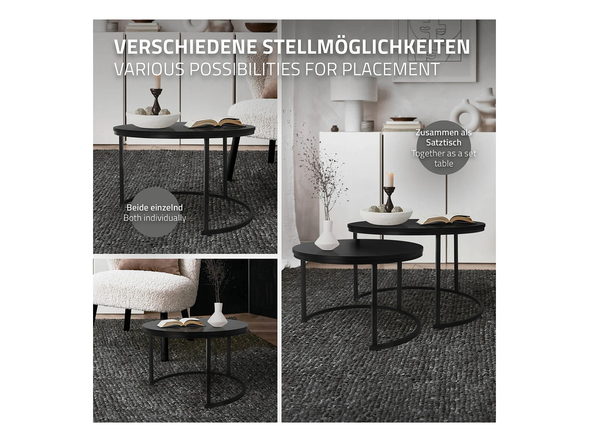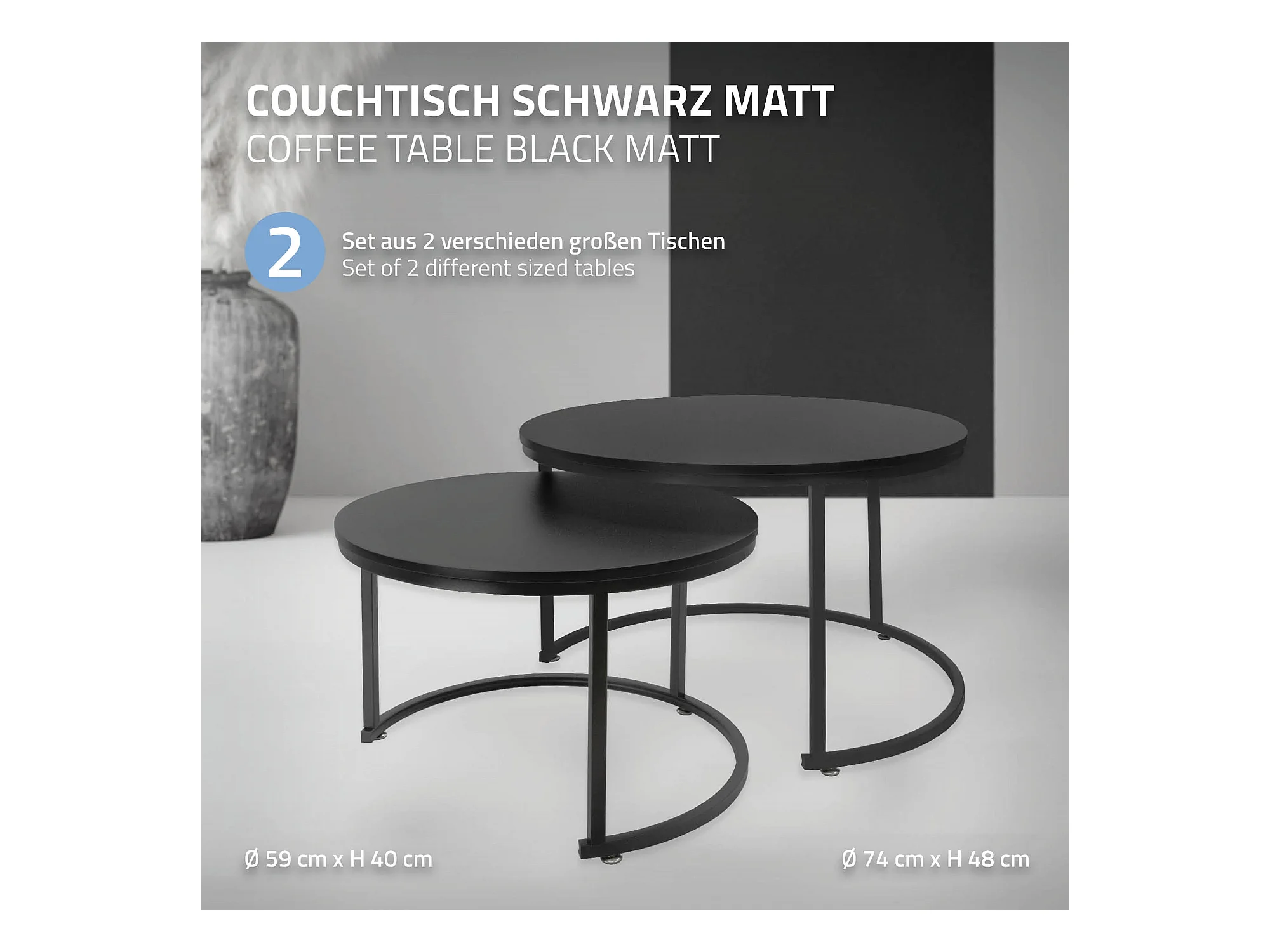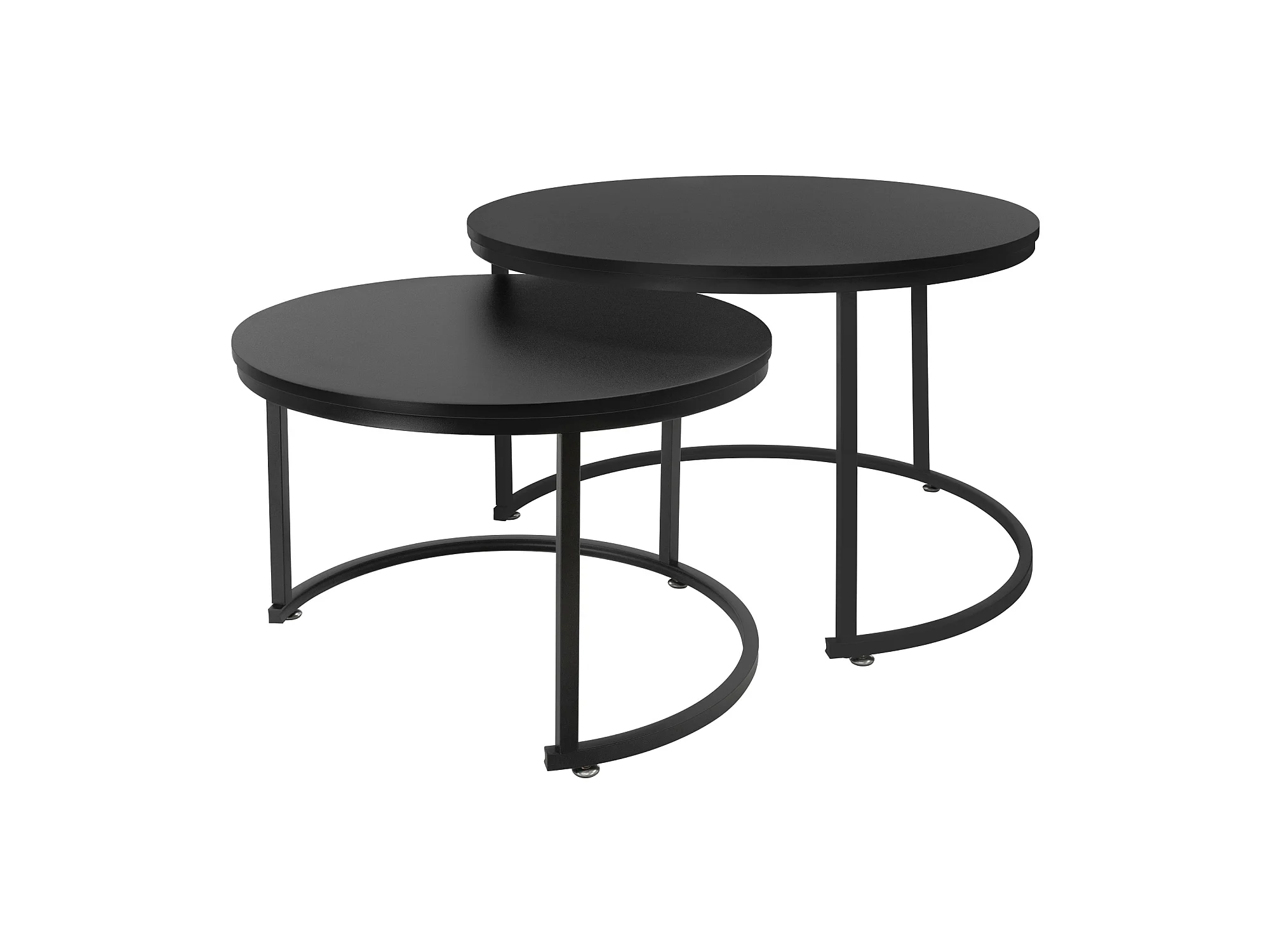 Set di 2 Tavolini da caffè salotto impilabili in MDF nero Ø74 x 48 / Ø59 x 40 cm