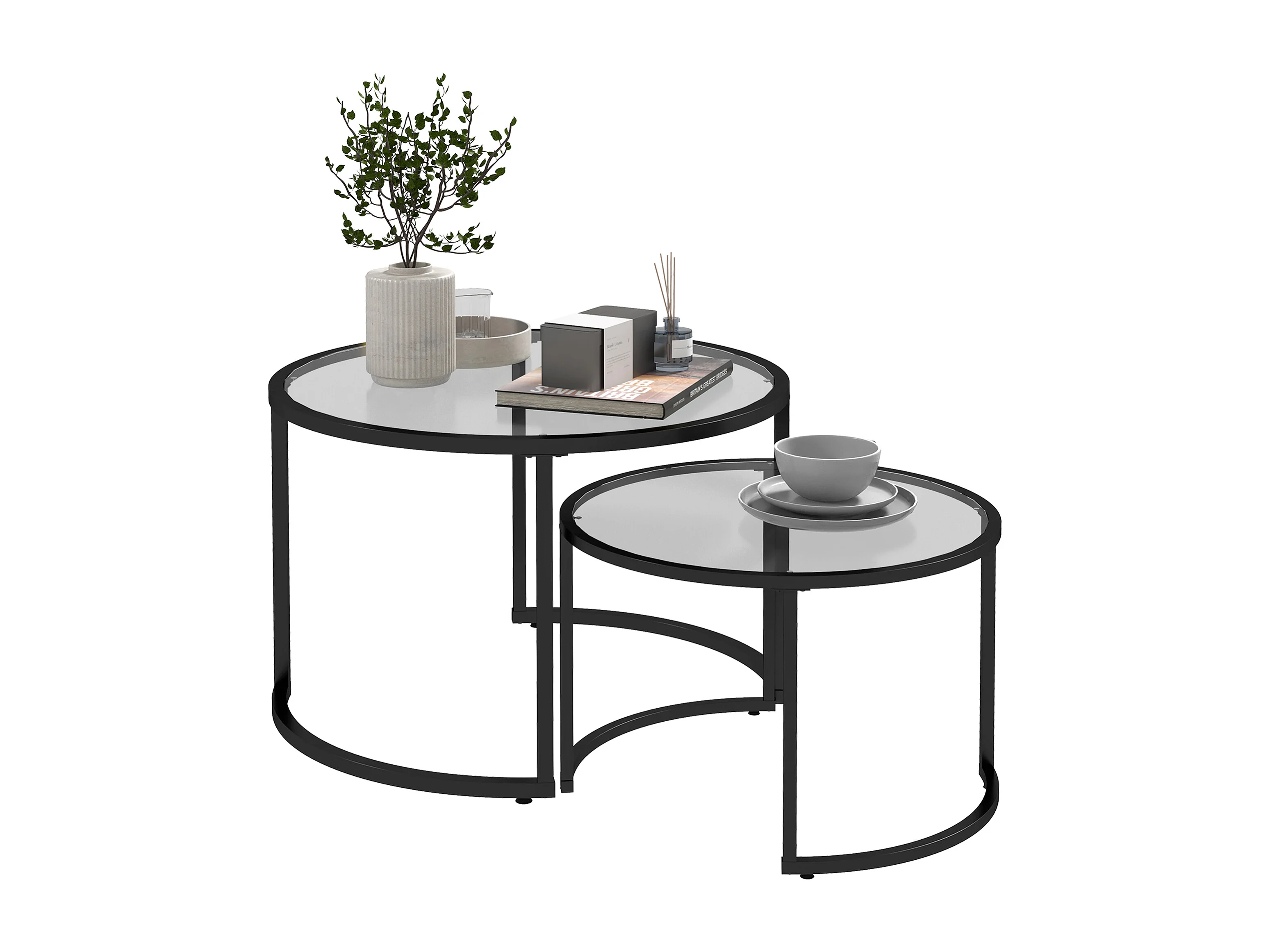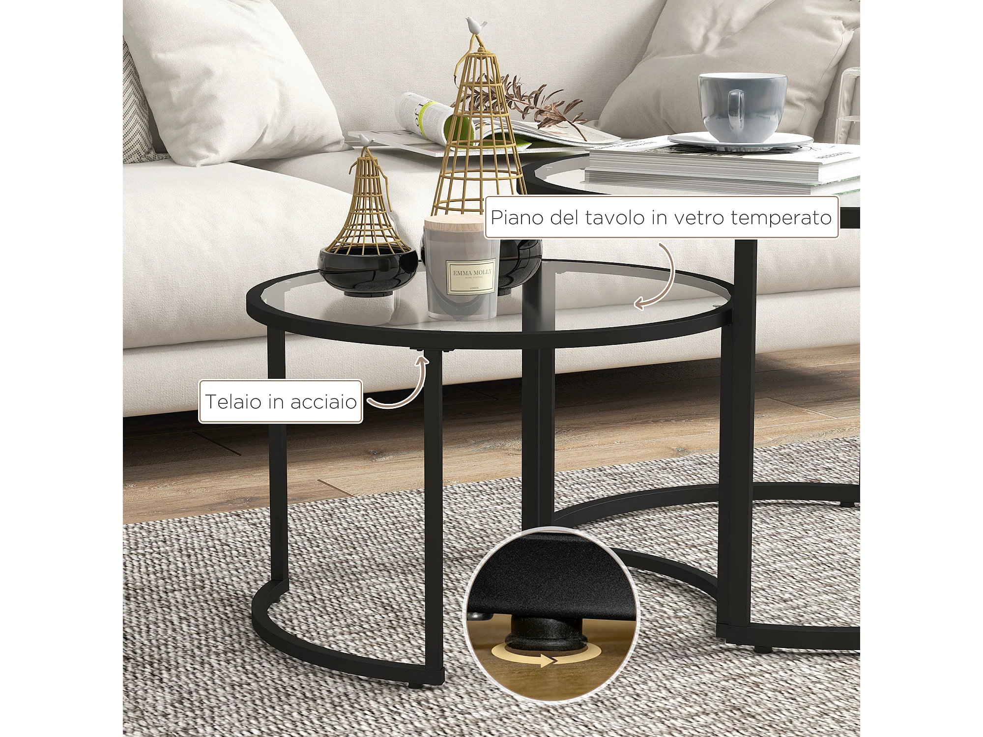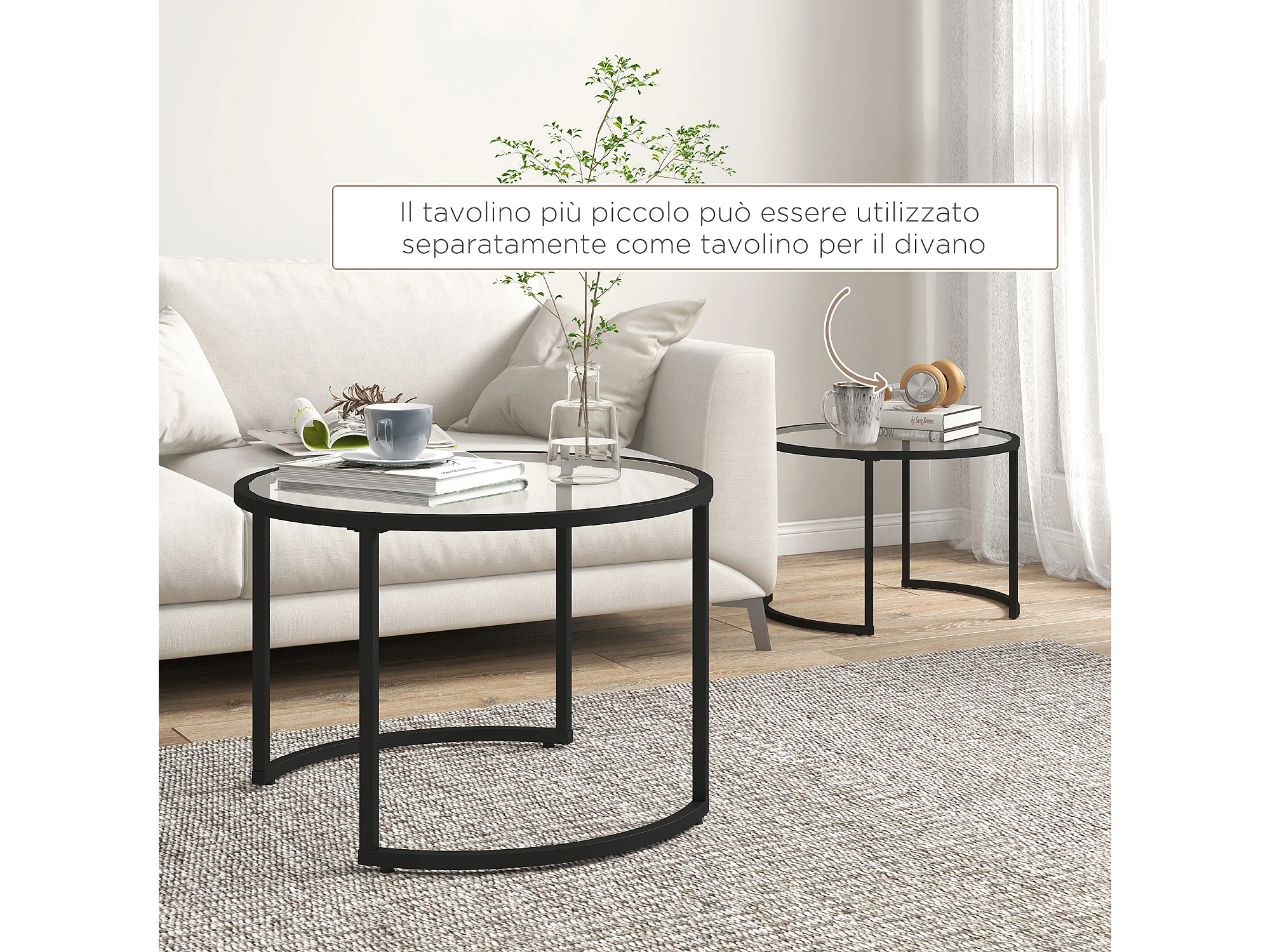 Set di 2 tavolini da caffè sovrapponibili tavolini da salotto impilabili in vetro temperato