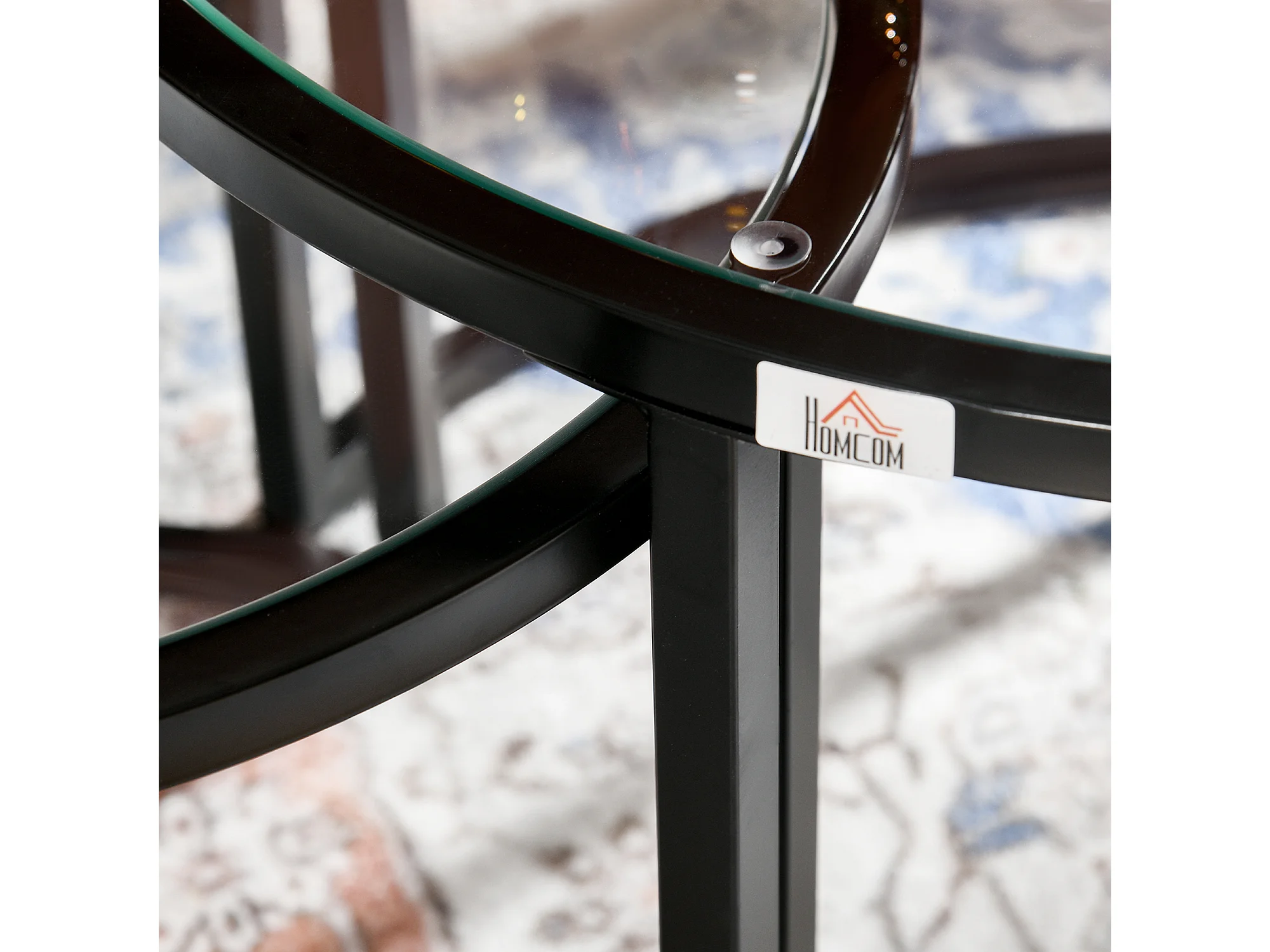Set 2 tavolini sovrapponibili in acciaio e vetro temperato nero