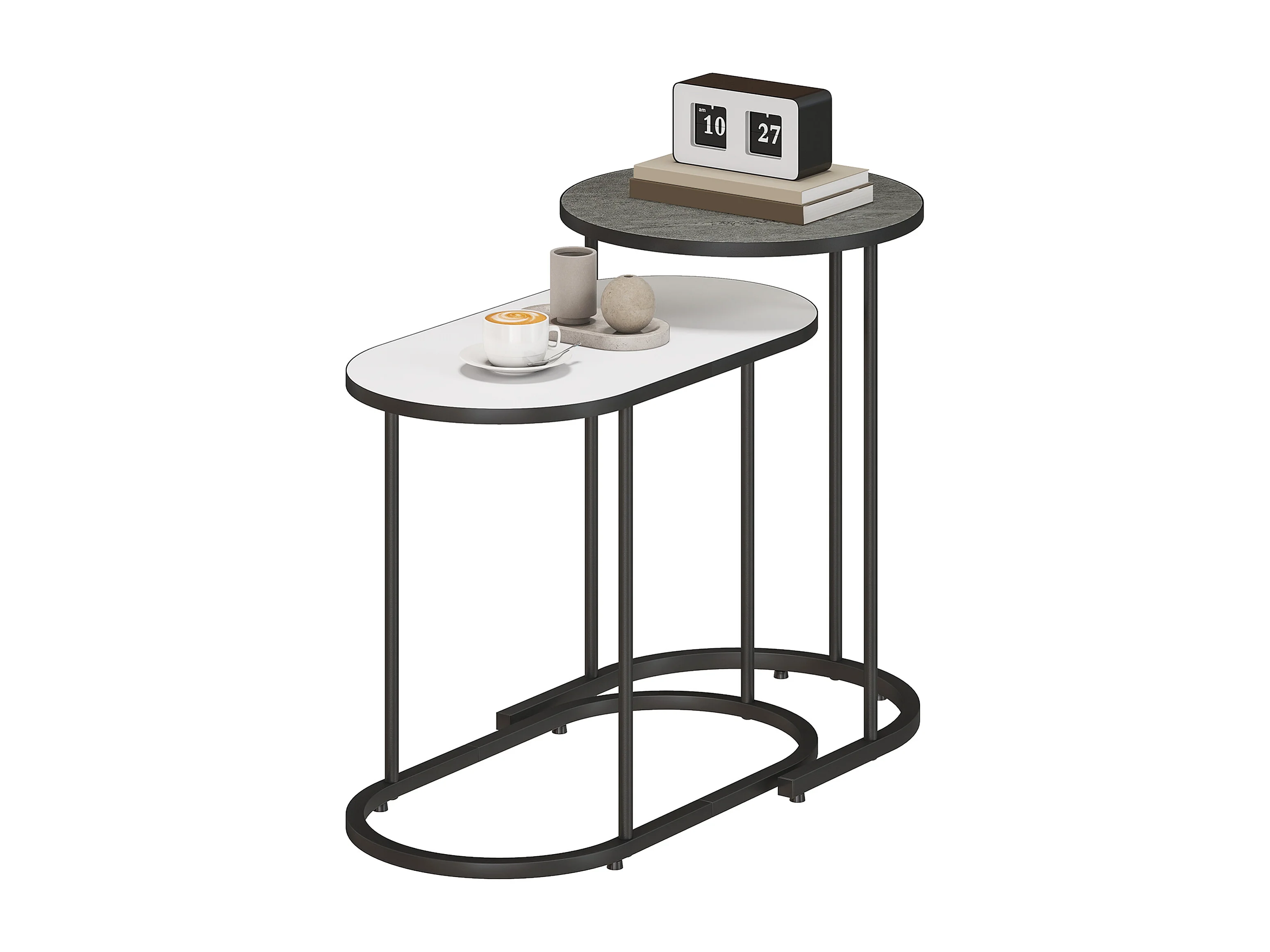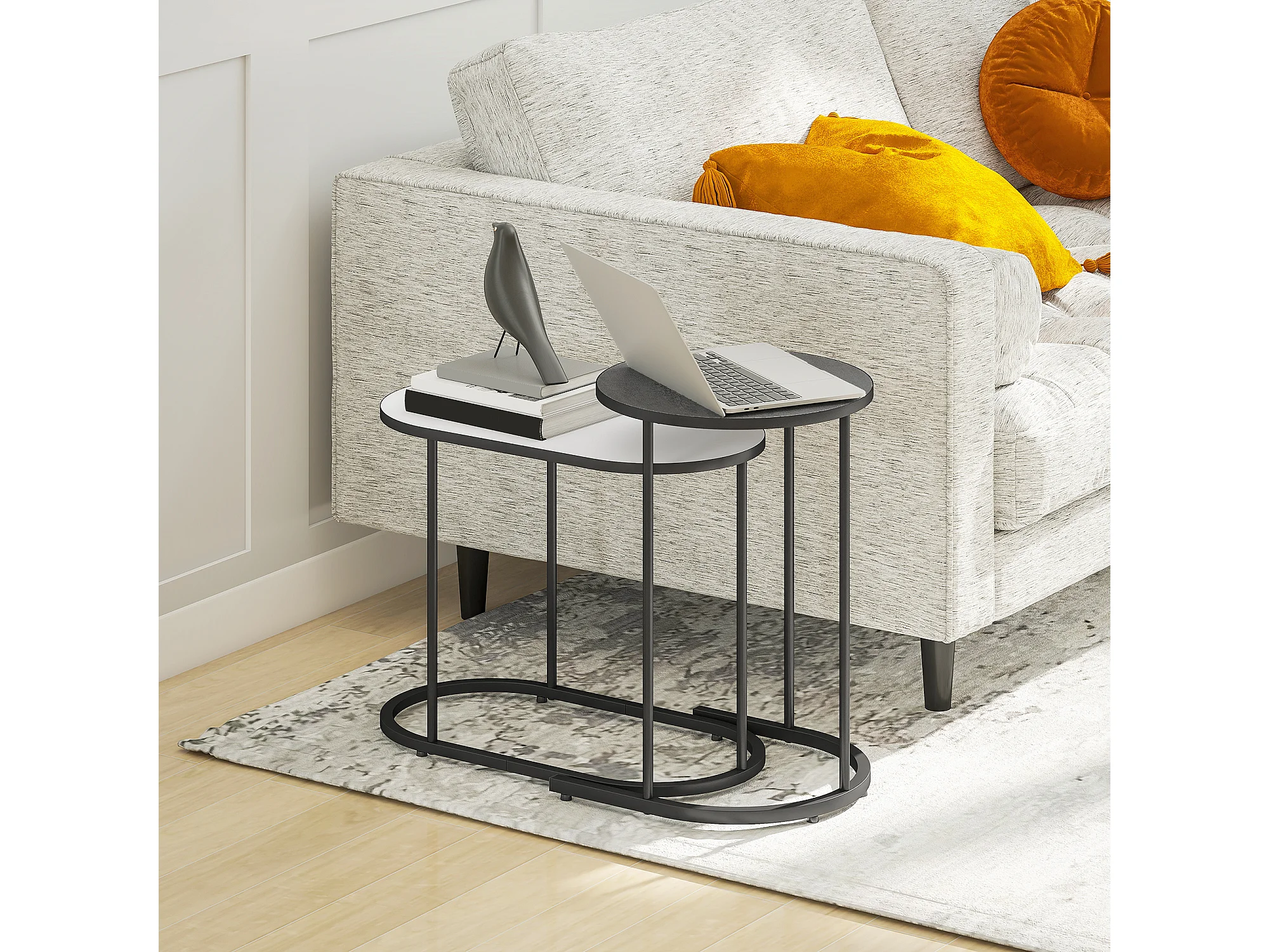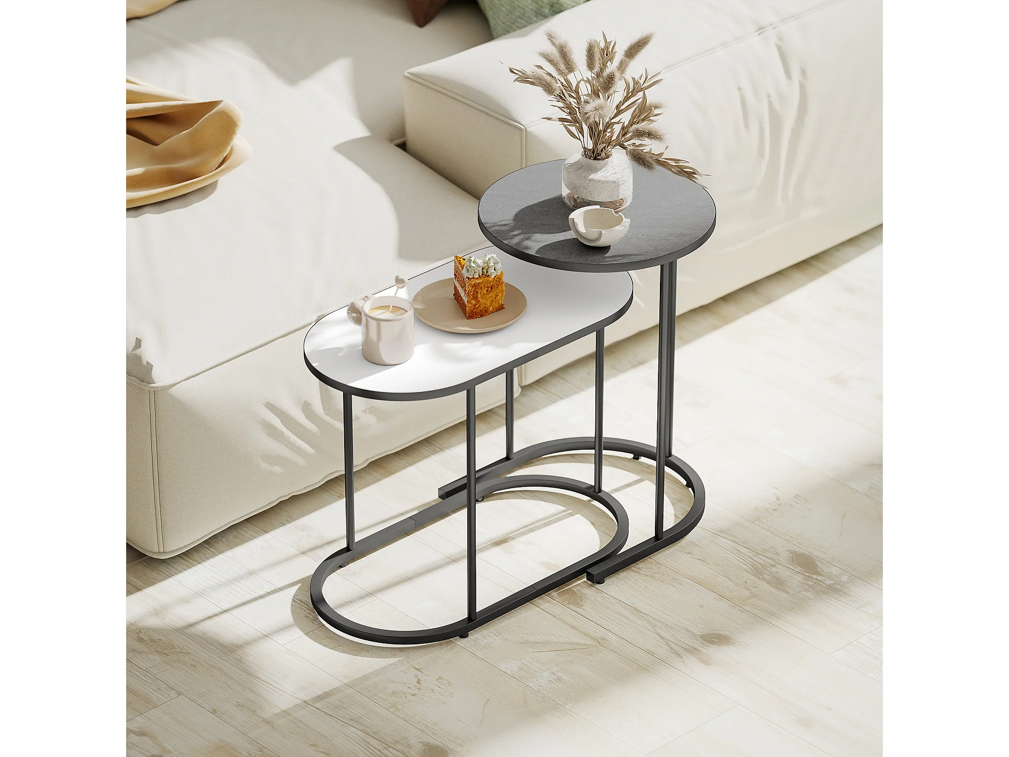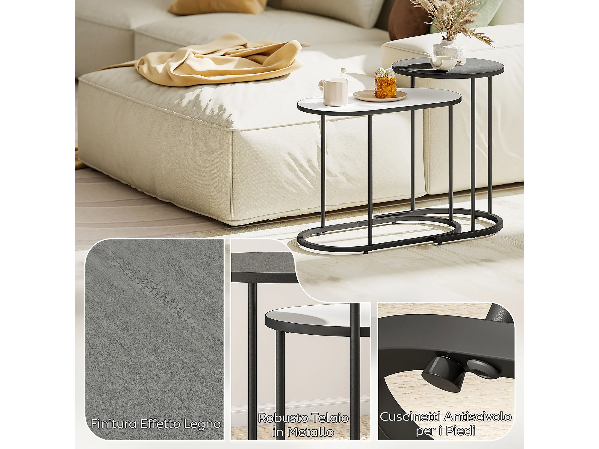 Set di 2 tavolini da salotto impilabili tavolini bassi con telaio in metallo per soggiorno