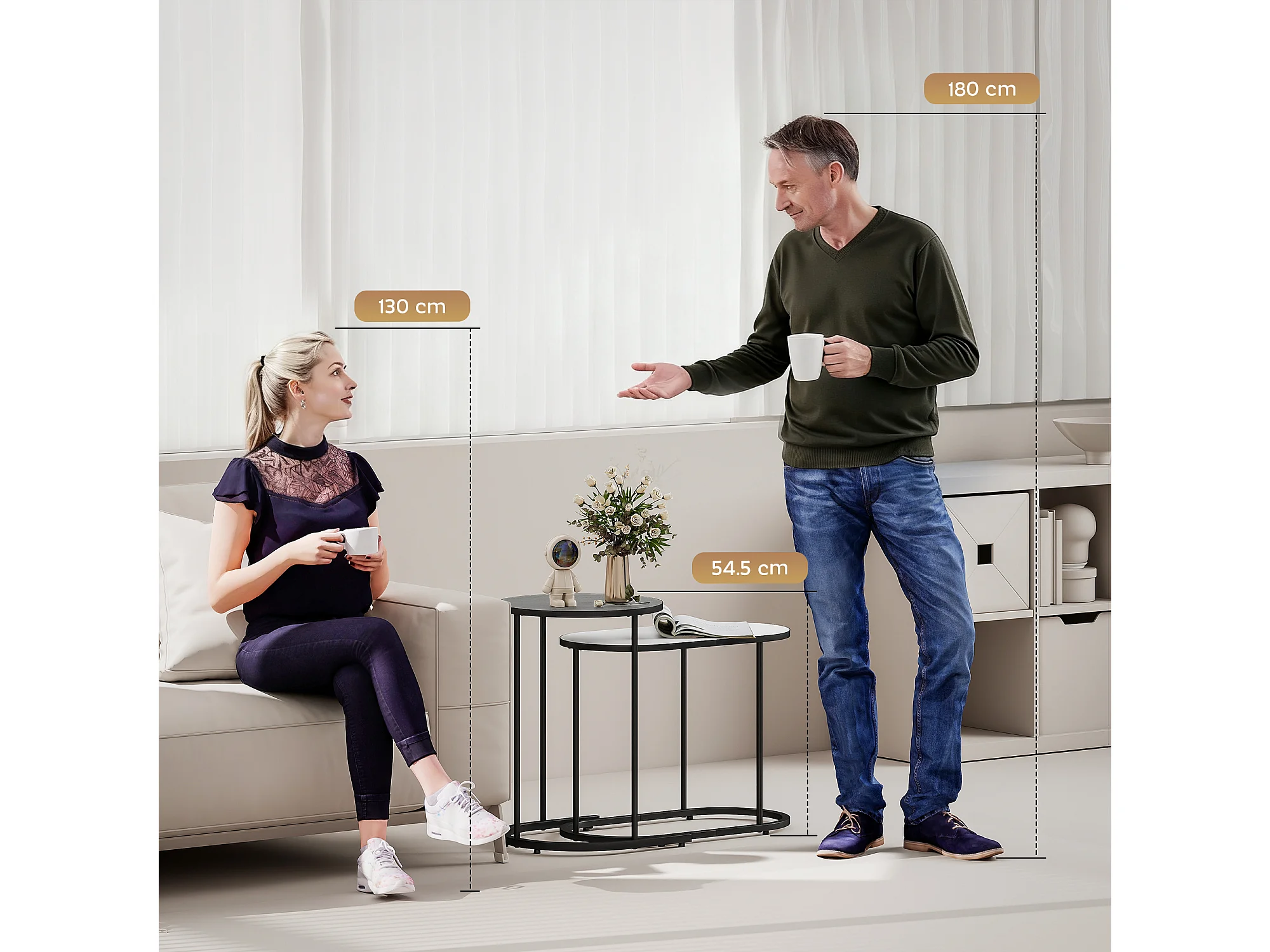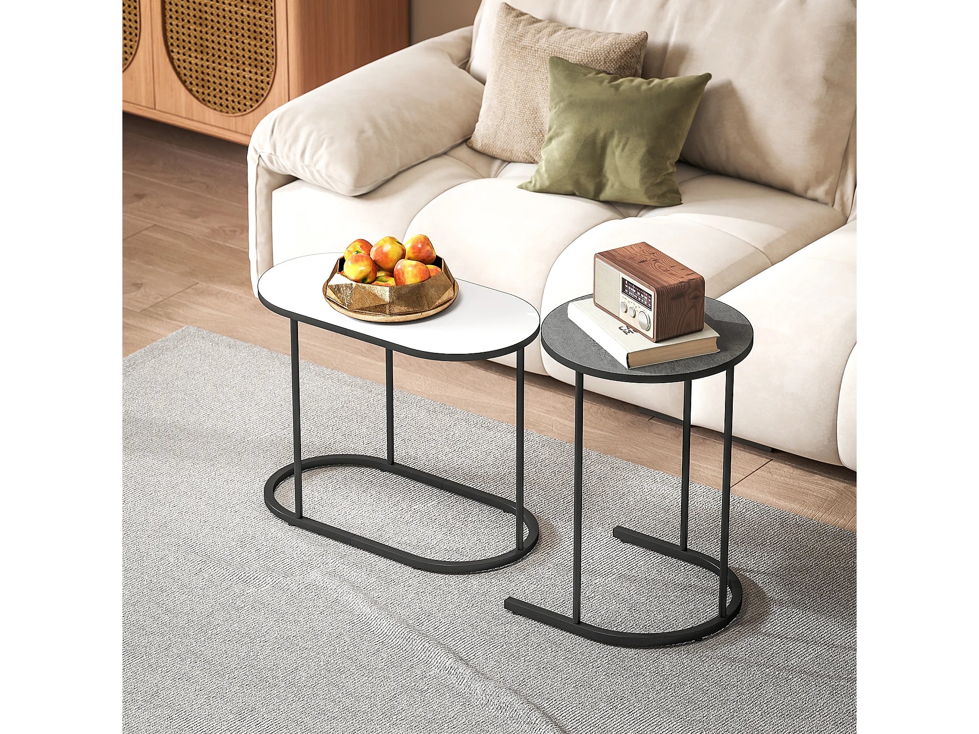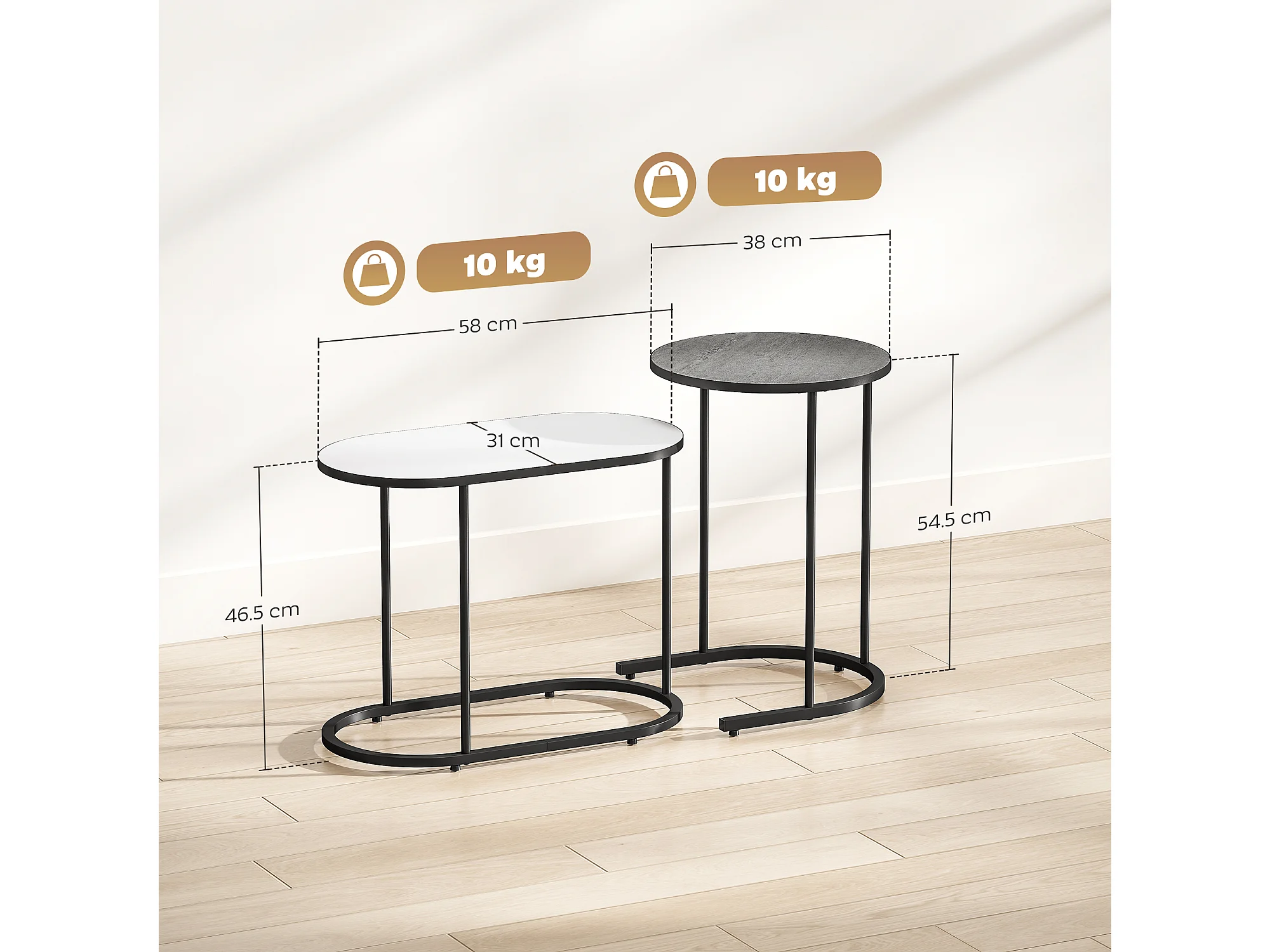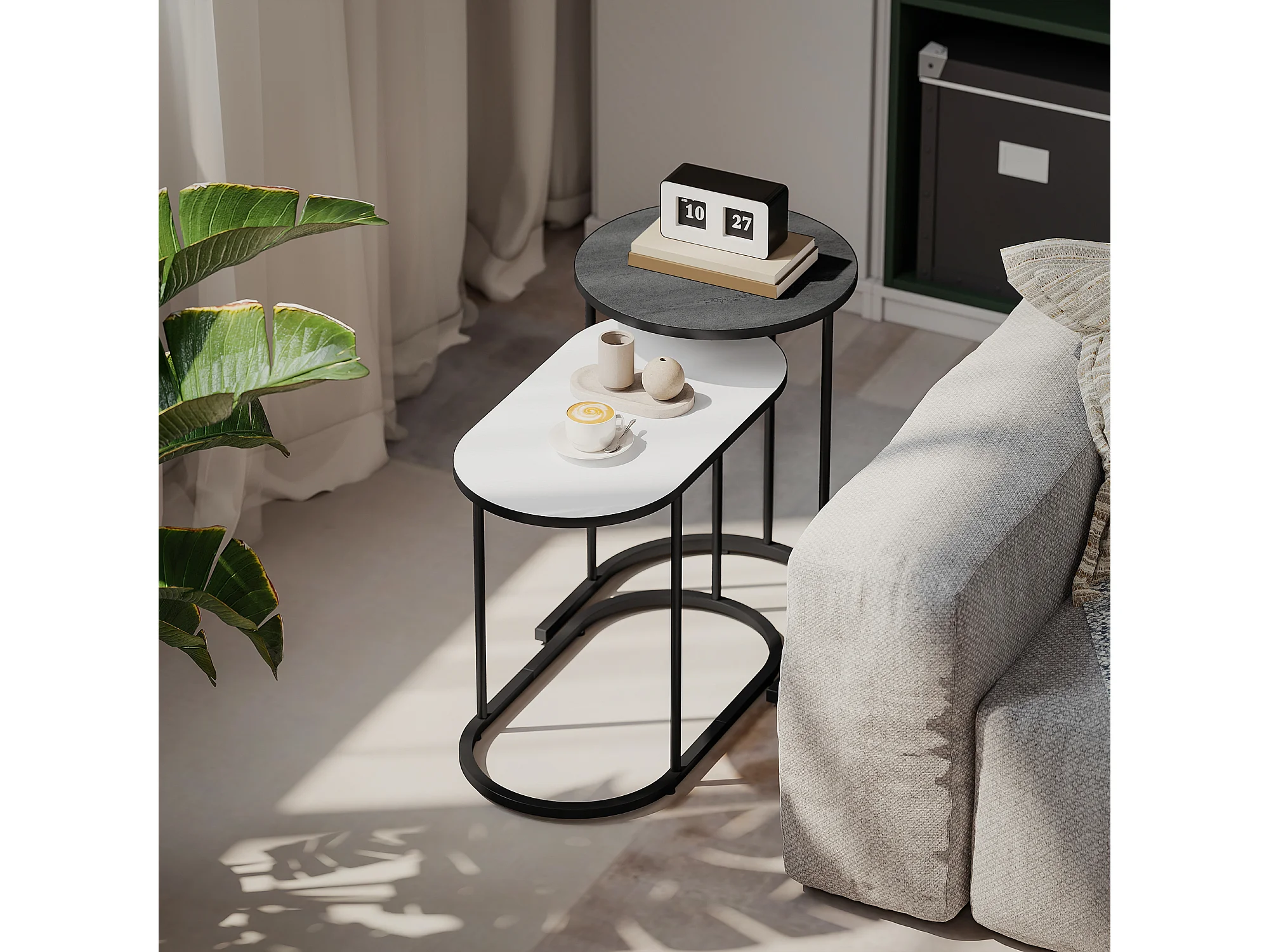 Set di 2 tavolini da salotto impilabili tavolini bassi con telaio in metallo per soggiorno