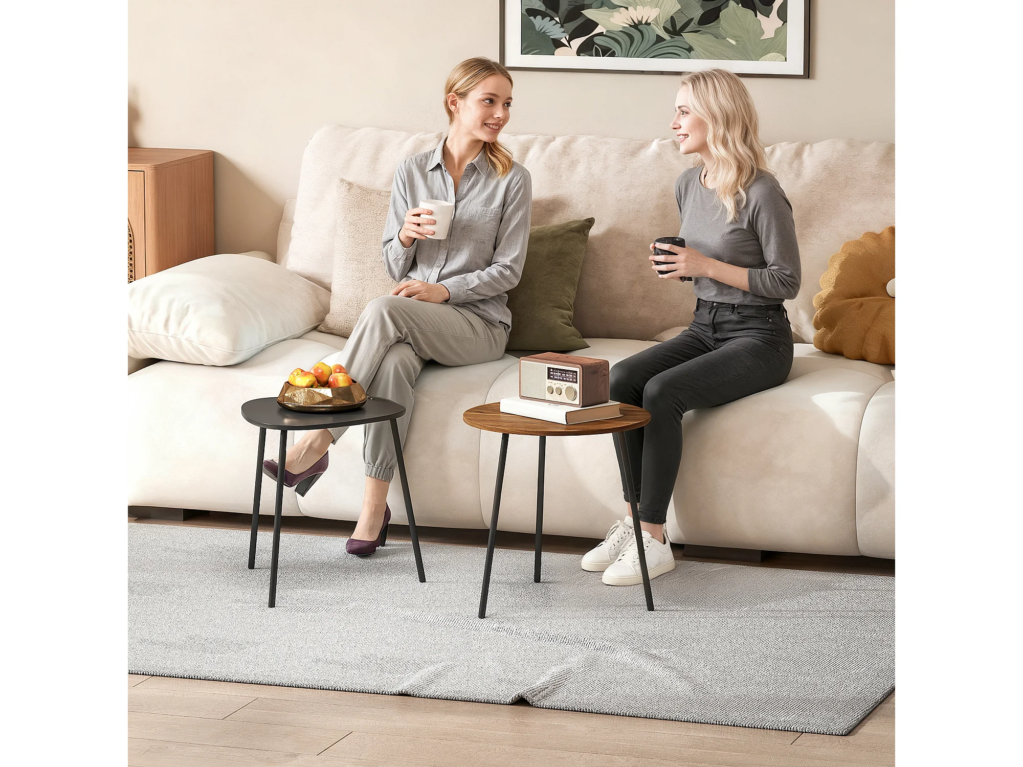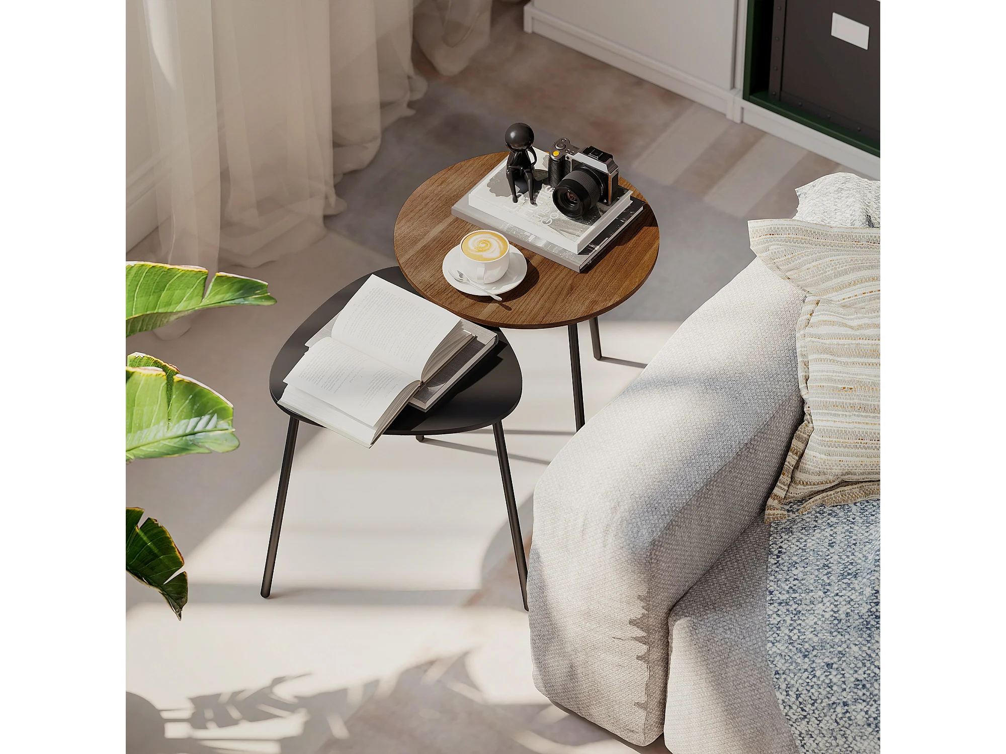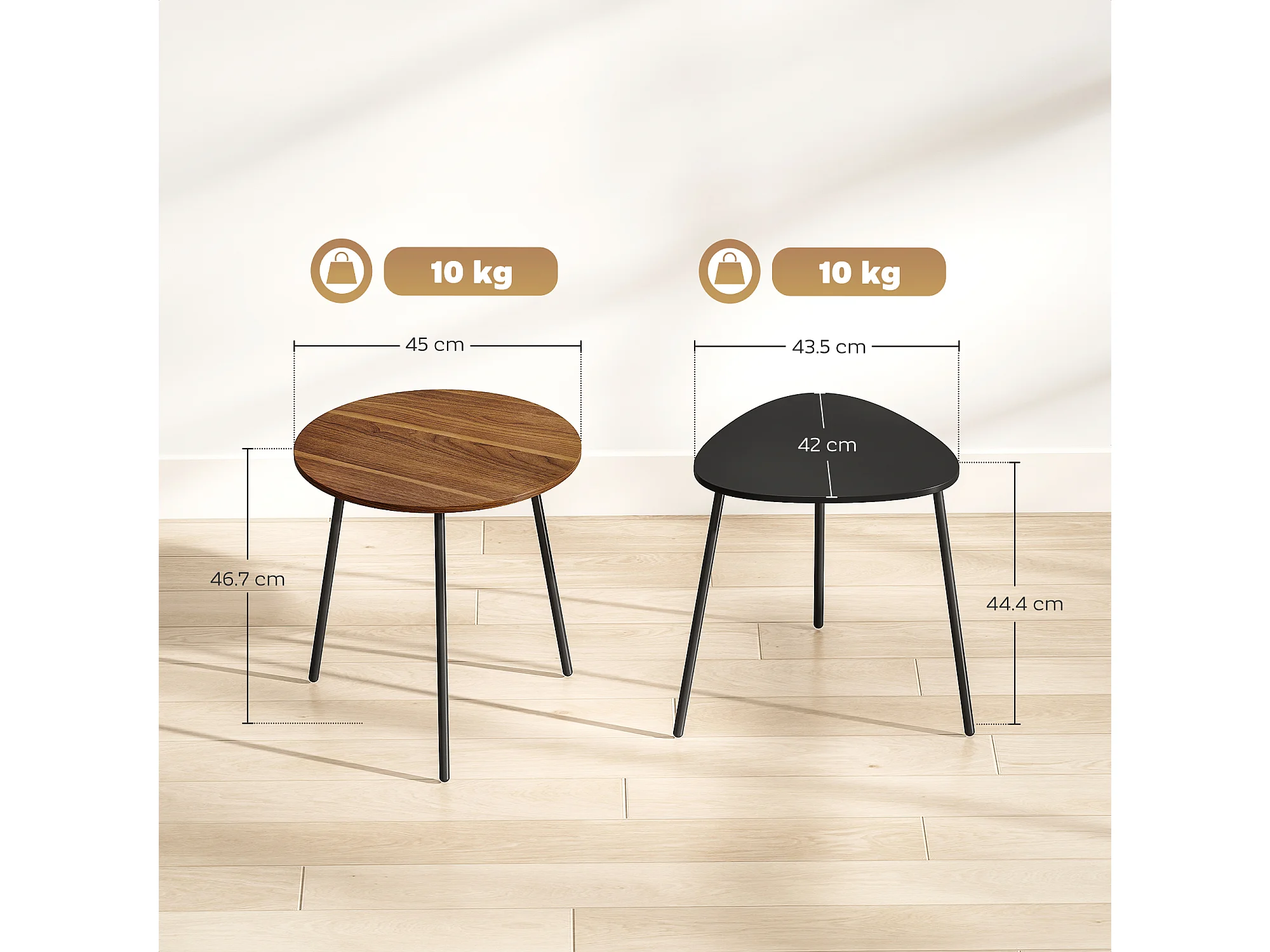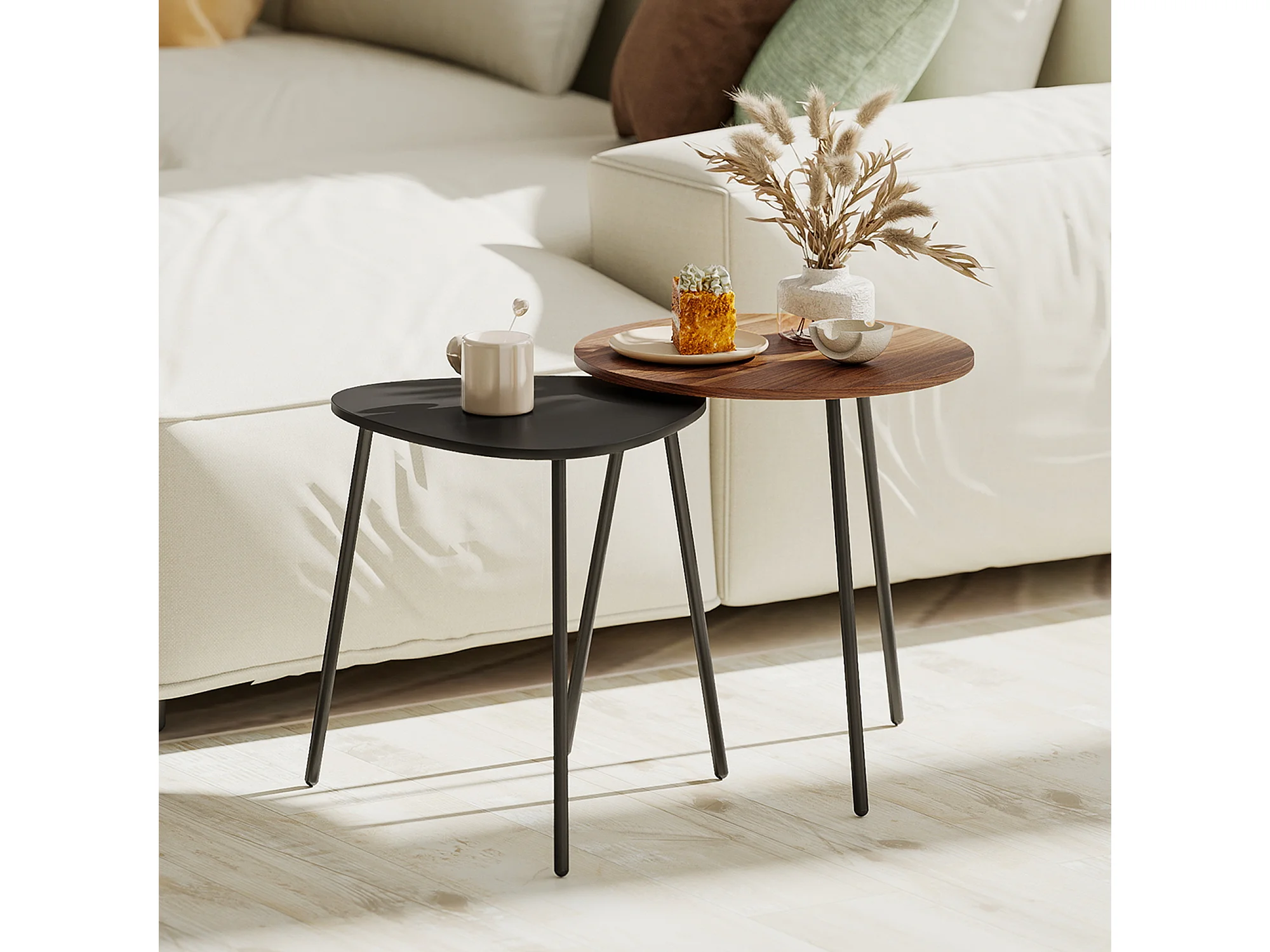 Set di 2 tavolini da salotto impilabili tavolini bassi con telaio in metallo per soggiorno