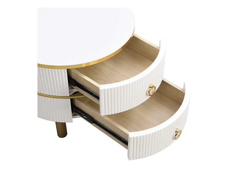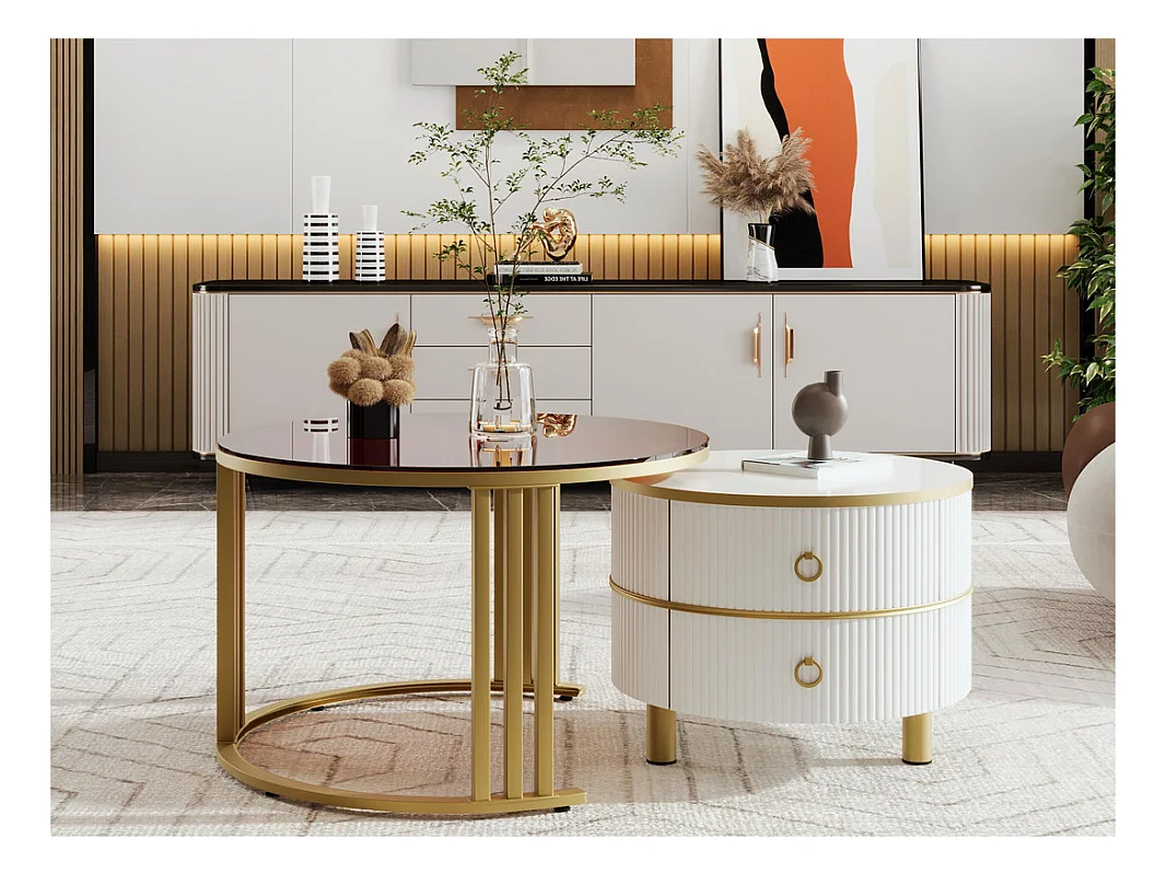 Set di 2 tavolini impilabili con 2 cassetti - Piano in vetro temperato marrone - Bianco