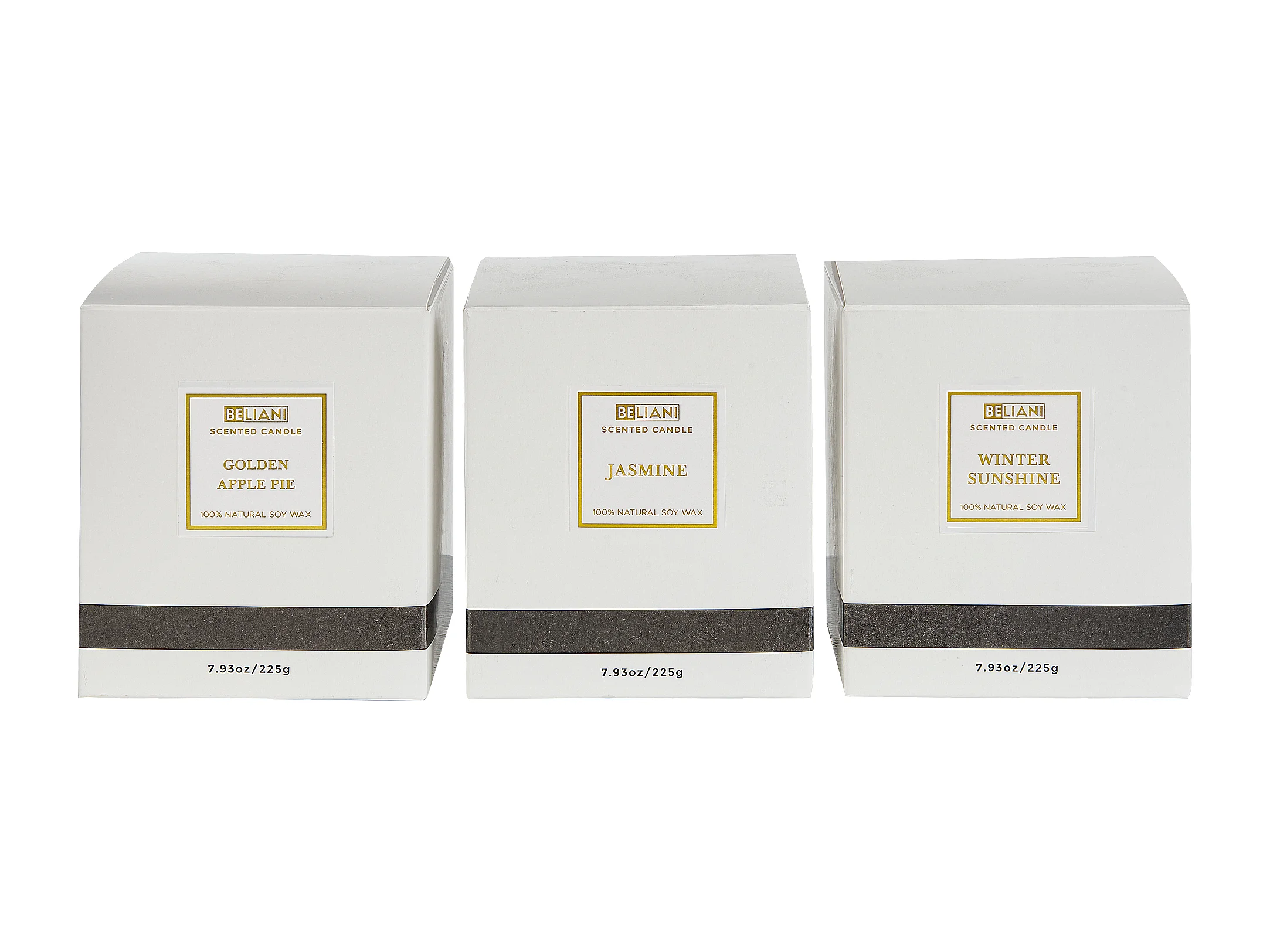 Set di 3 Candele Profumate METALLIC GLAMOUR Cera di Soia Note dolci