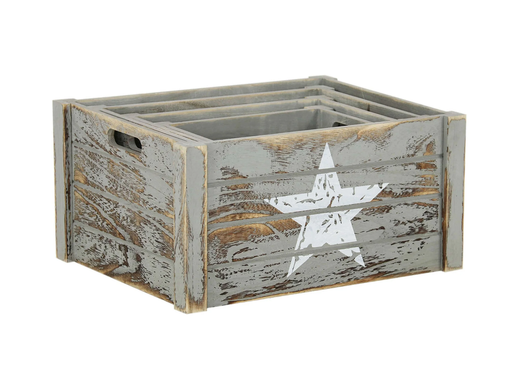 MilaniHome.it - Set Di 3 Cassette In Legno Di Design Industrial Stile Moderno Con Decoro , G41x31x20/M.36x26x18/P.31x21x16/xS.26x16x14di coloreGrigio