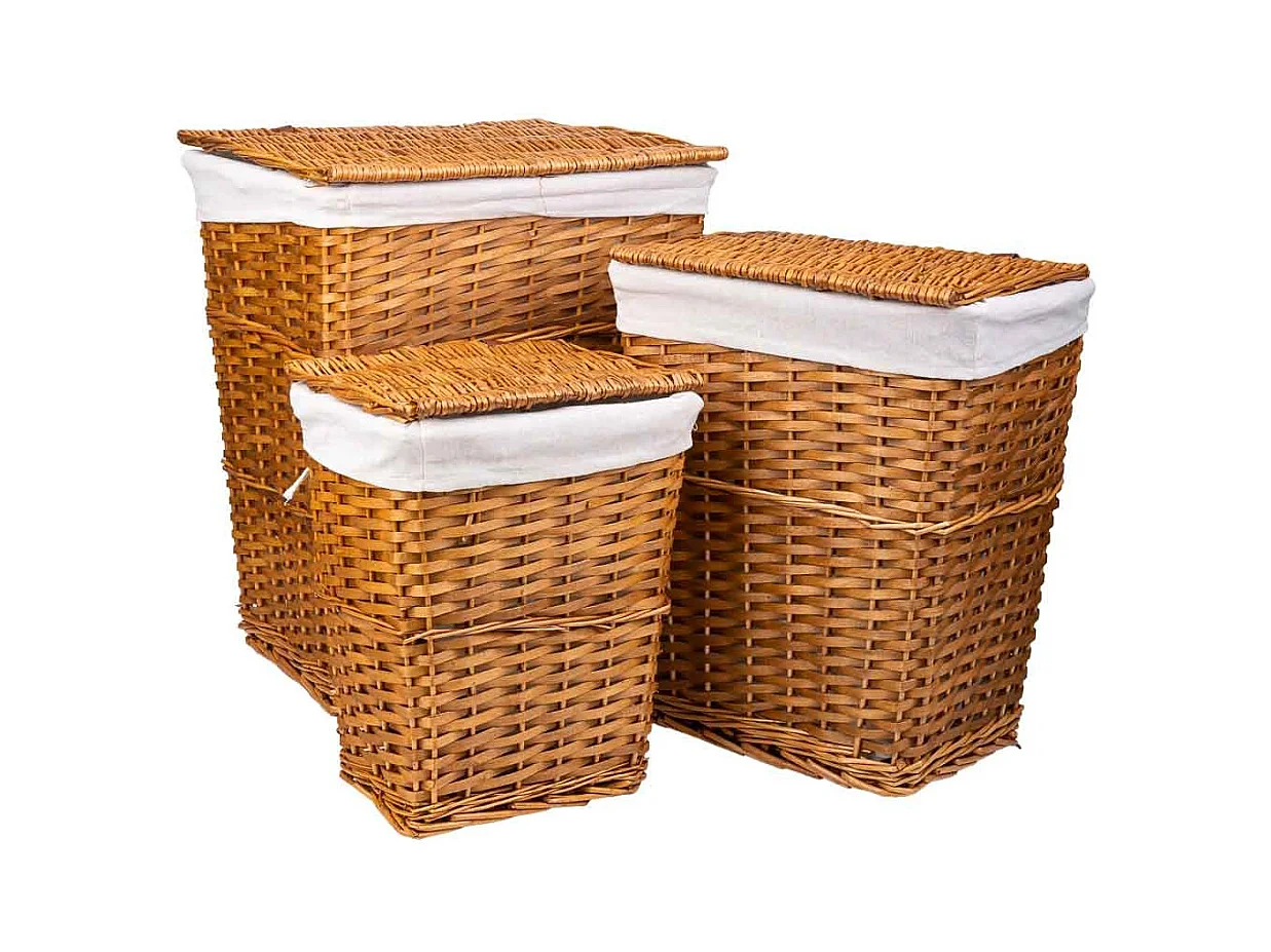 Set composto da portabiancheria e due cestini in vimini foderati marroni