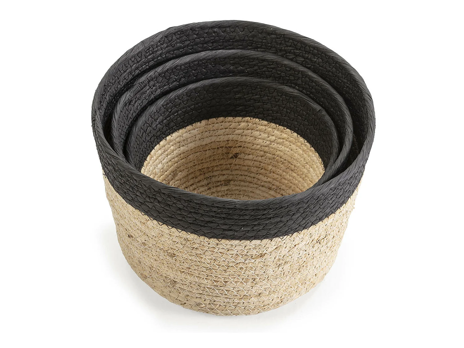 Set di 3 cestini Nati in fibra naturale e carta, nero/beige