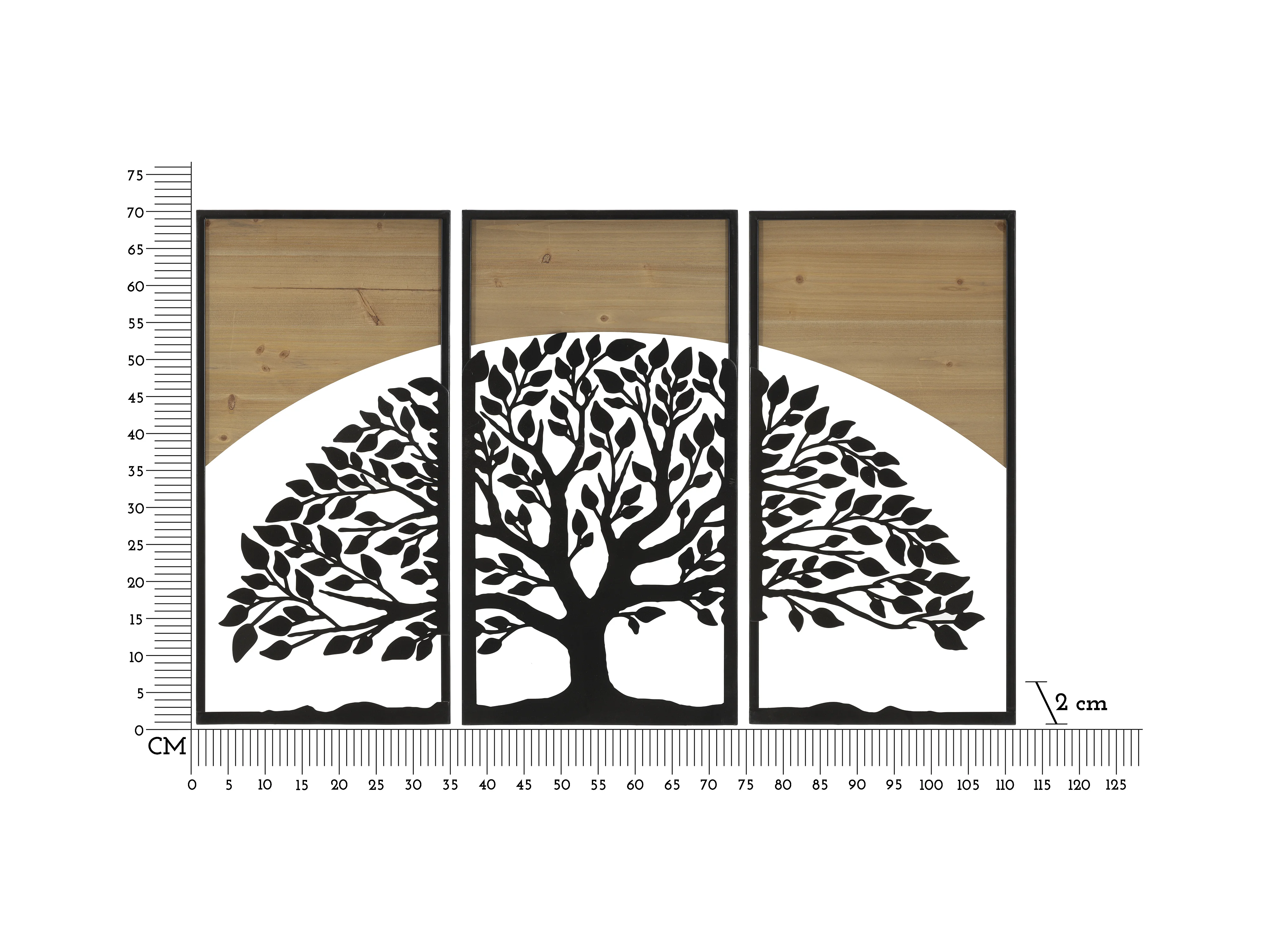 Set di 3 pannelli decorativi 3D in metallo e legno nero cm 105x2x70